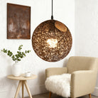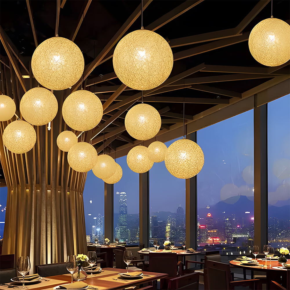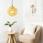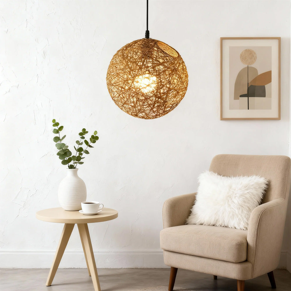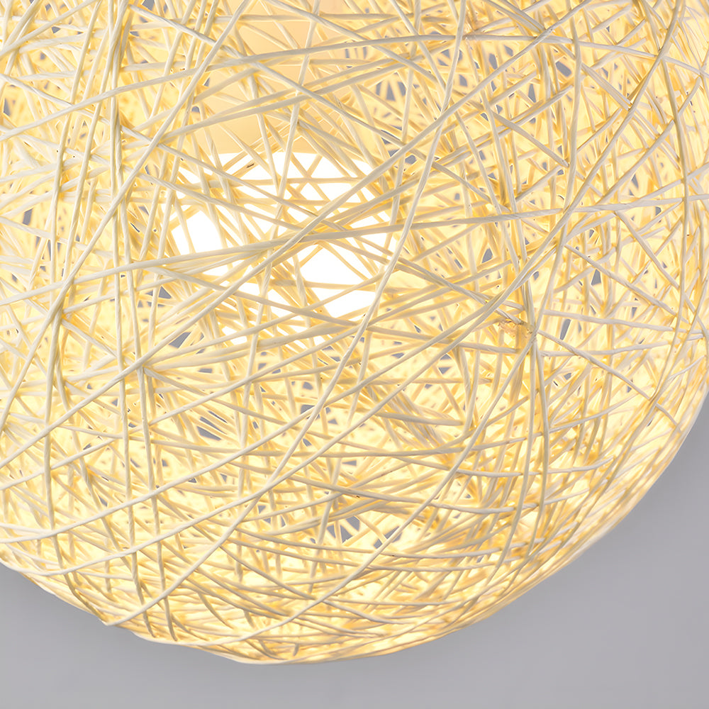 Handwoven natural paper rattan forms a full spherical shape, preserving the material's raw texture and organic gaps. Light naturally seeps through the woven openings, creating a soft dappled glow that brings a back-to-basics warmth to any space.