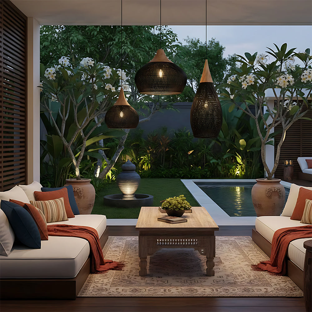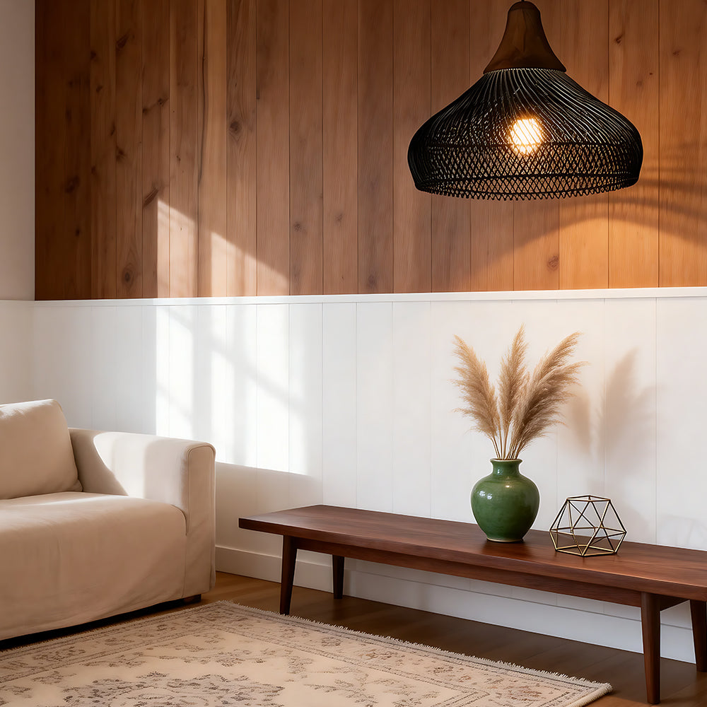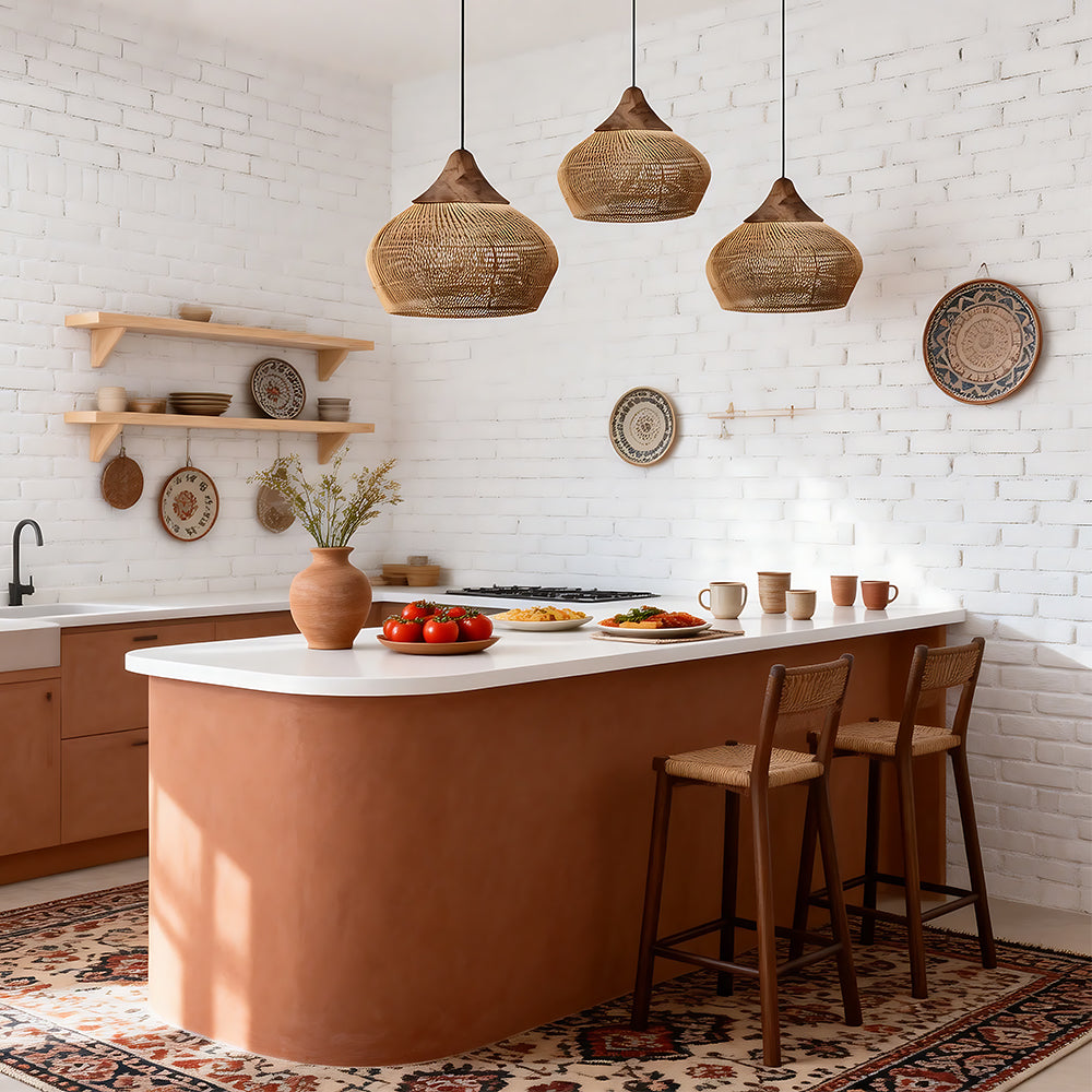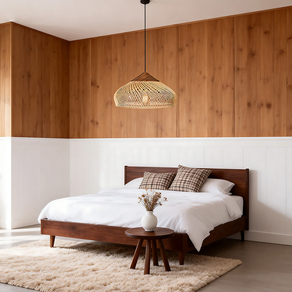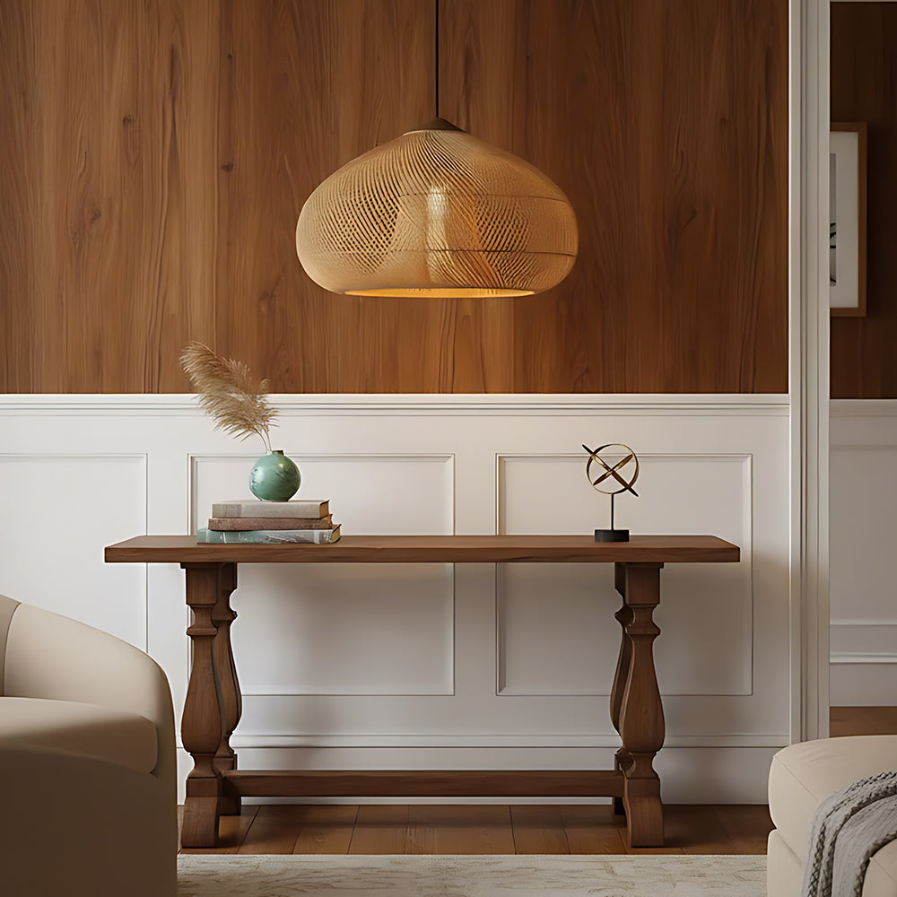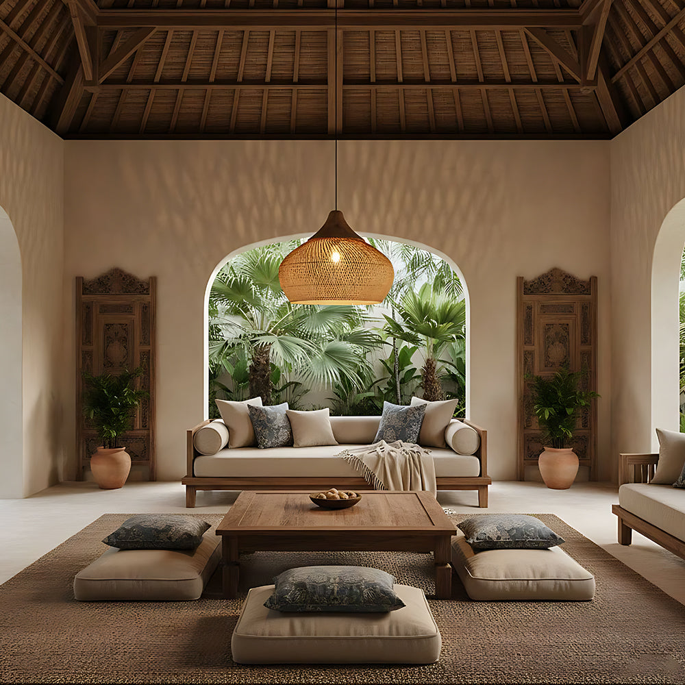 This lamp is hand-woven from natural rattan, presenting a rounded, full cocoon-shaped silhouette. Gaps in the weave allow light to filter through softly, creating a warm, dappled glow. Ideal for dining rooms, tea rooms, bedrooms, and other spaces—it brings a touch of handcrafted warmth and natural poetry indoors.