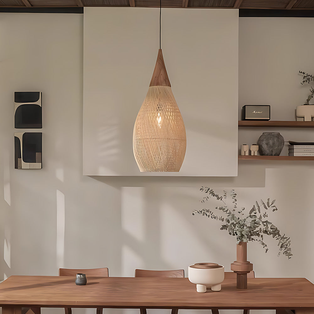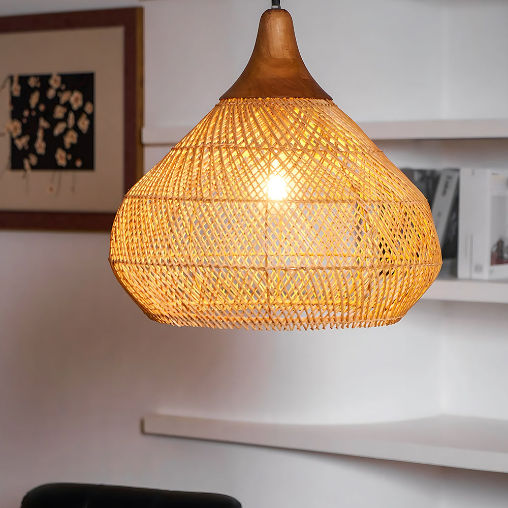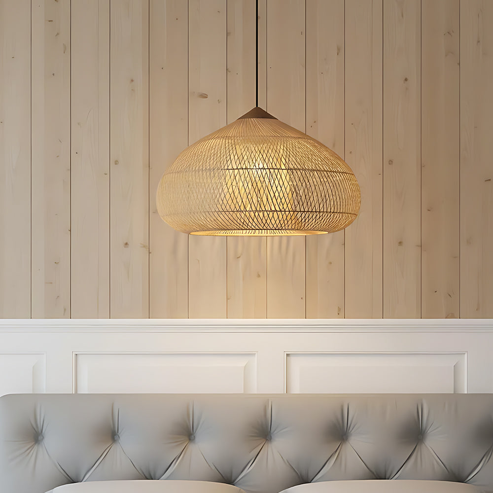 Natural Rustic Style Cocoon-Shaped Rattan Pendant Light