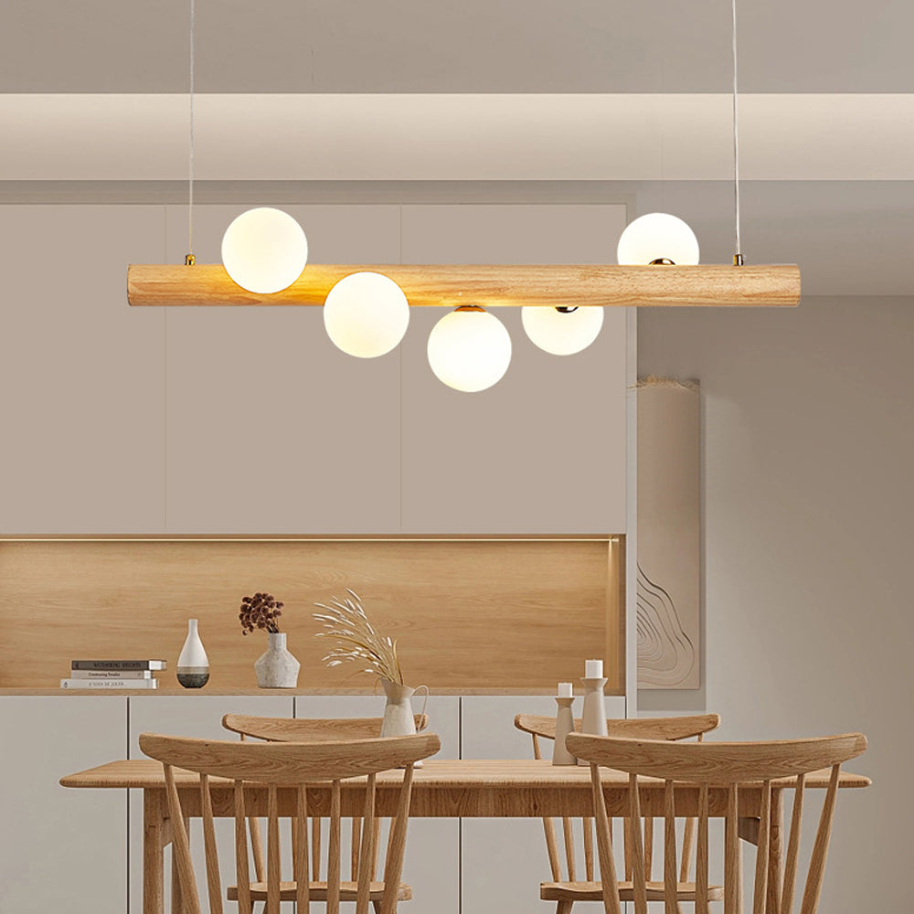 Scandinavian Wooden Glass Globe Pendant Lamp