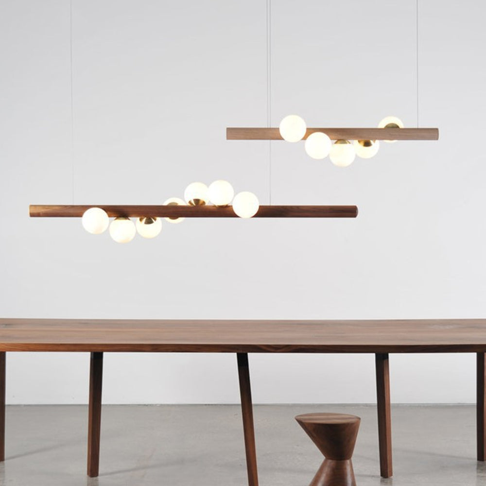 Perfect for large rooms, this Scandinavian wooden pendant lamp adds a contemporary flair to your home. Its unique horizontal and vertical design brings a modern touch, complementing any modern decor with style and elegance.