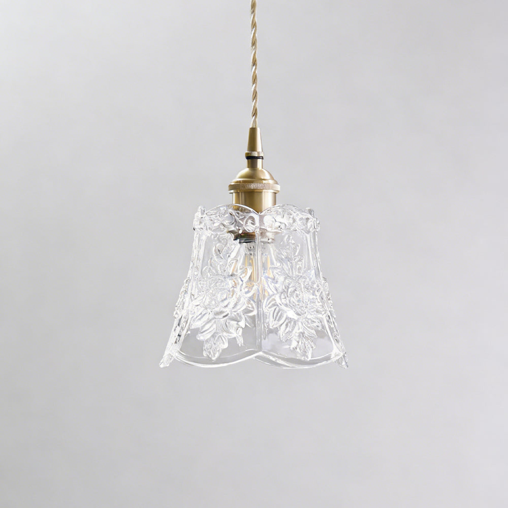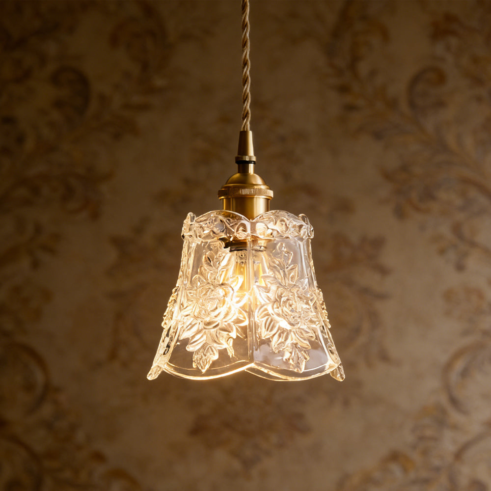 Vintage Flower Brass Glass Adjustable Pendant Light