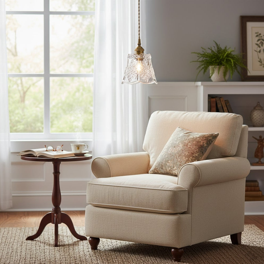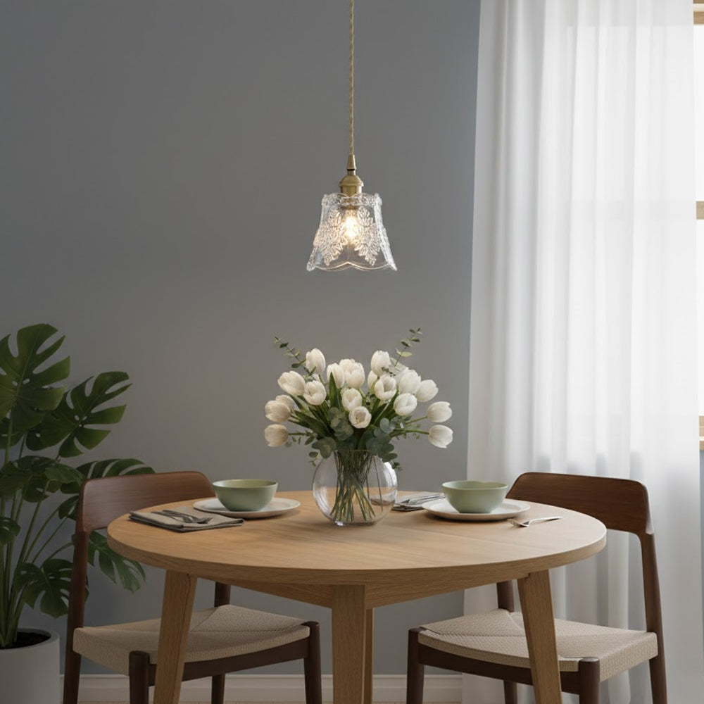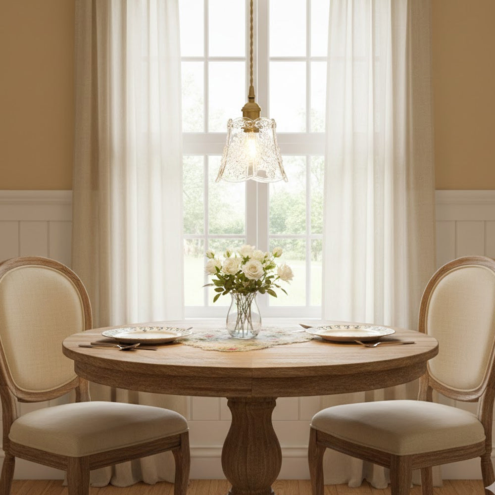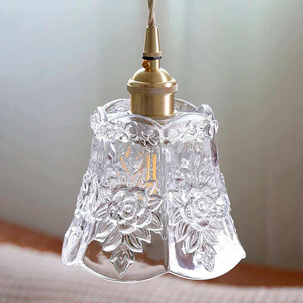 Elevate your space with this Vintage Flower Glass Pendant Light. Its handcrafted glass and adjustable cord bring effortless farmhouse charm and customizable style to any cottage or rustic home.