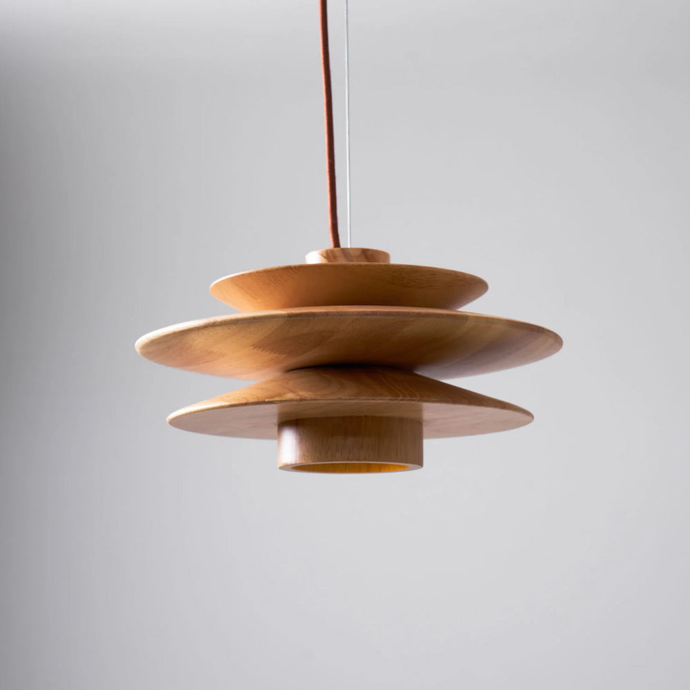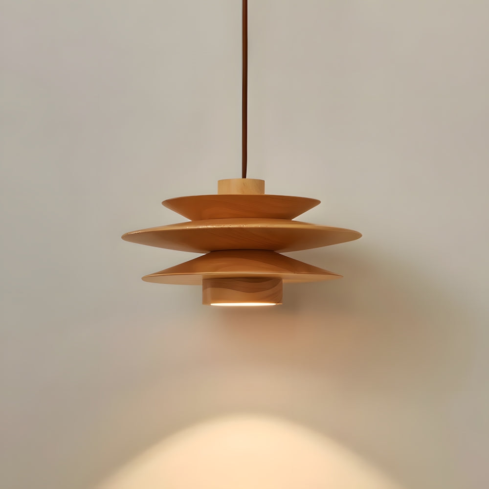 Modern Elegance Tiered Disc Wooden Pendant Light
