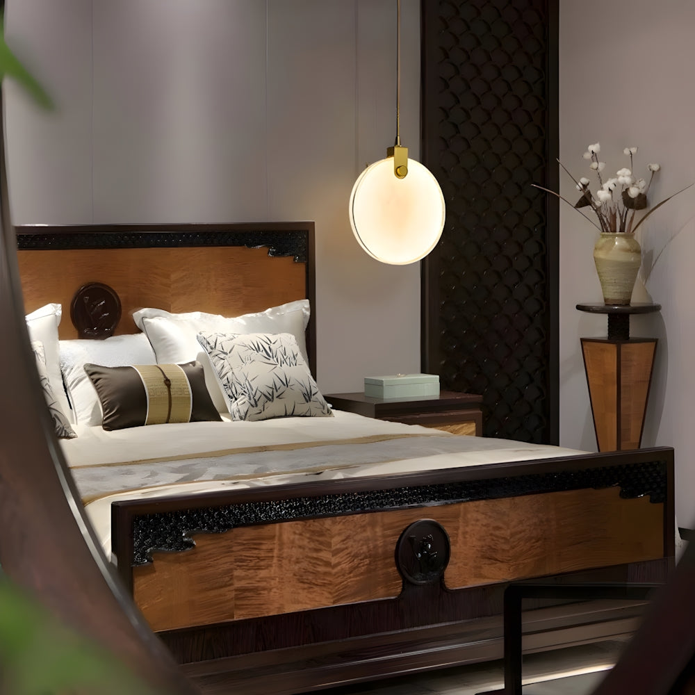 Wabi-sabi Retro Style Solid Wood Bedside Dining Pendant Light