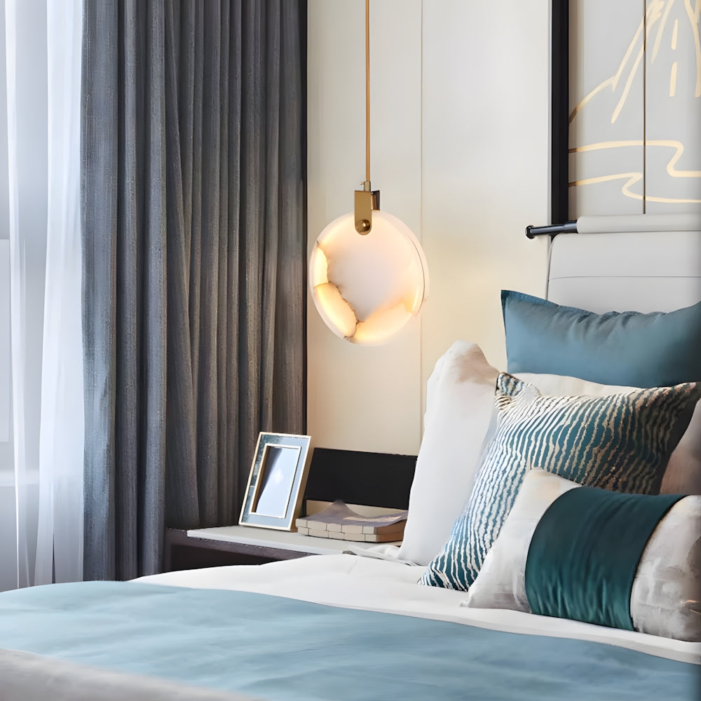 Vintage Yellow Travertine Wabi-sabi Style Creative Bedroom Pendant Lamp