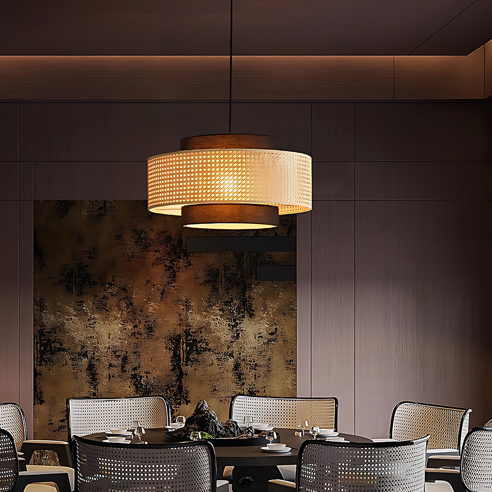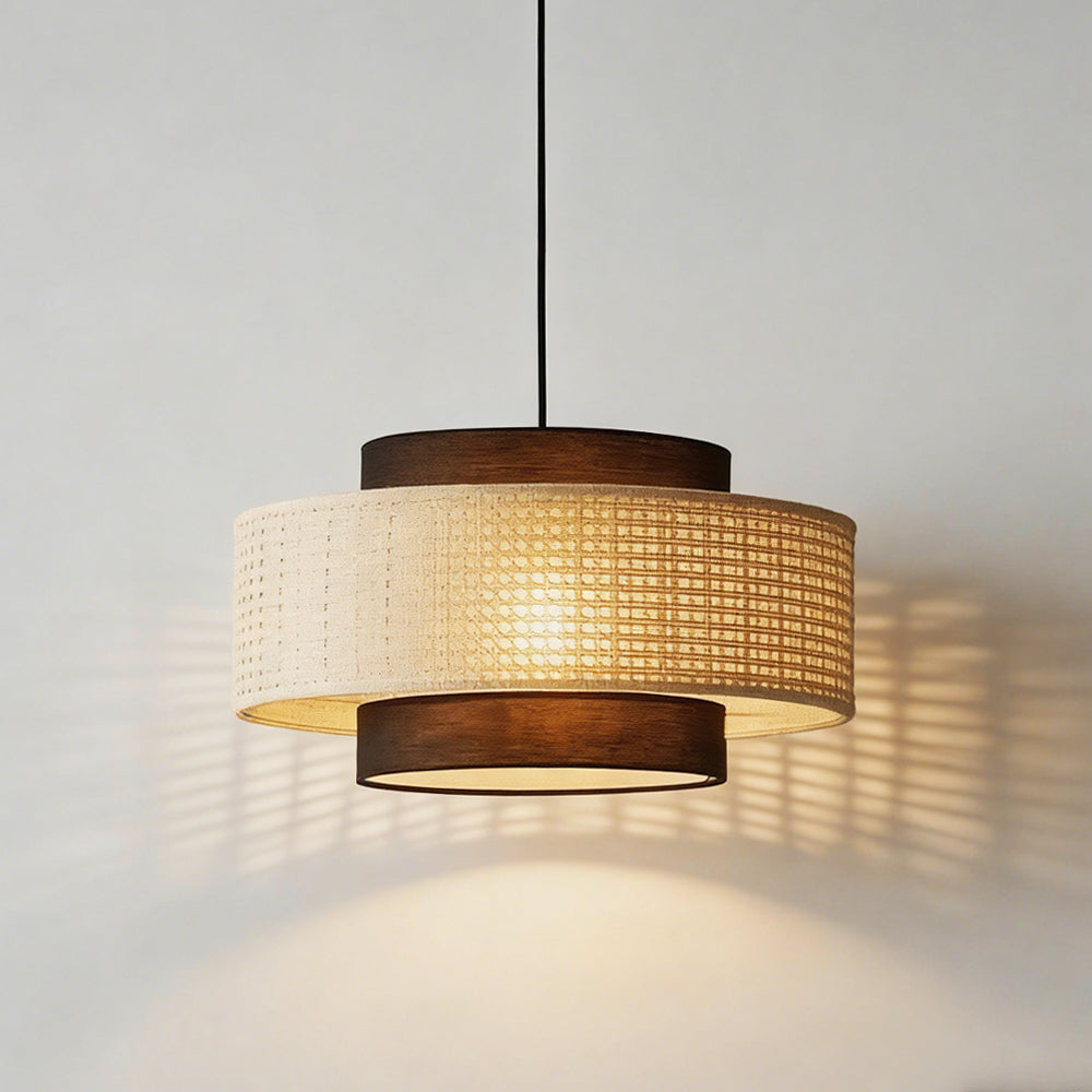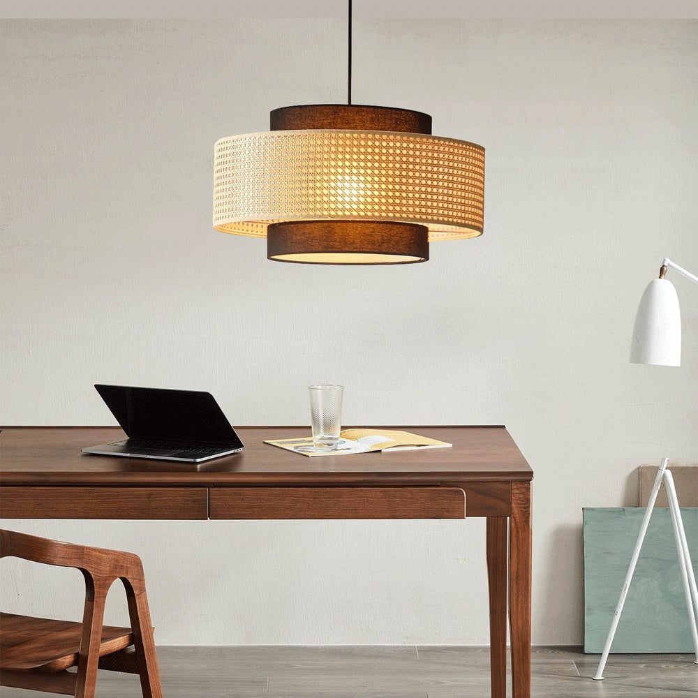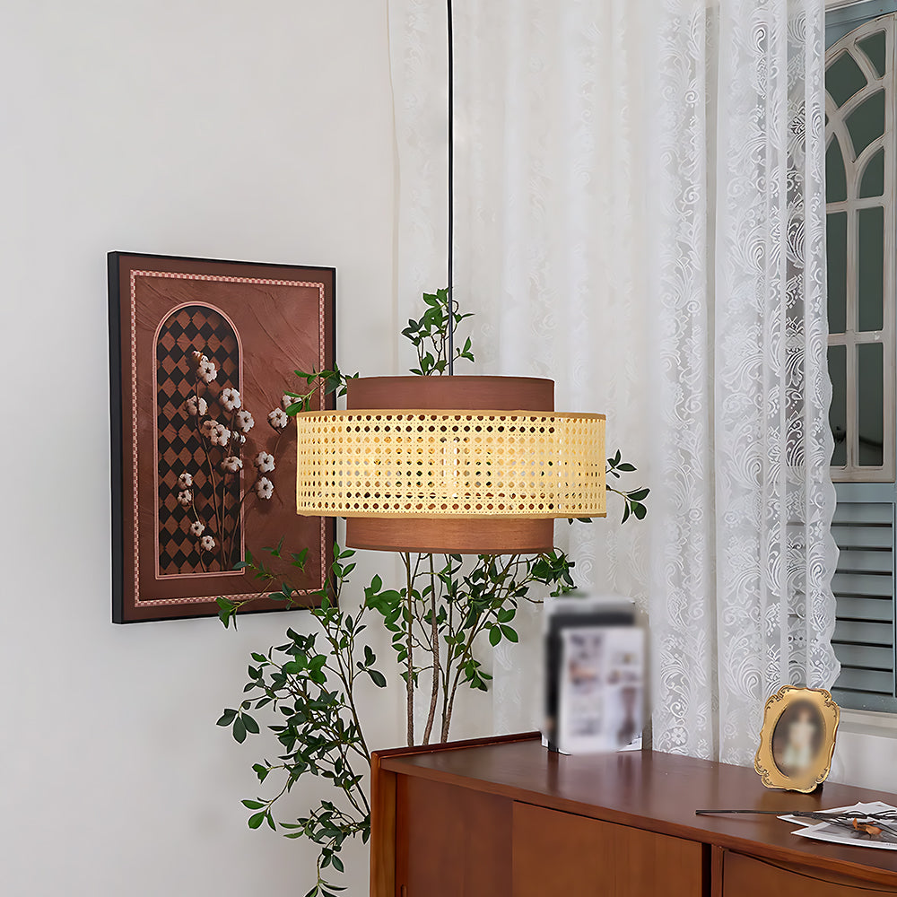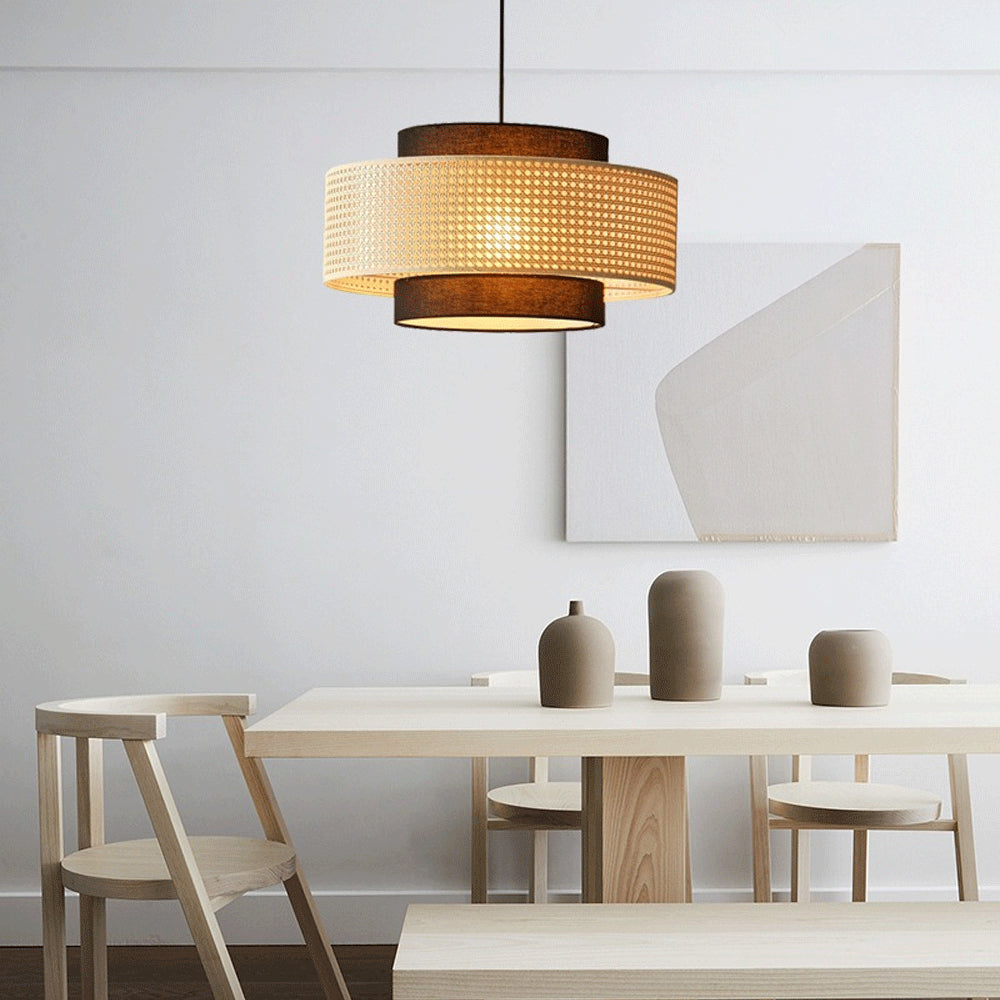 Vintage Wabi-Sabi Nesting Cylinder Rattan Pendant Light