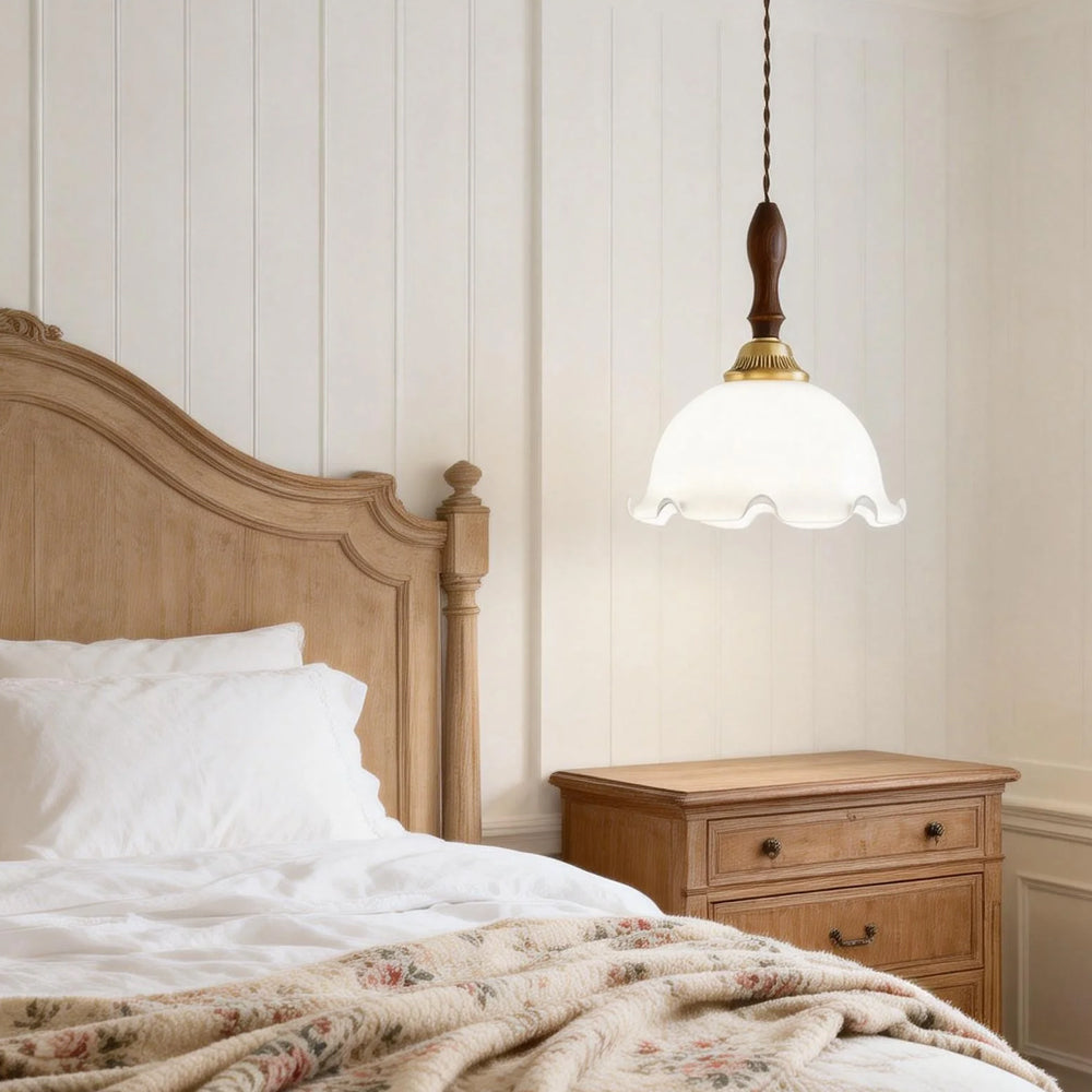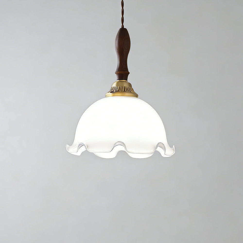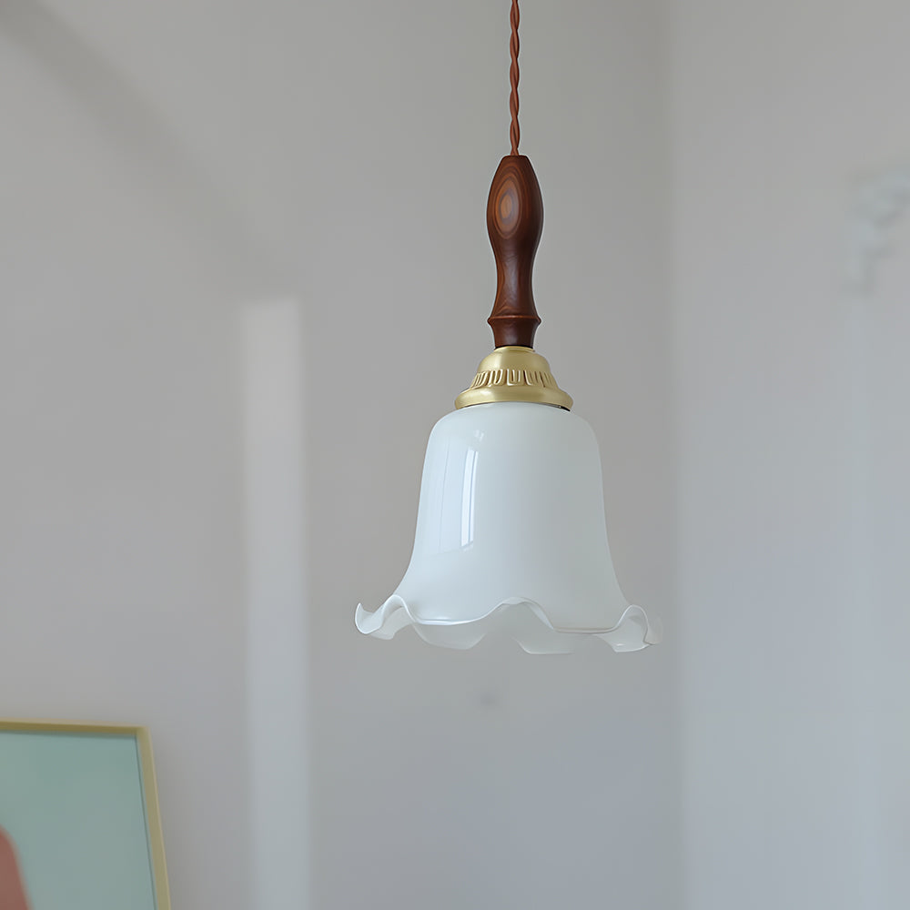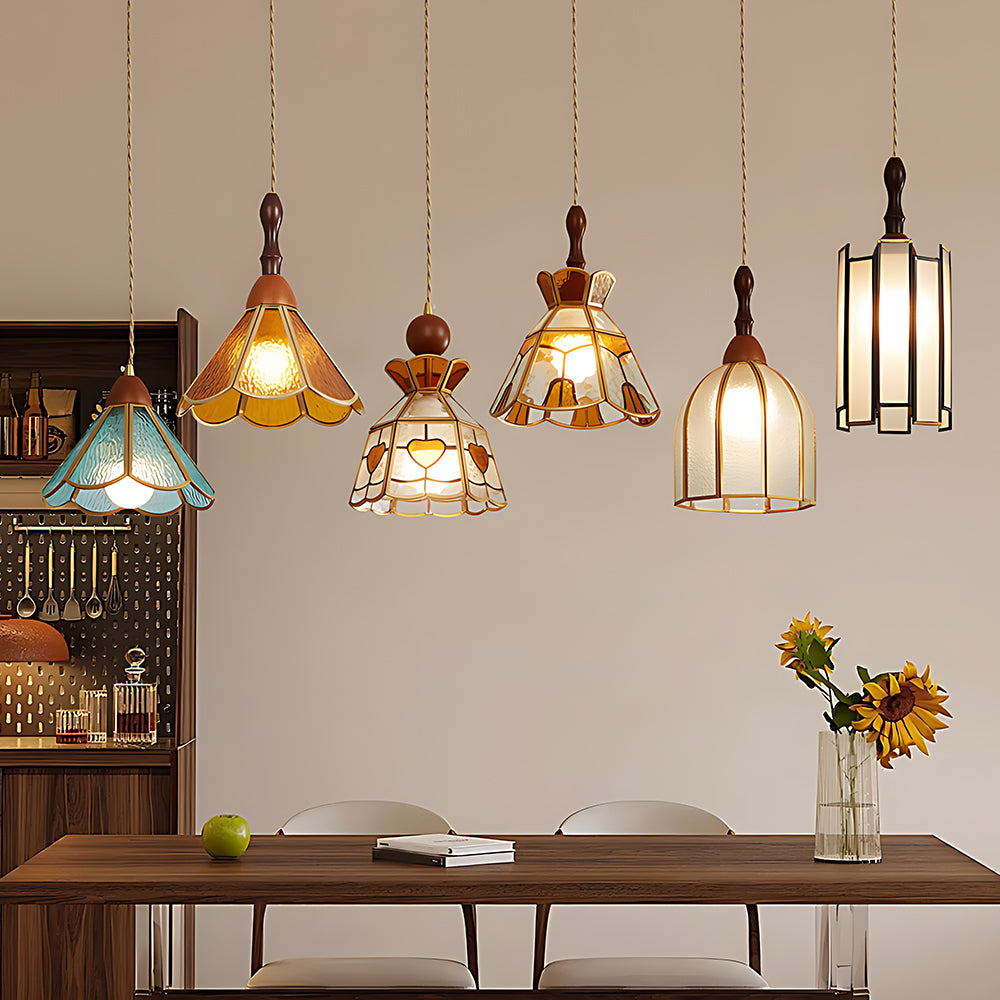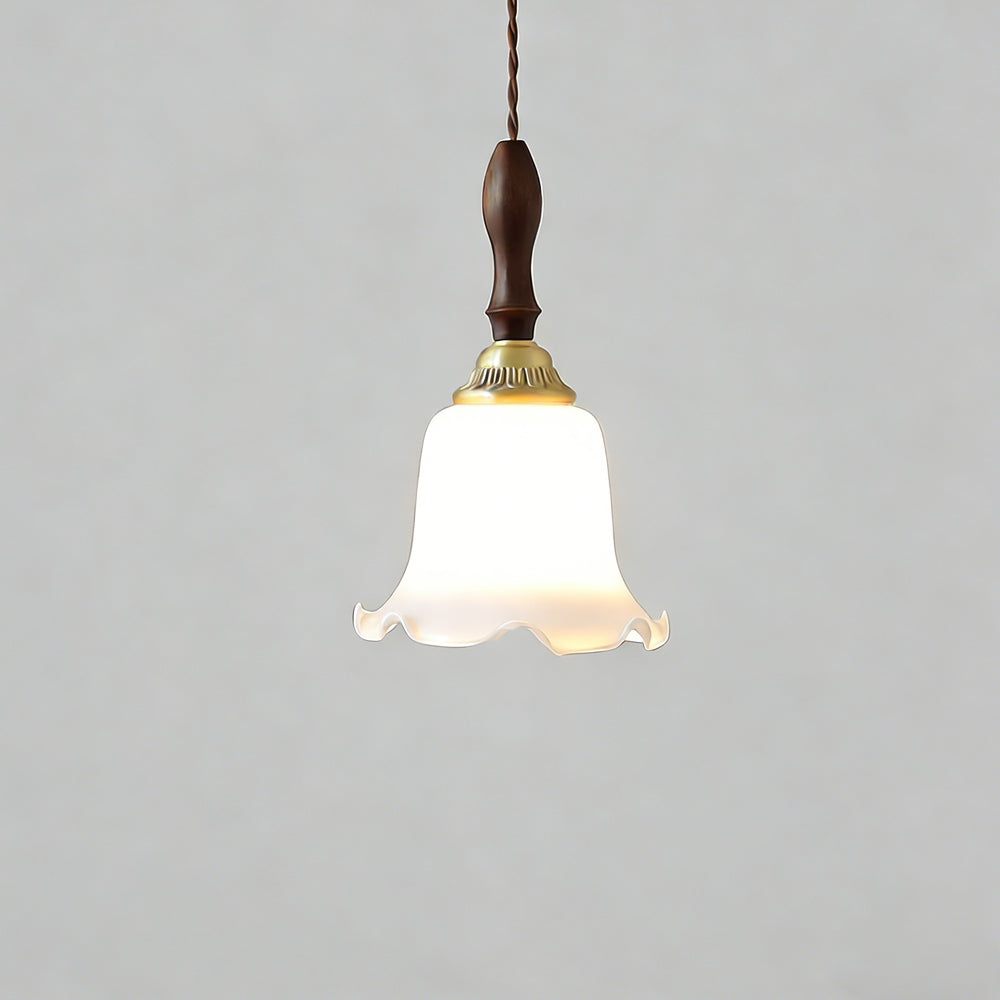 American Retro Floral Walnut Glass Mini Pendant Light