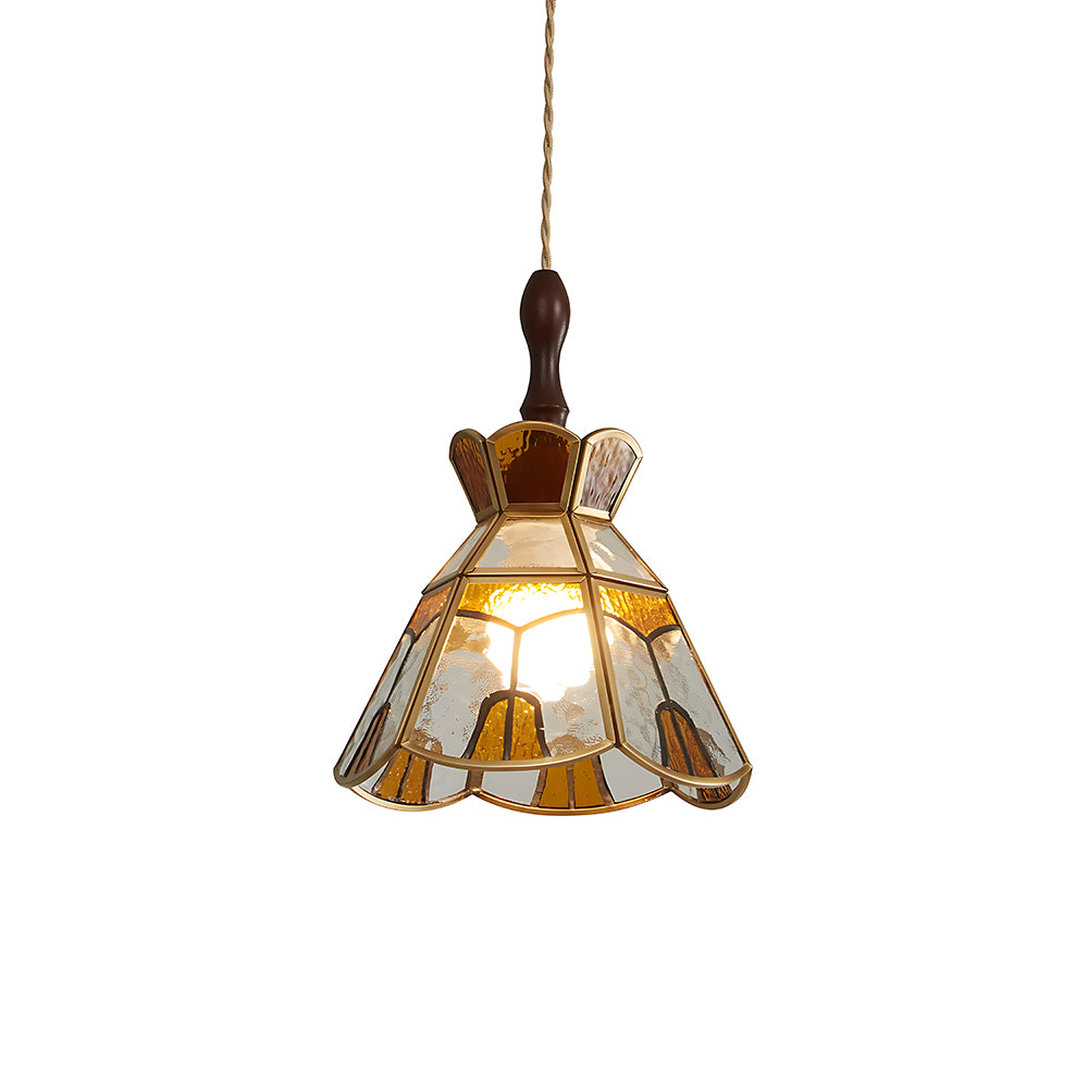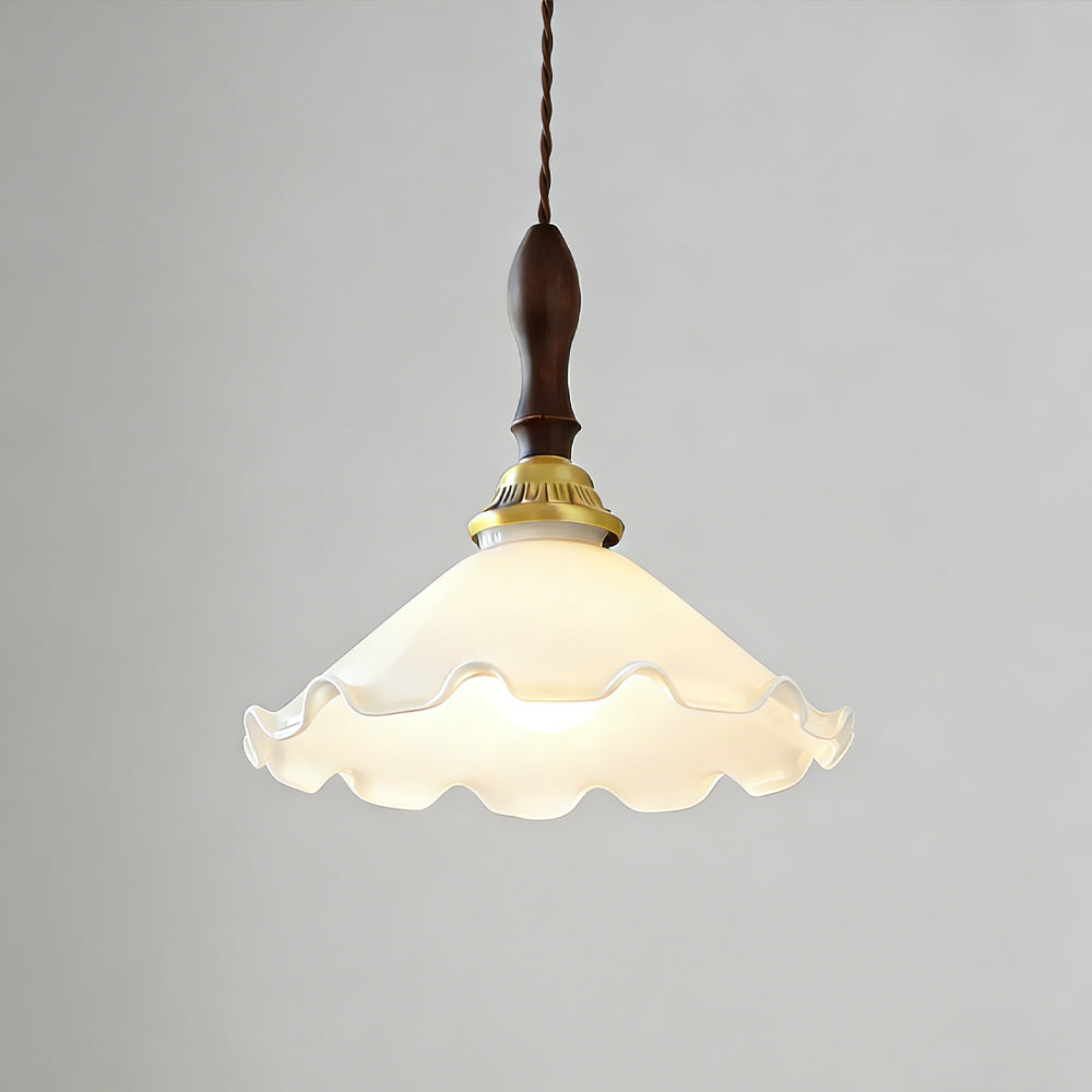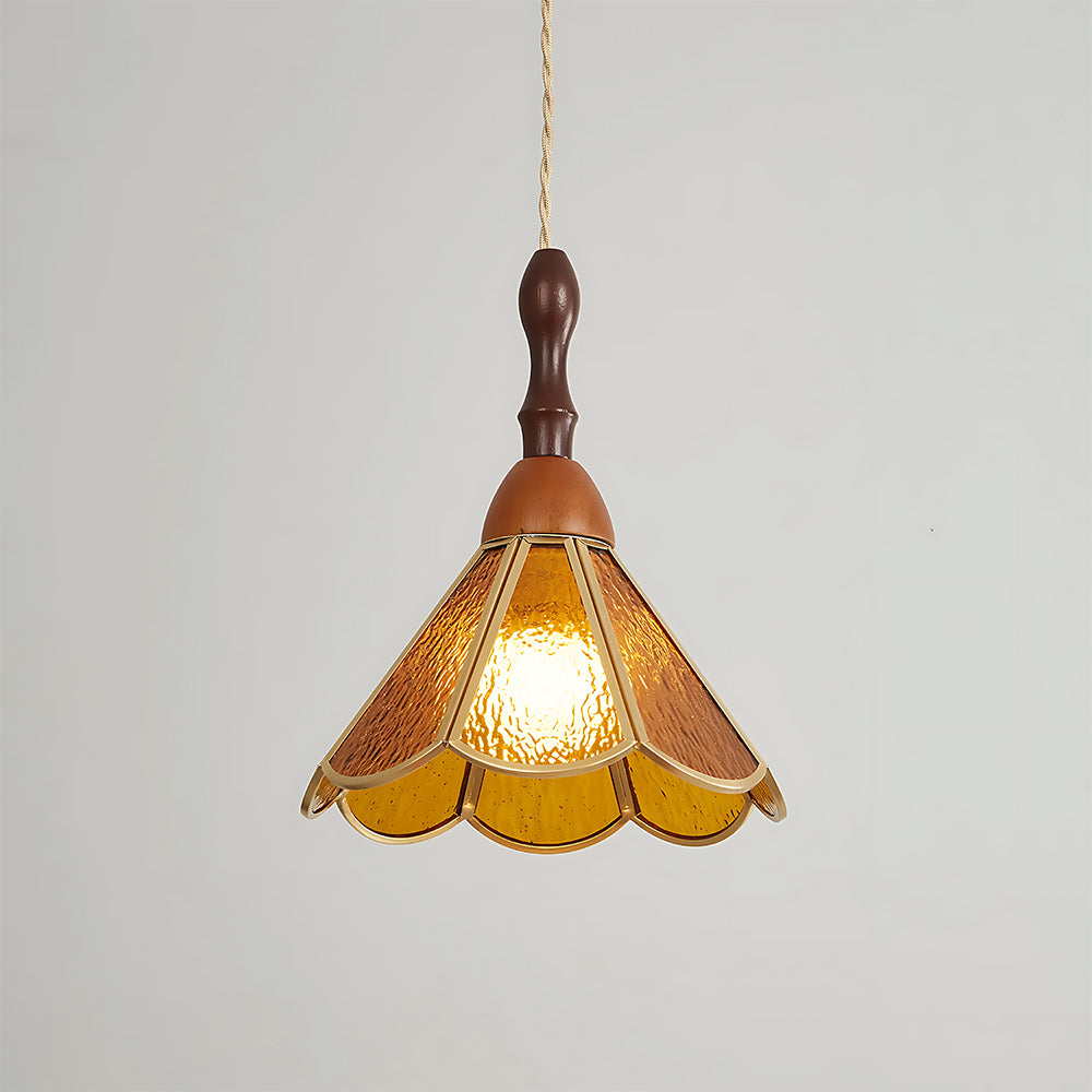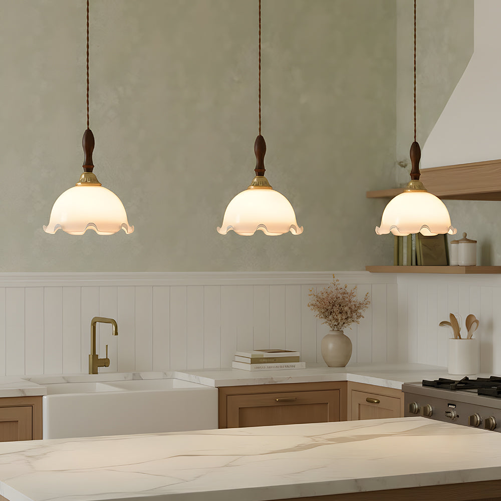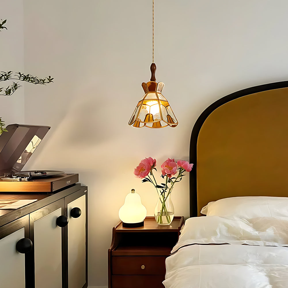 American Retro Floral Walnut Glass Mini Pendant Light