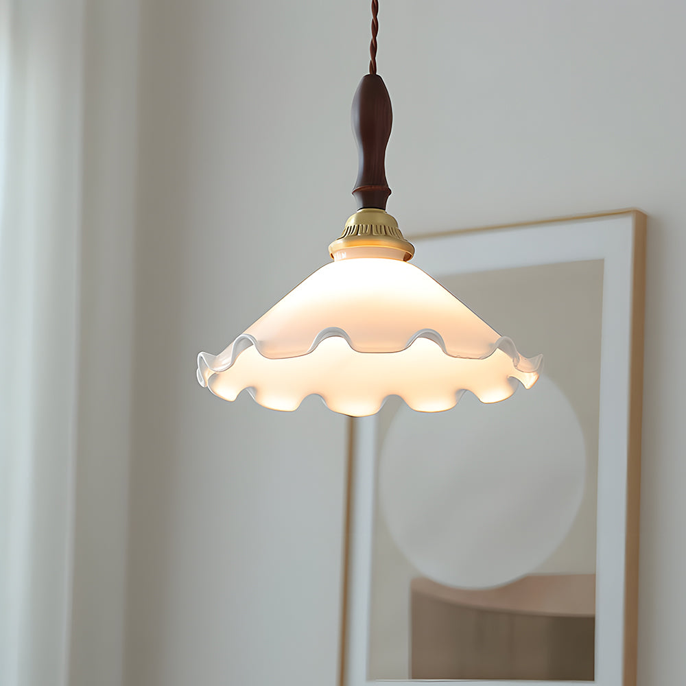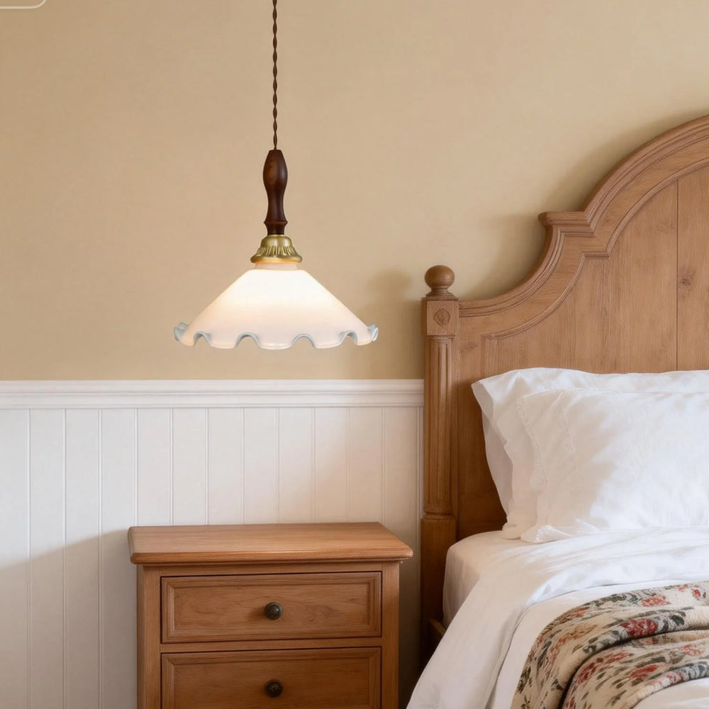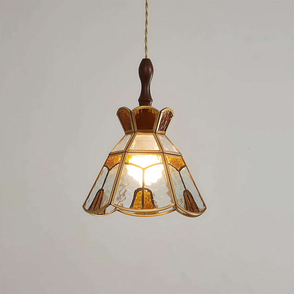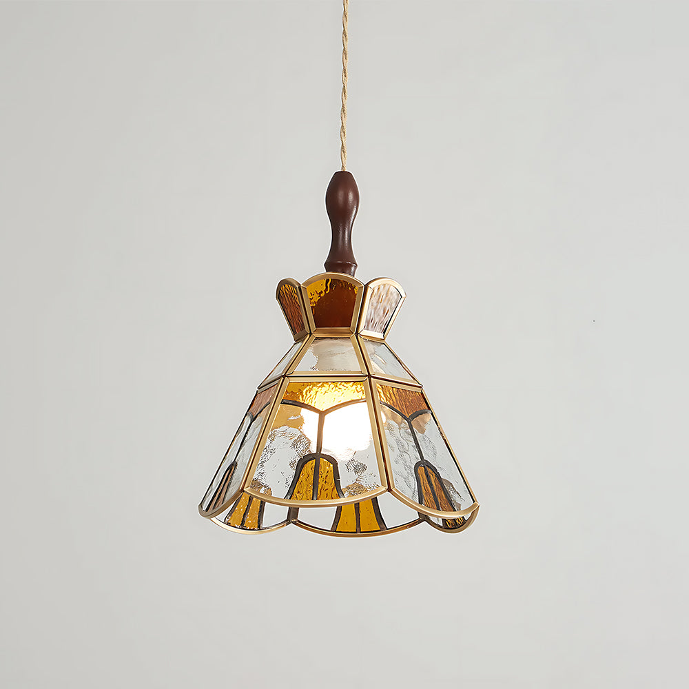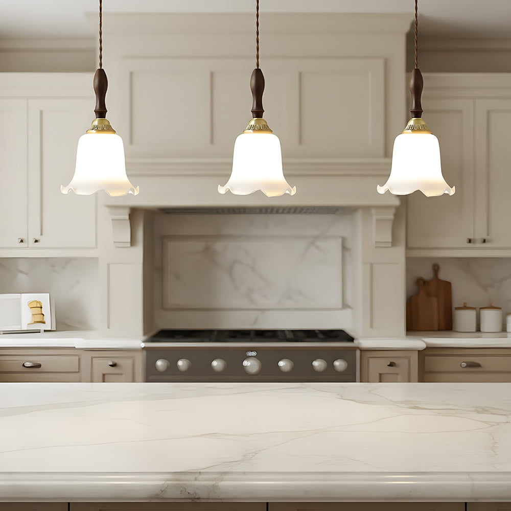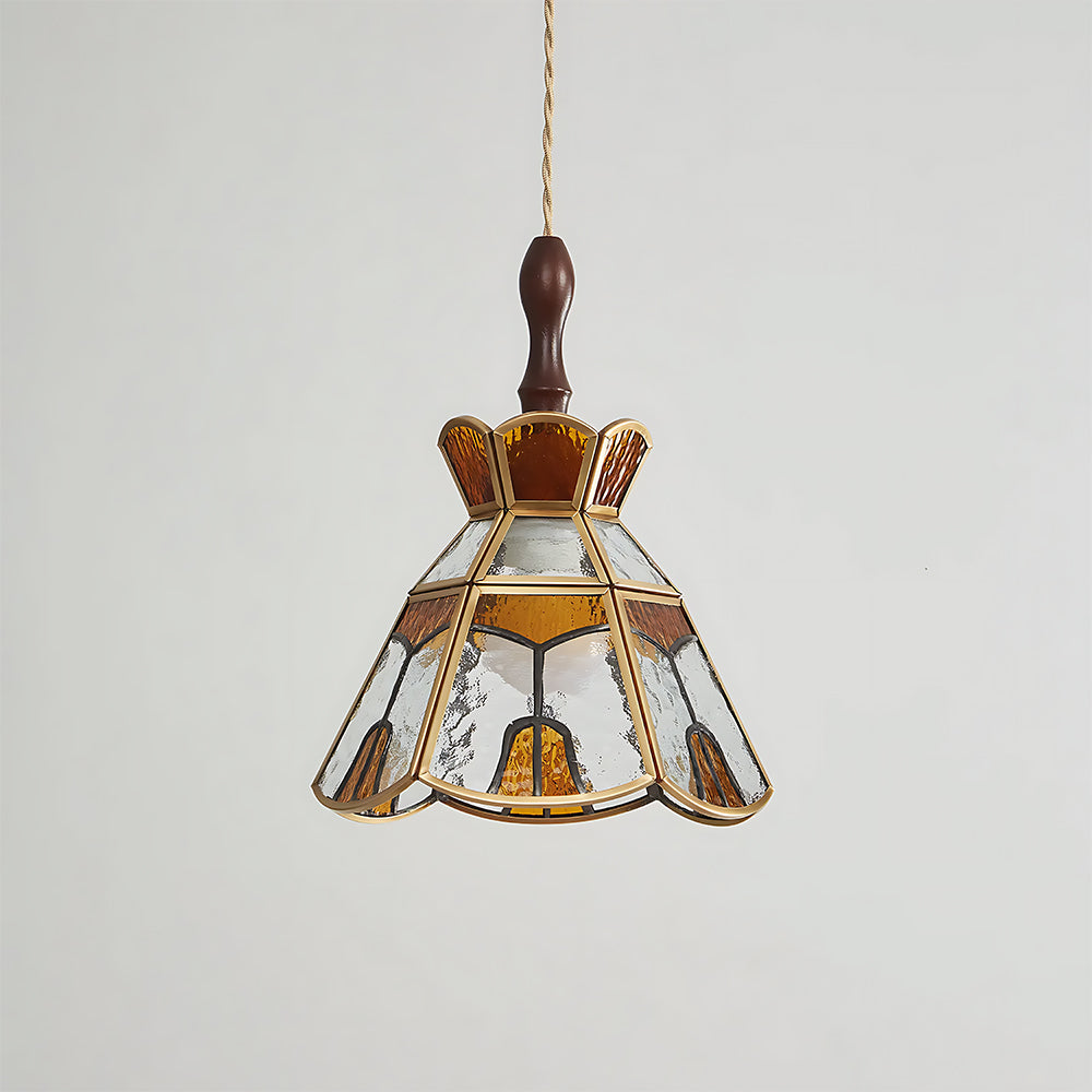 American Retro Floral Walnut Glass Mini Pendant Light