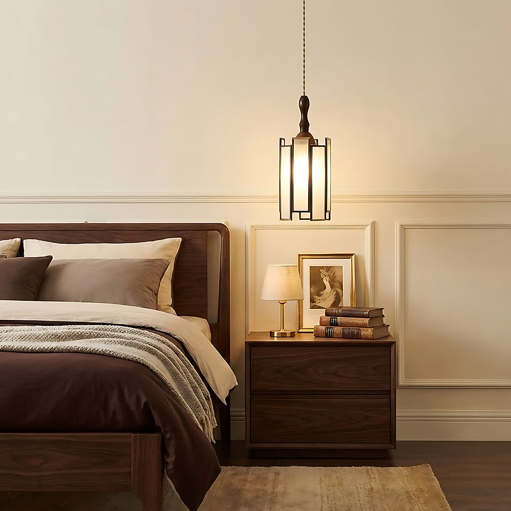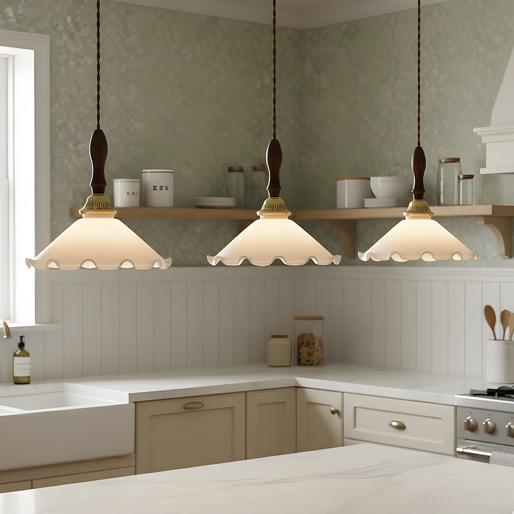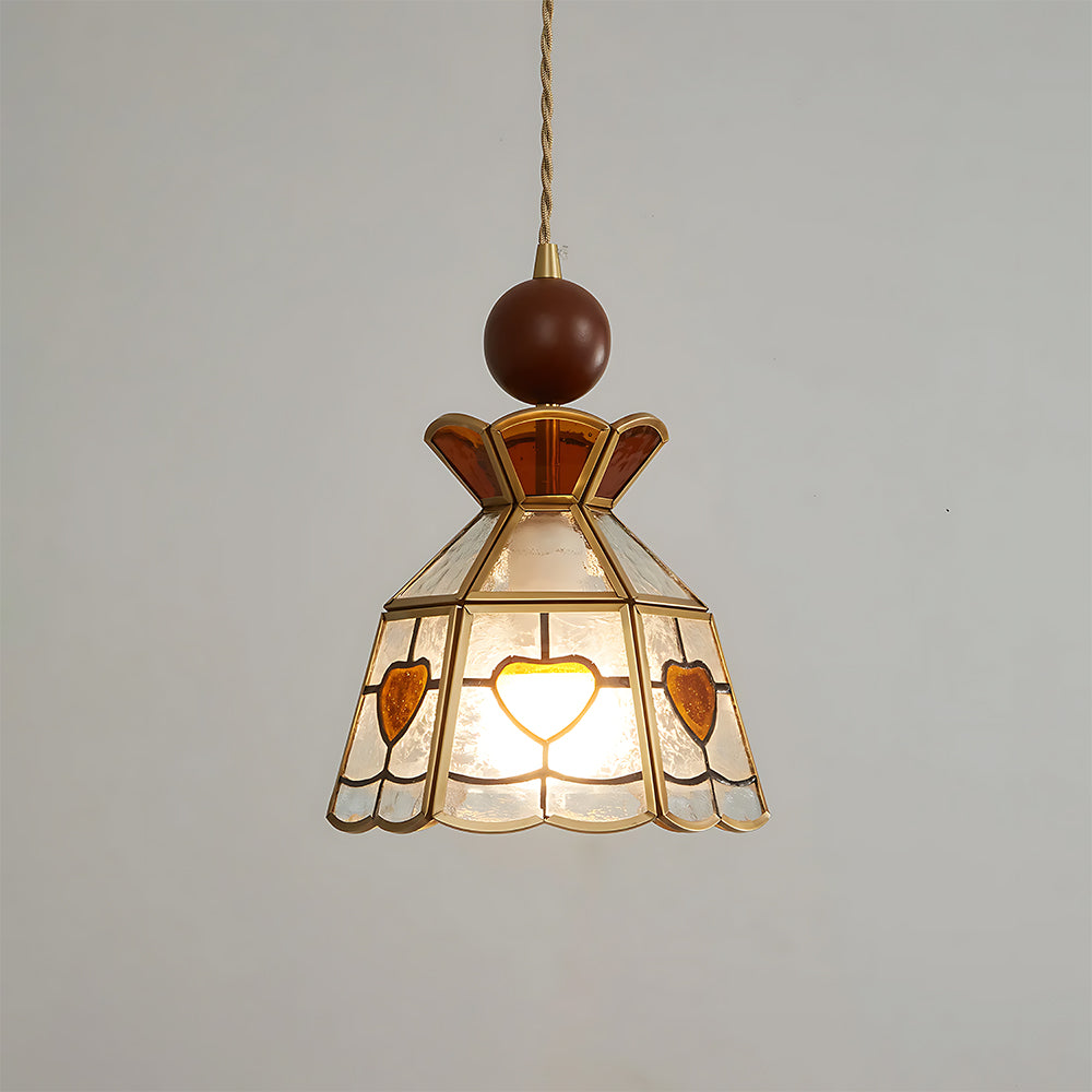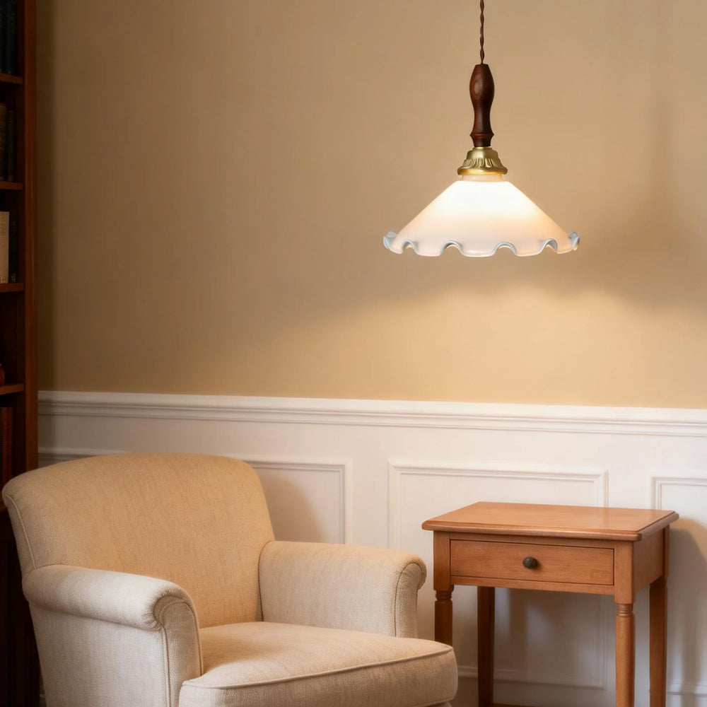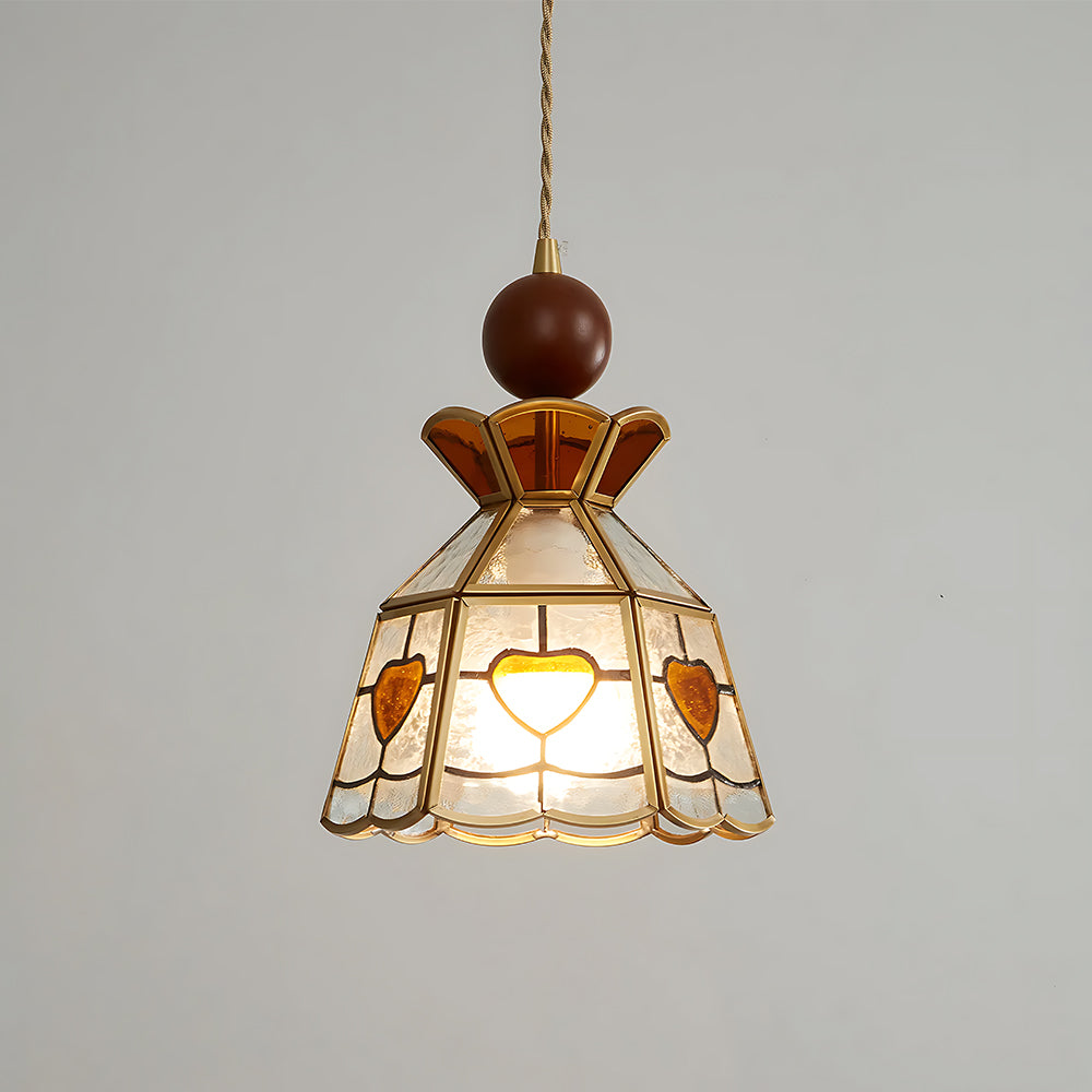 American Retro Floral Walnut Glass Mini Pendant Light