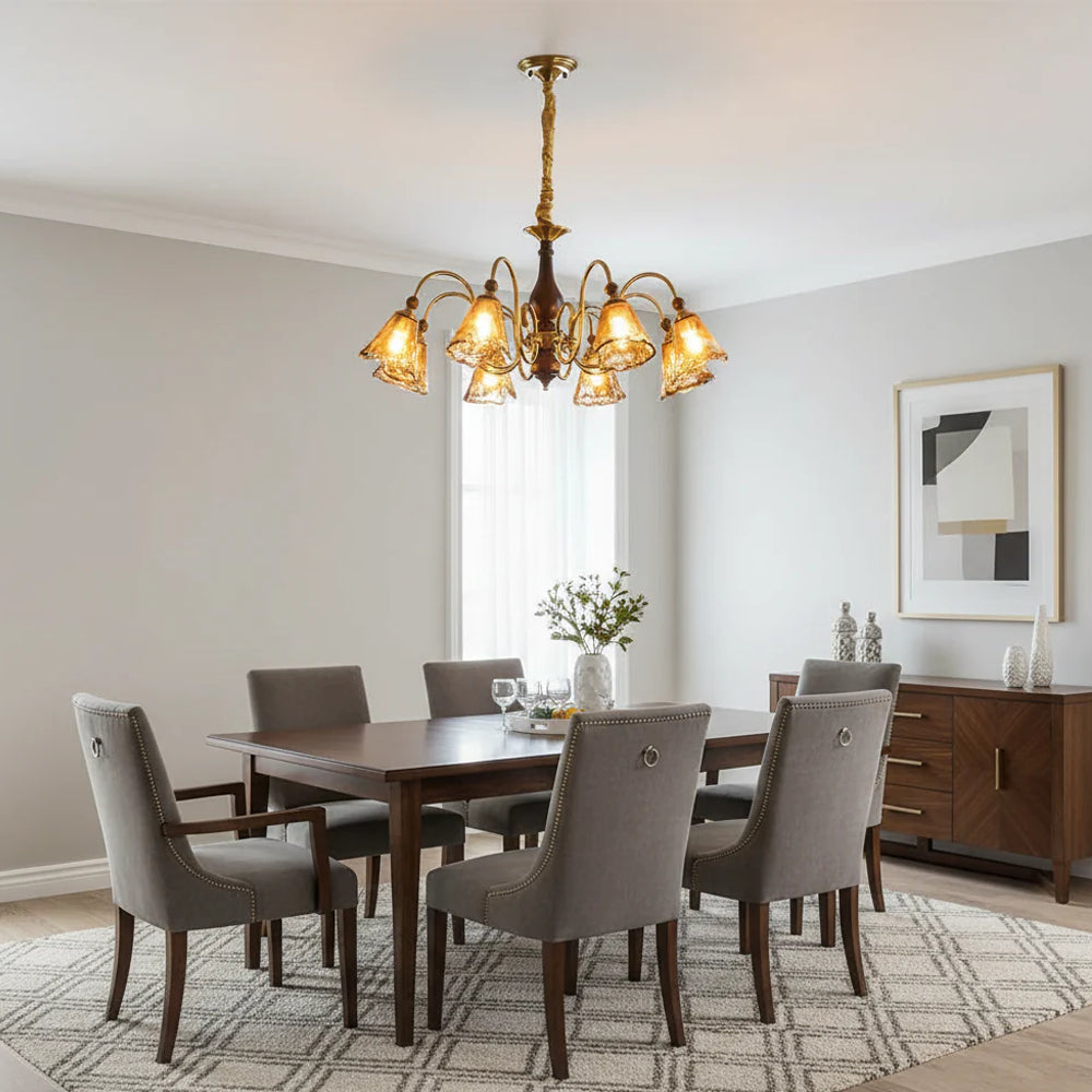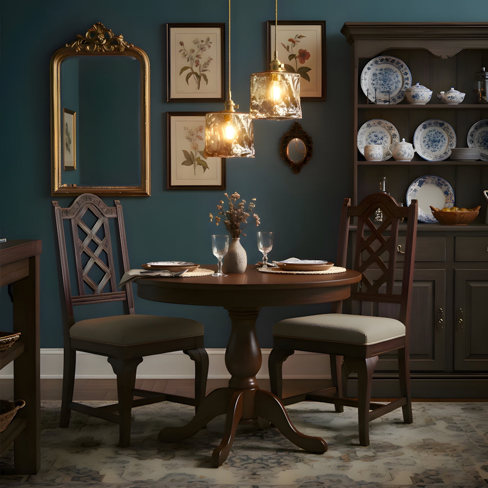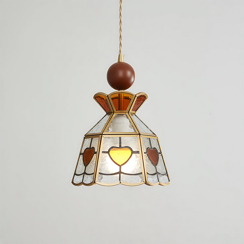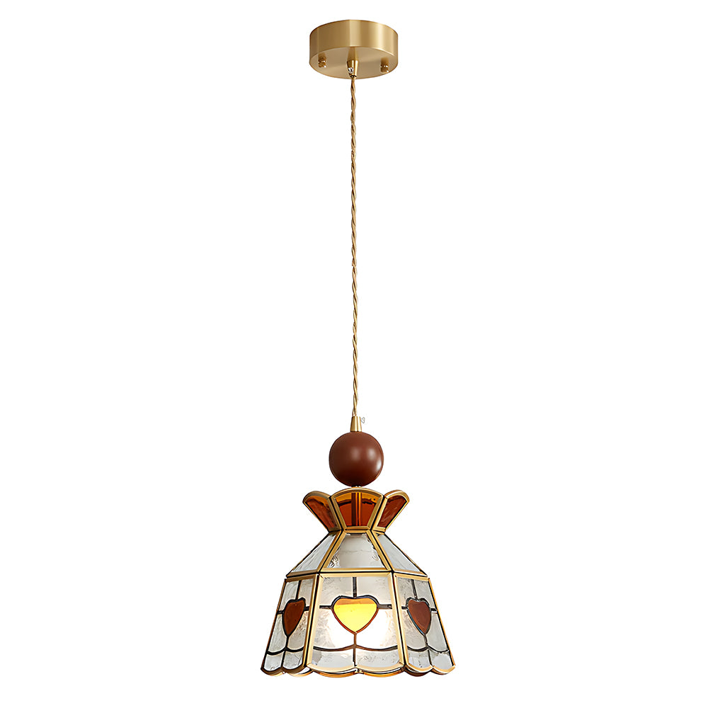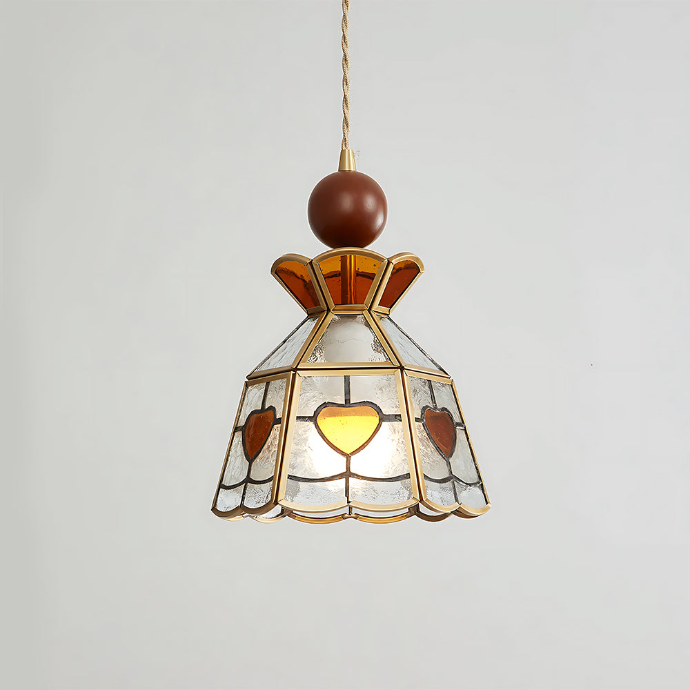 American Retro Floral Walnut Glass Mini Pendant Light