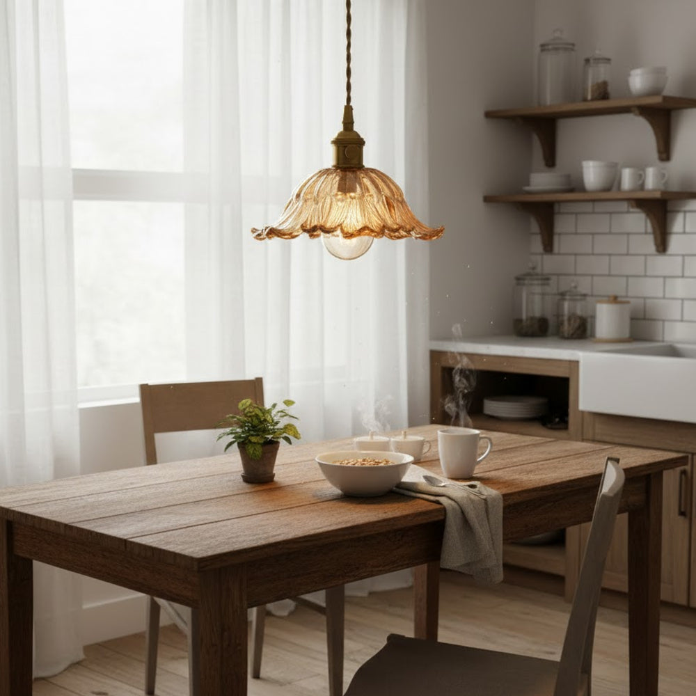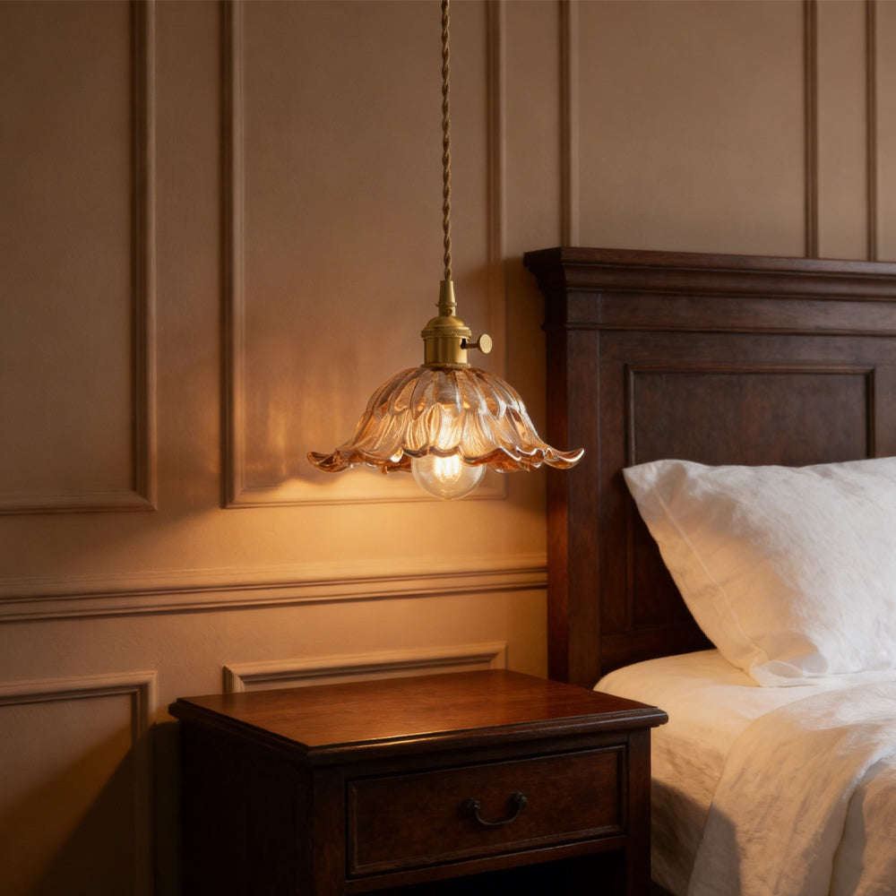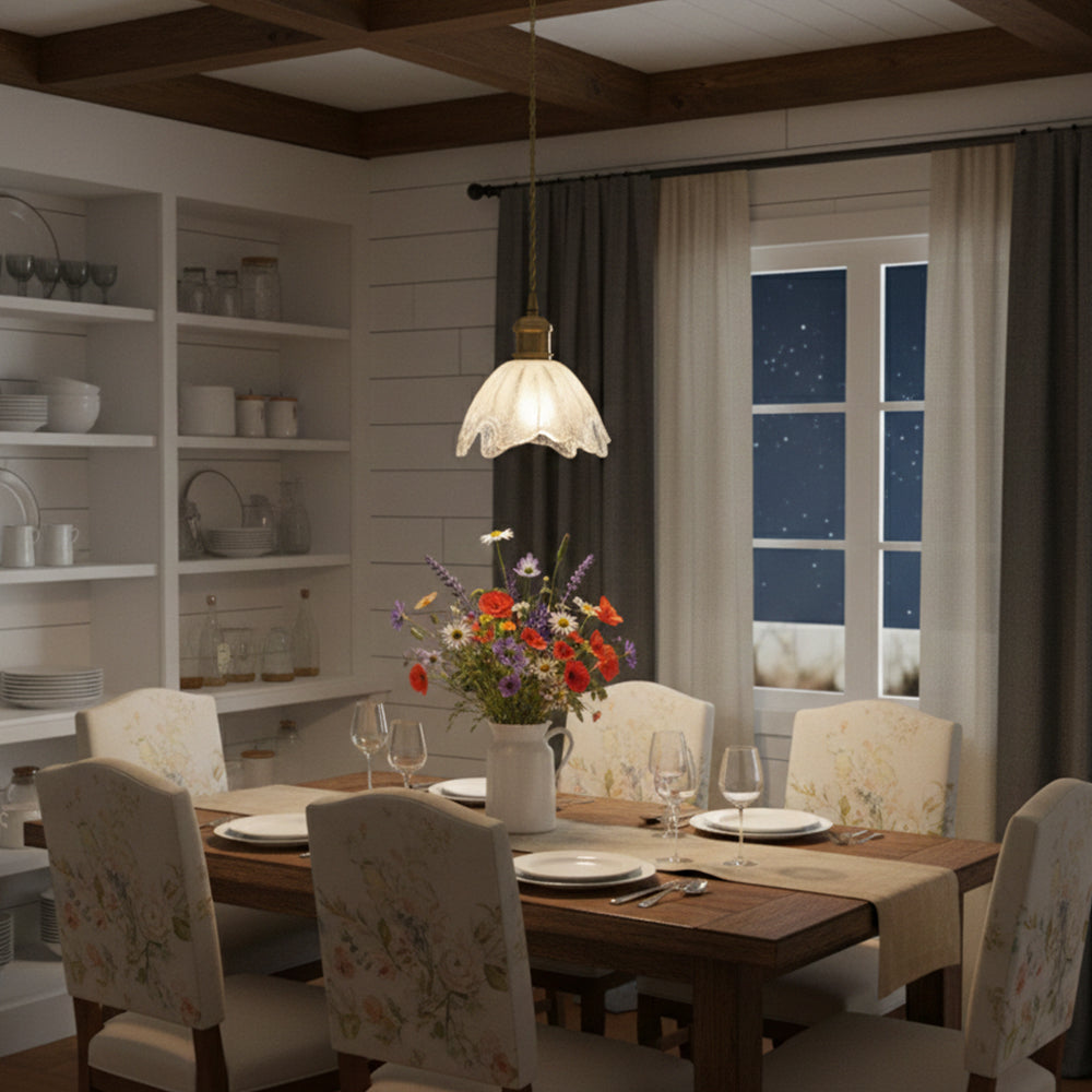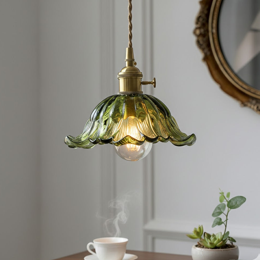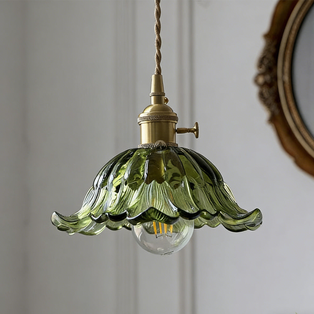 Vintage Flower Brass Glass Adjustable Pendant Light