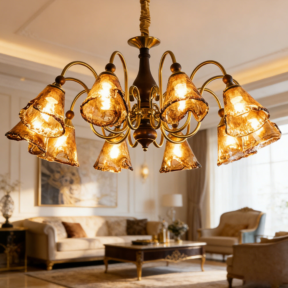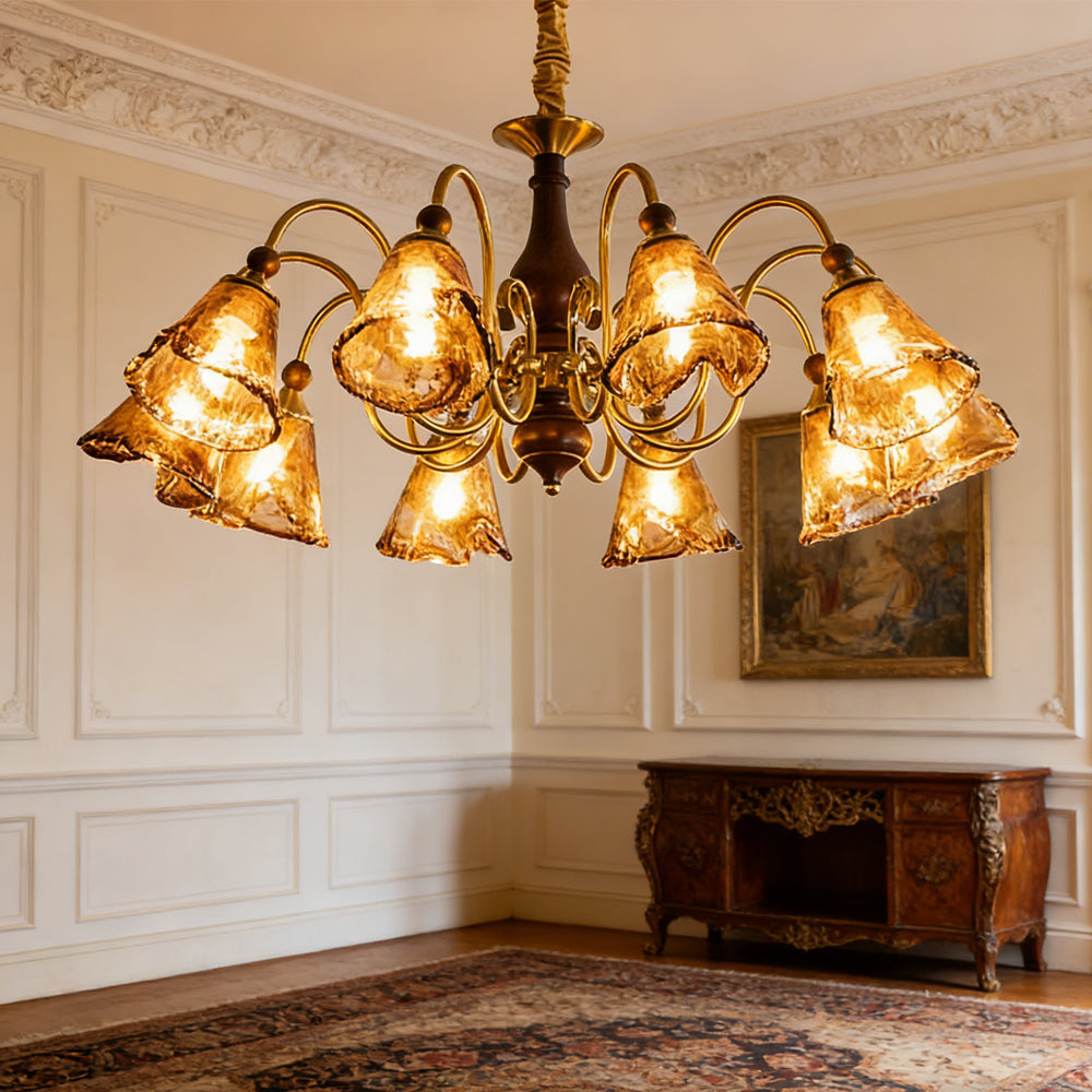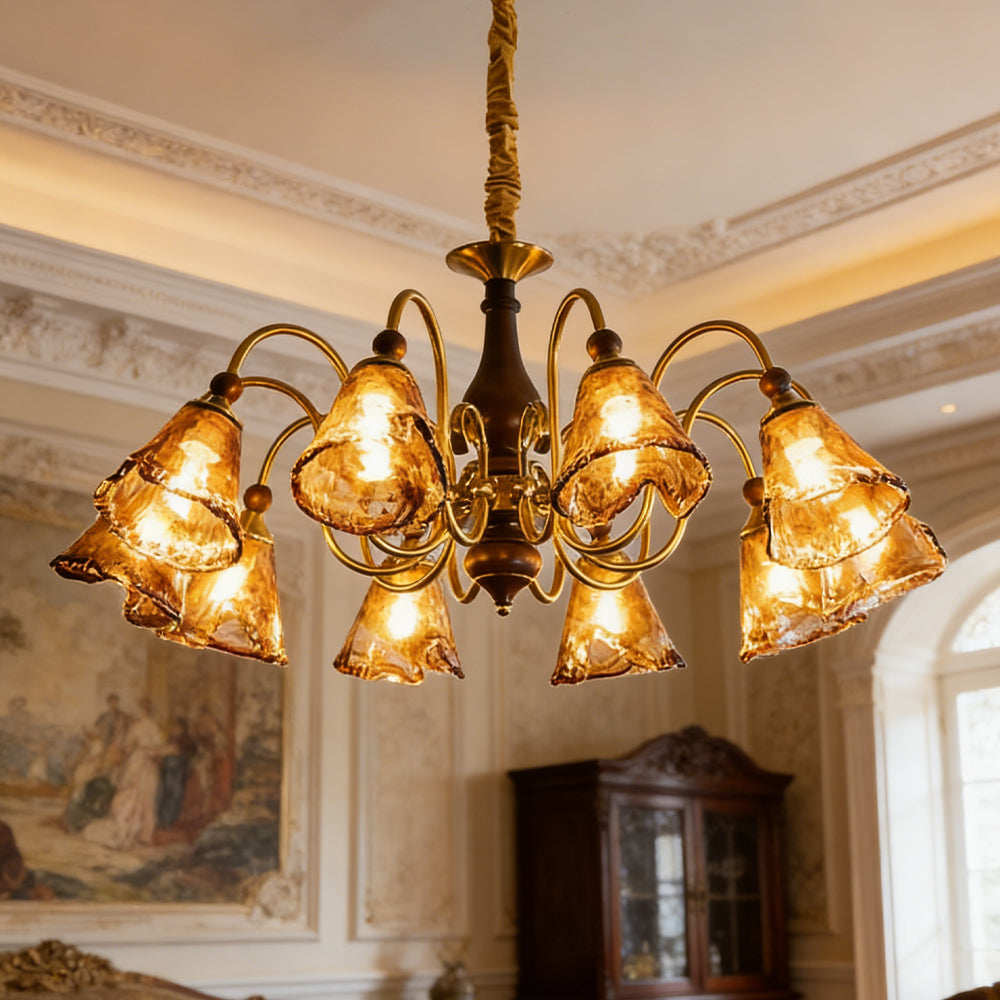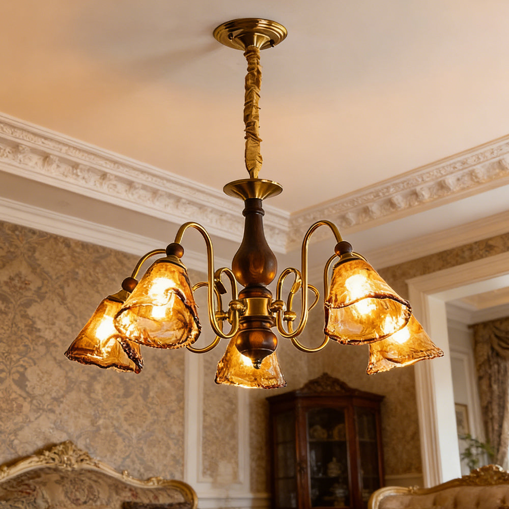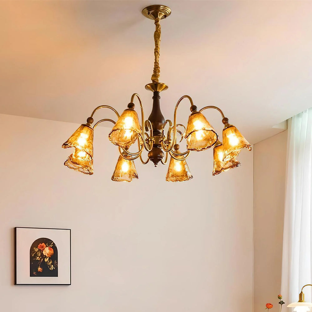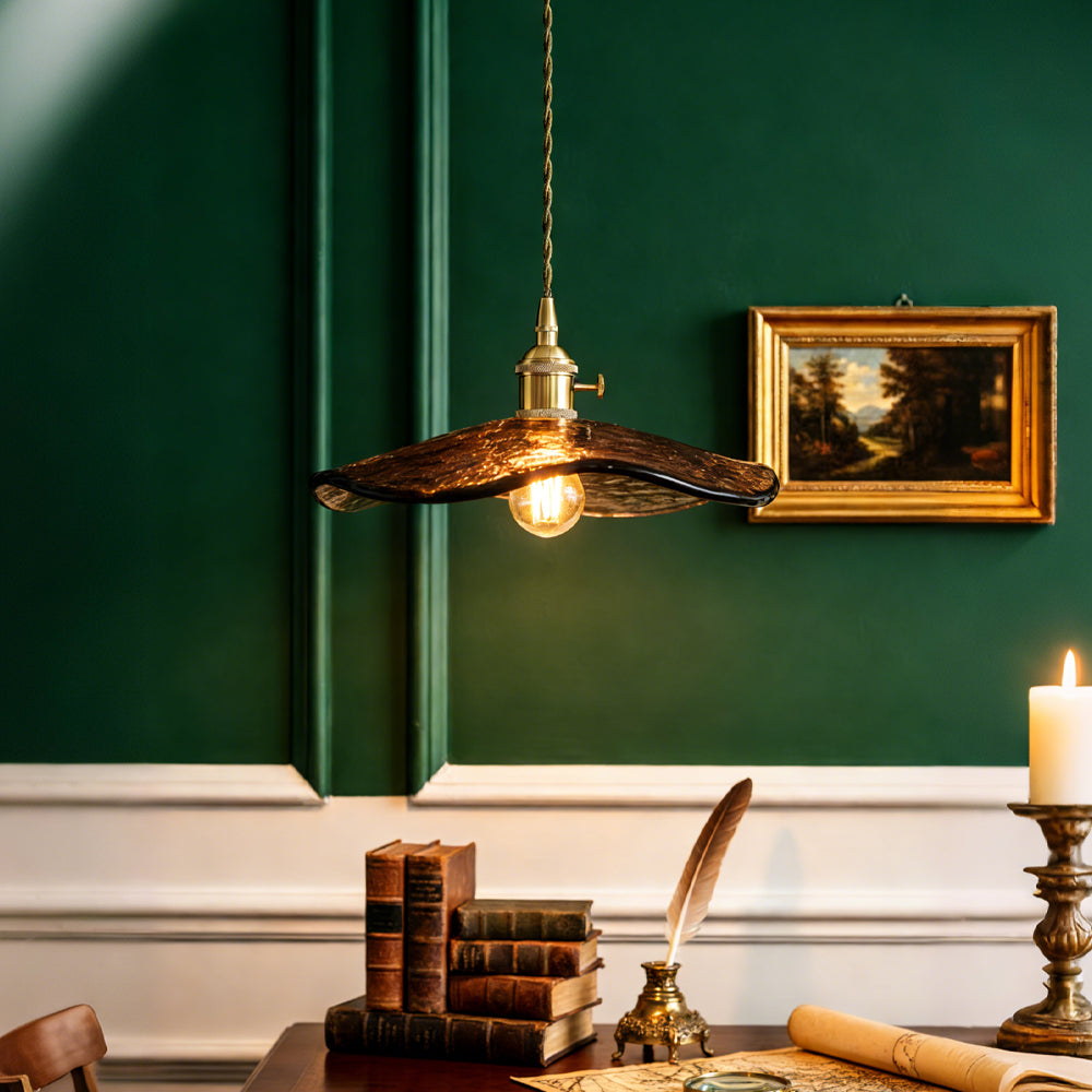 Vintage Flower Brass Glass Adjustable Pendant Light