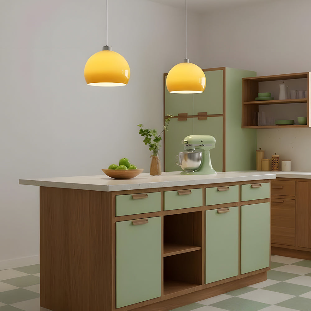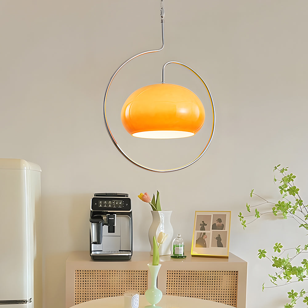 Mid Century Bauhaus Round Sunset Glass Hemisphere Pendant Light