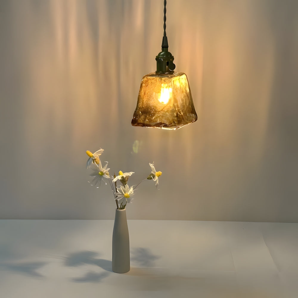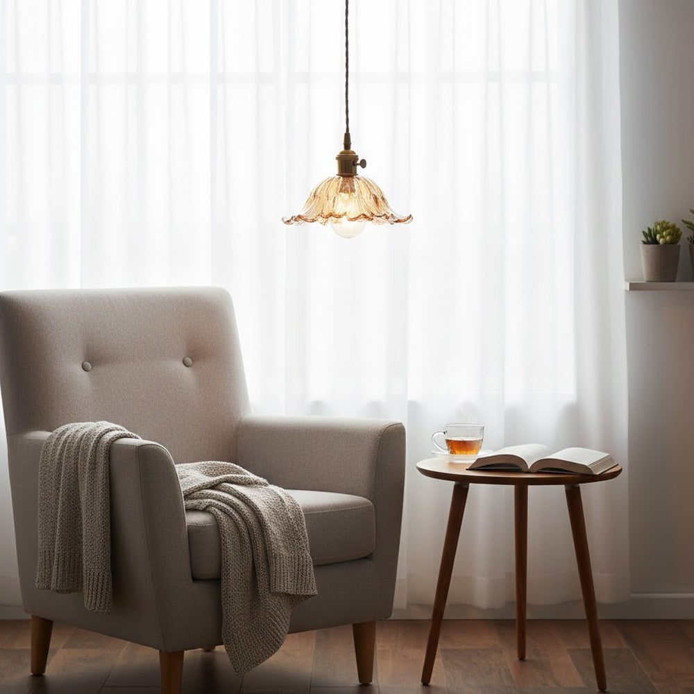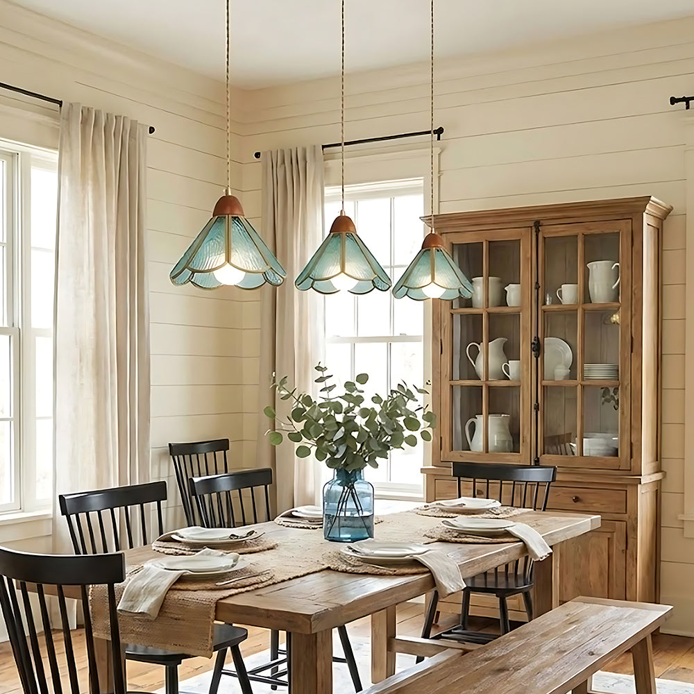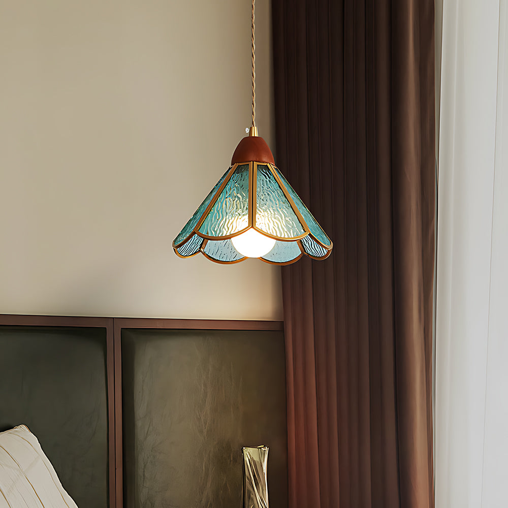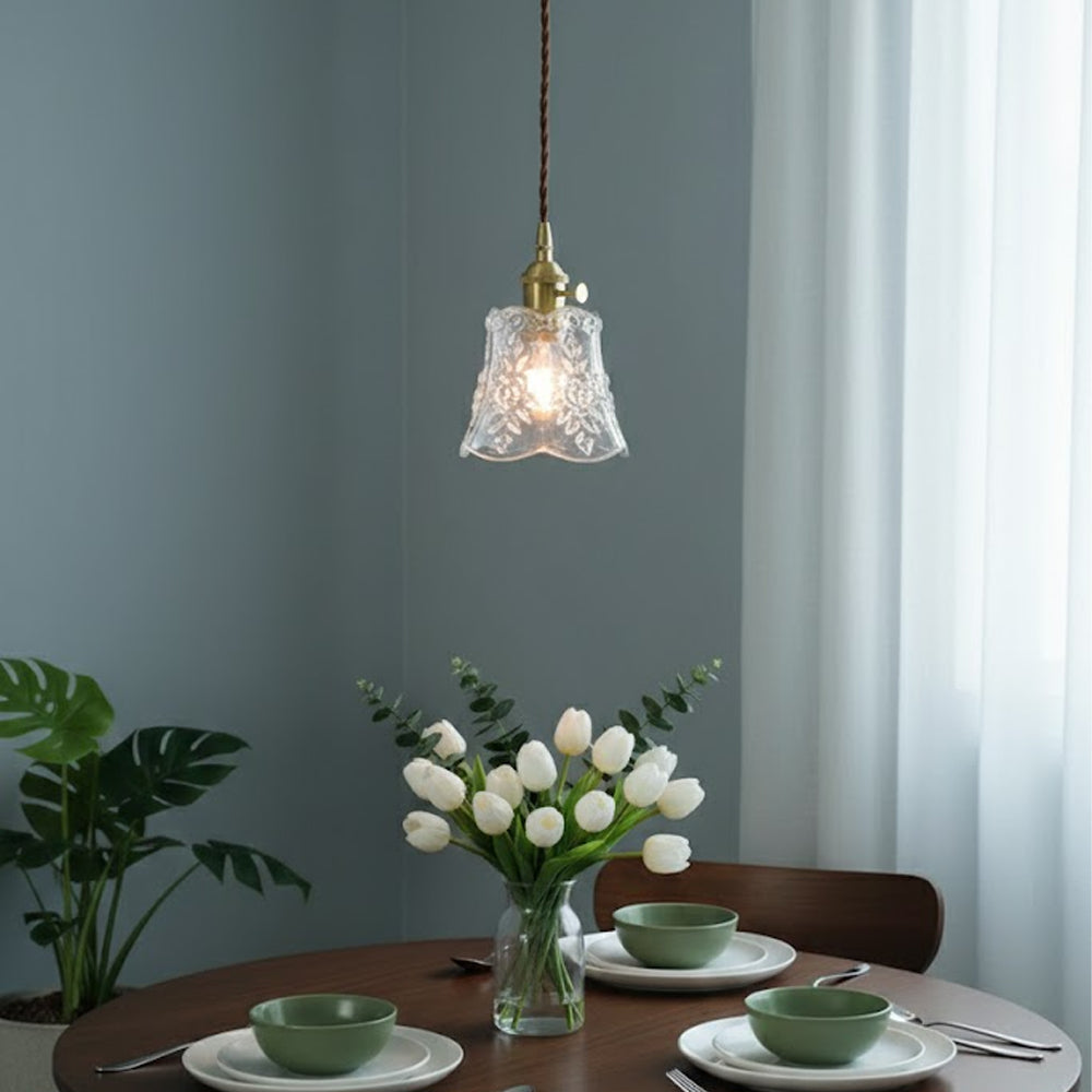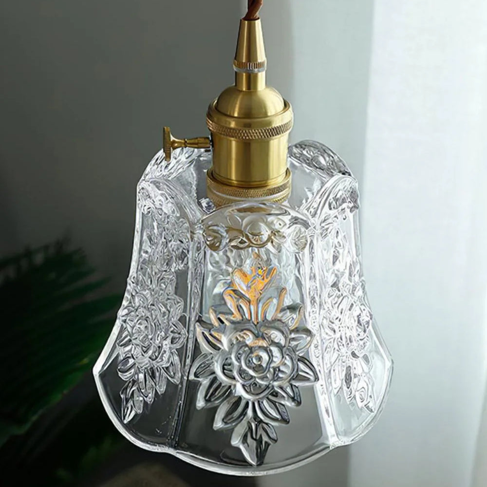 Vintage Flower Pattern Glass Pendant Lamp