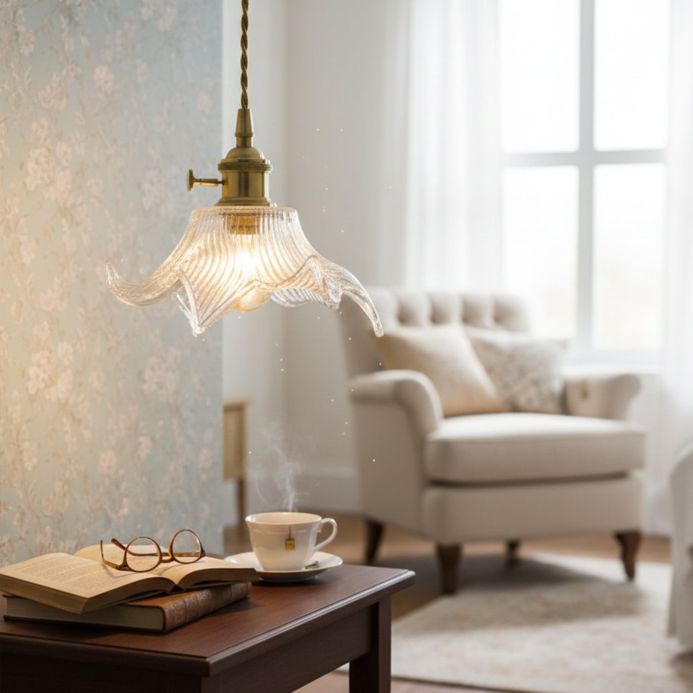 French Vintage Petal Clear Glass Pendant Light