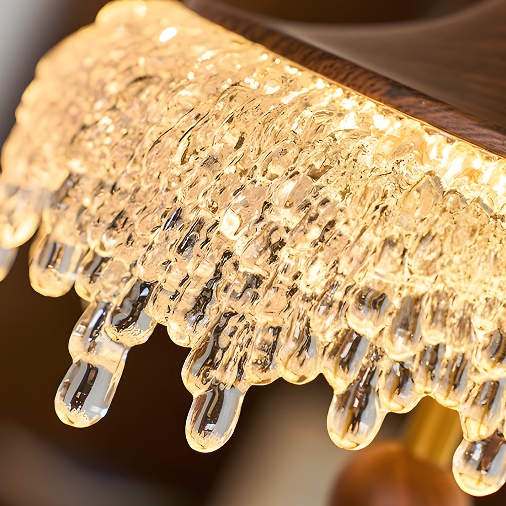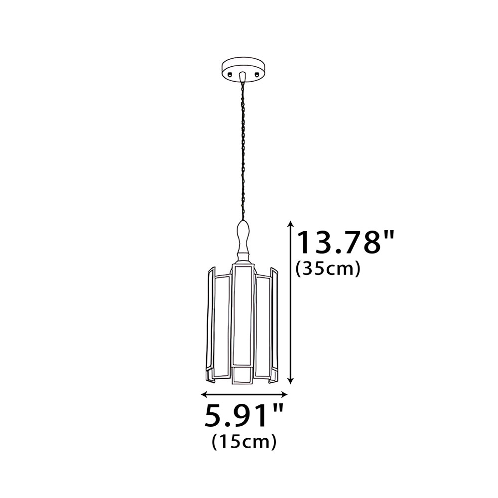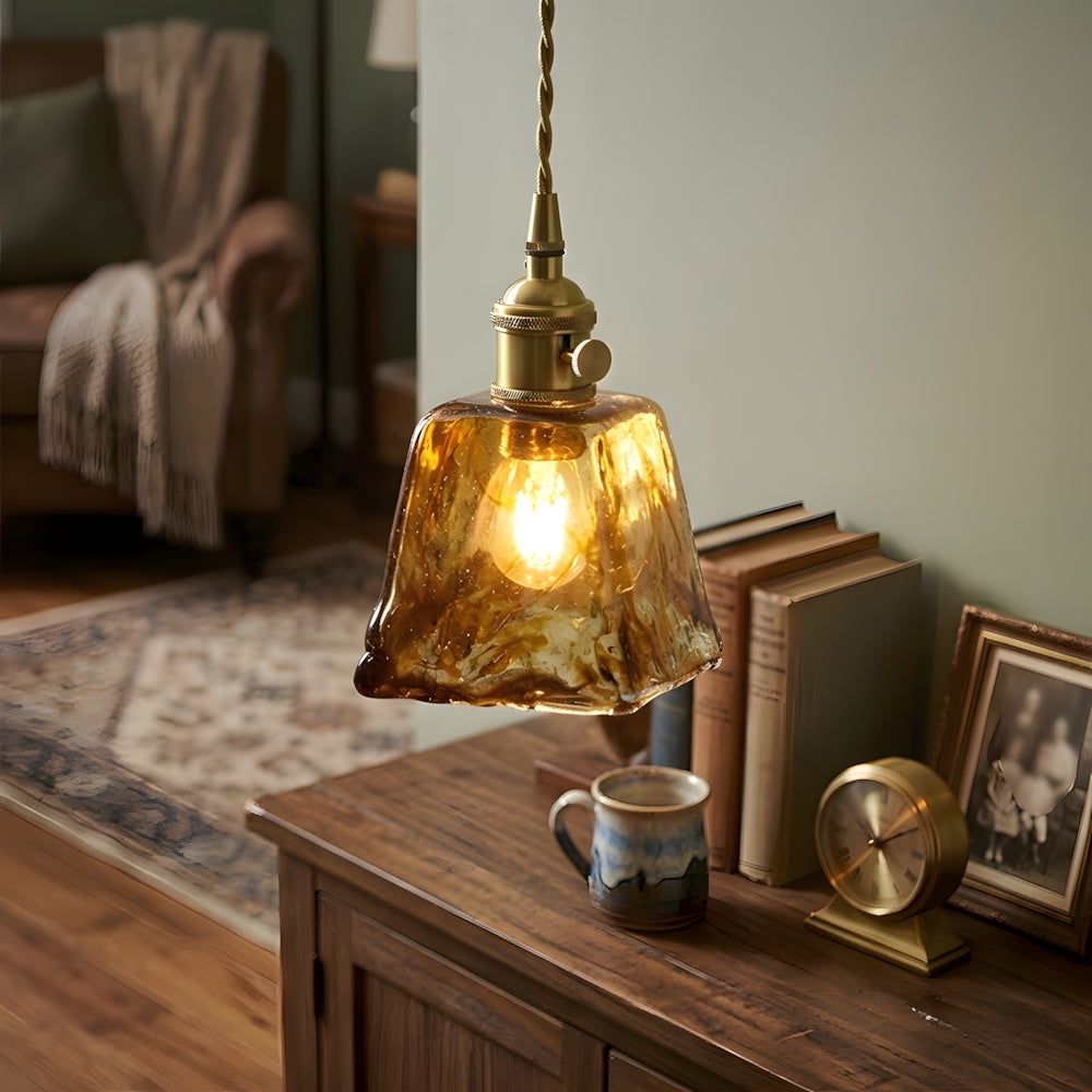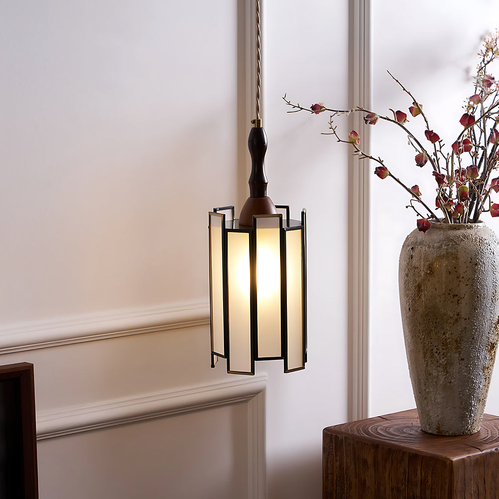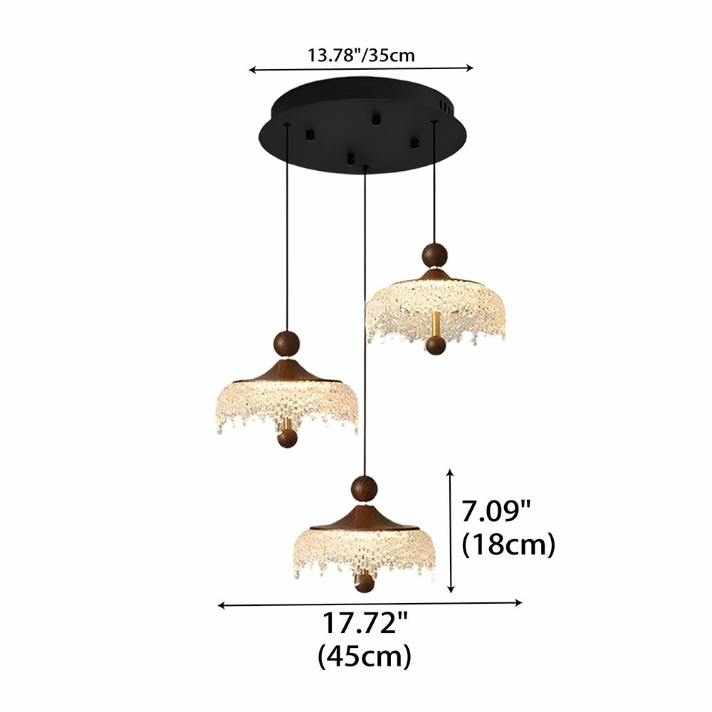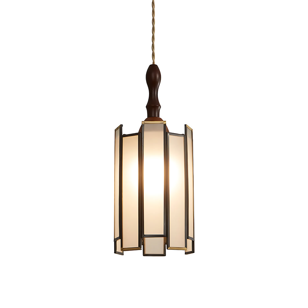 Vintage Artisan Textured Glass Walnut Handle Pendant Light