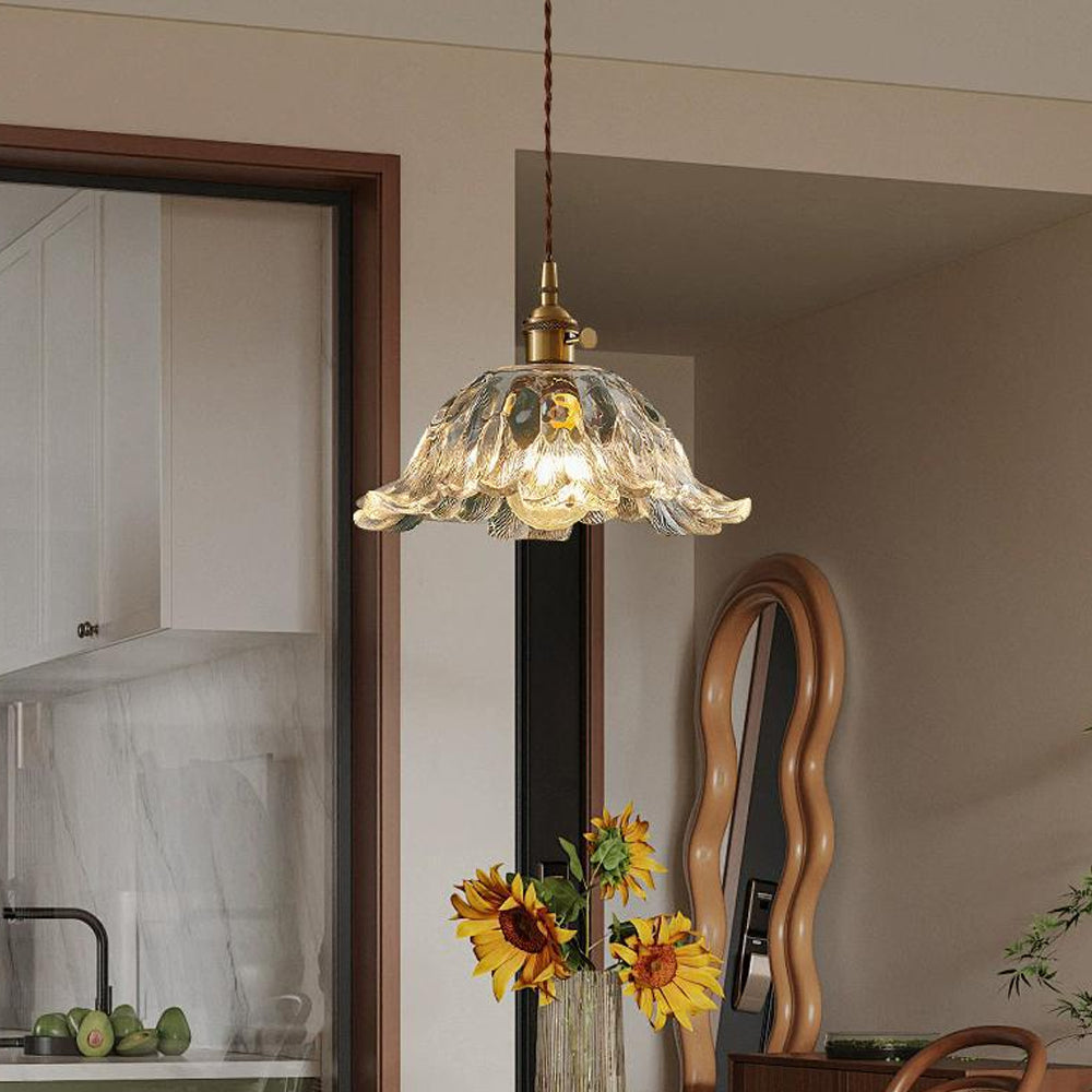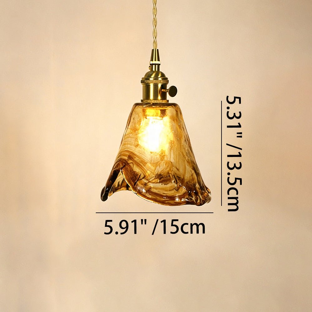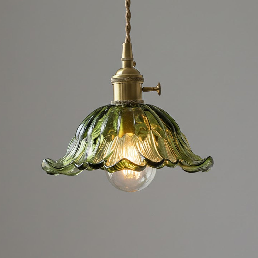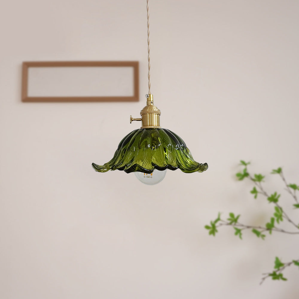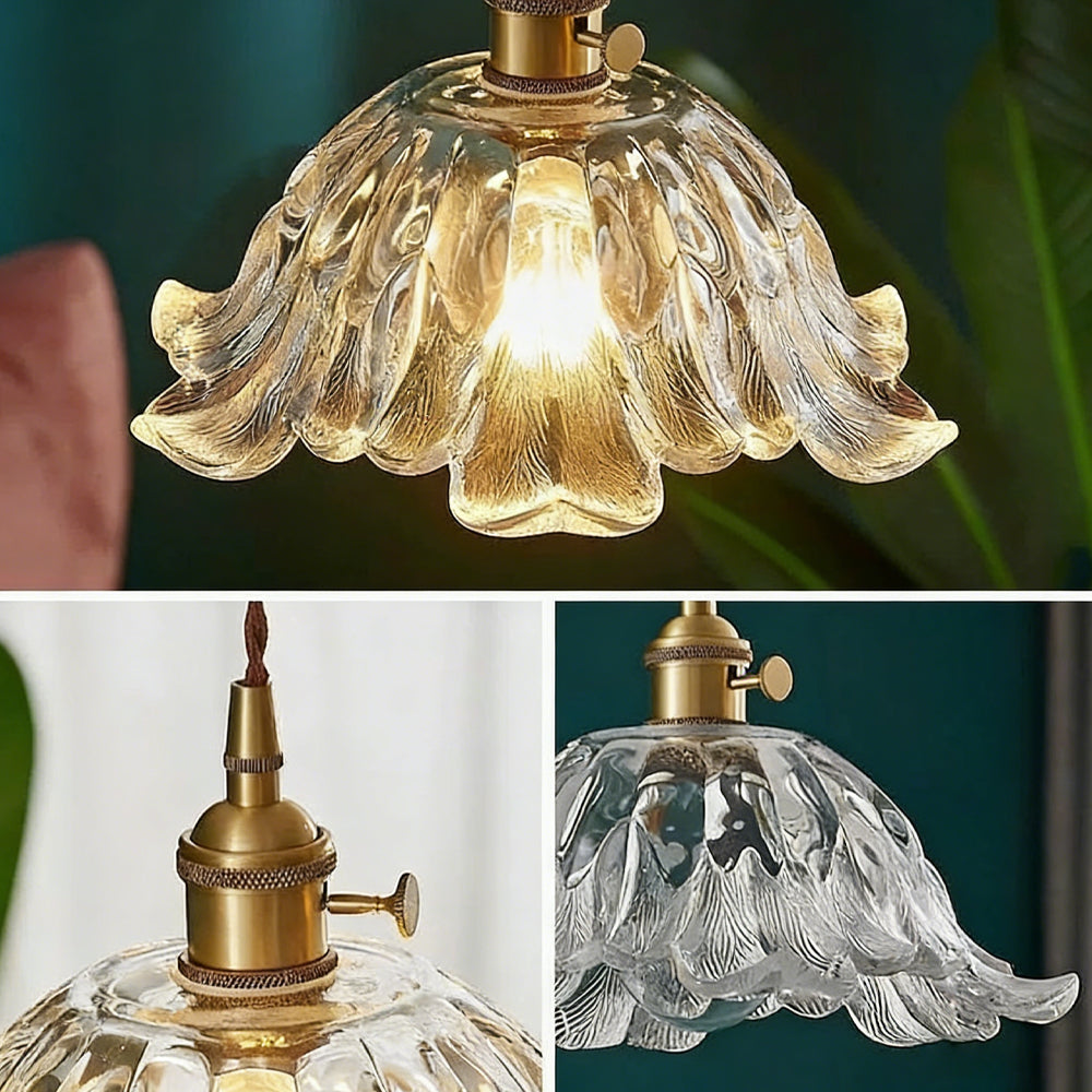 Retro Flower Petal Brass Glass Pendant Light