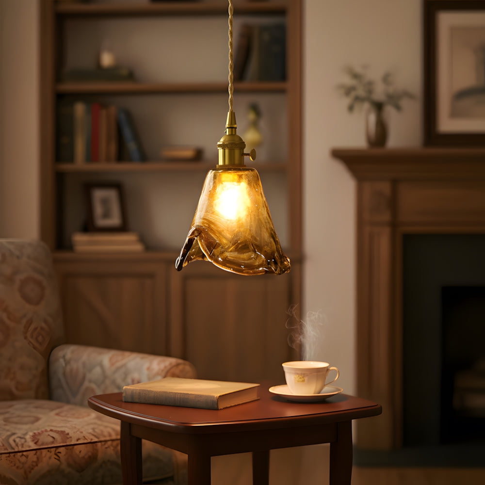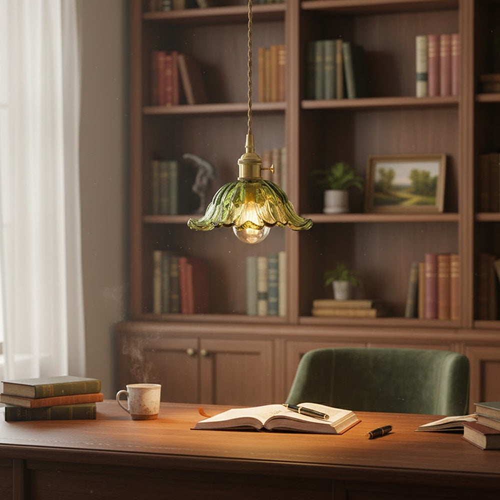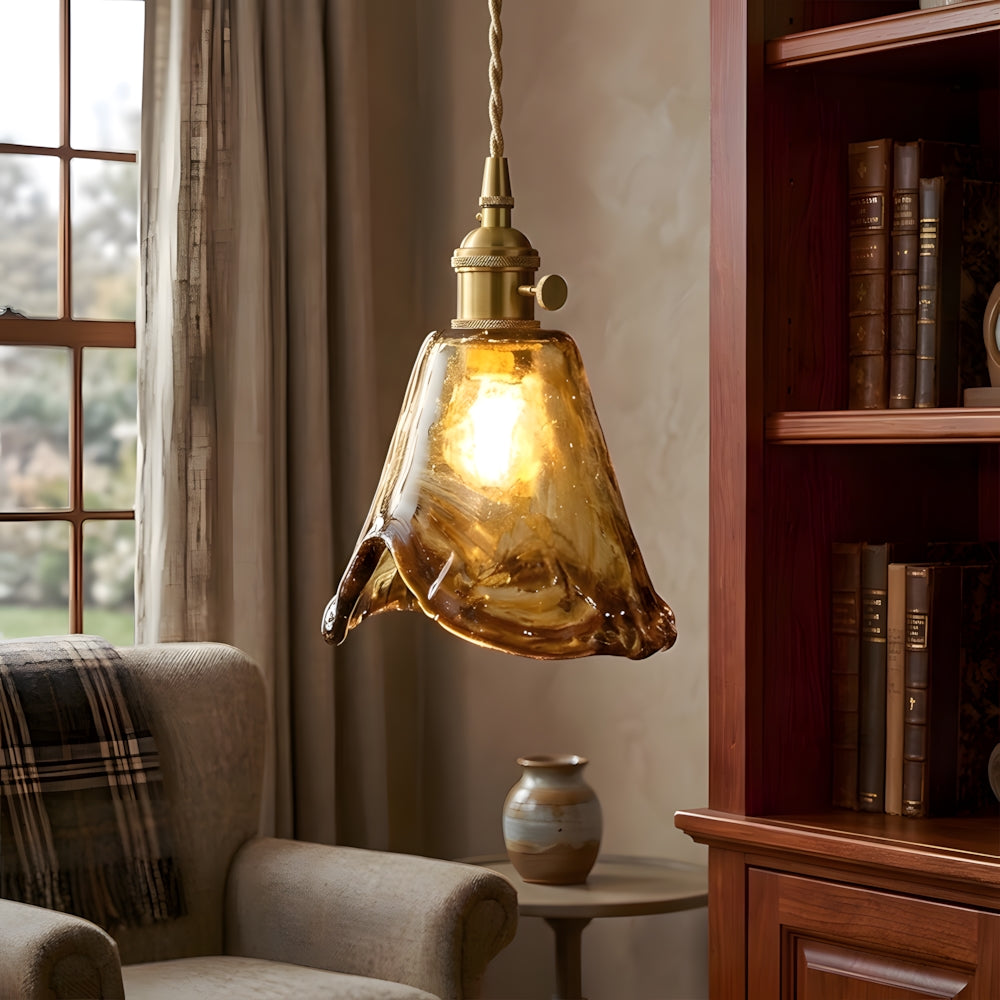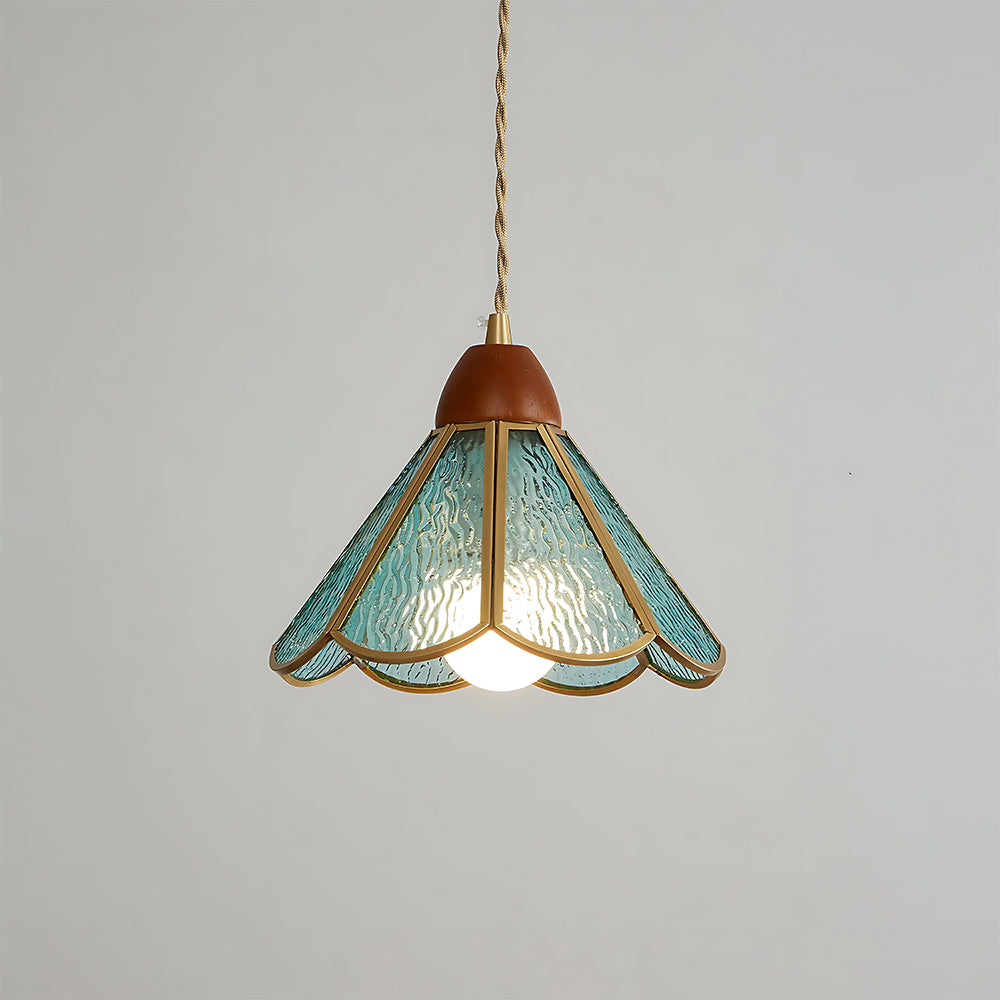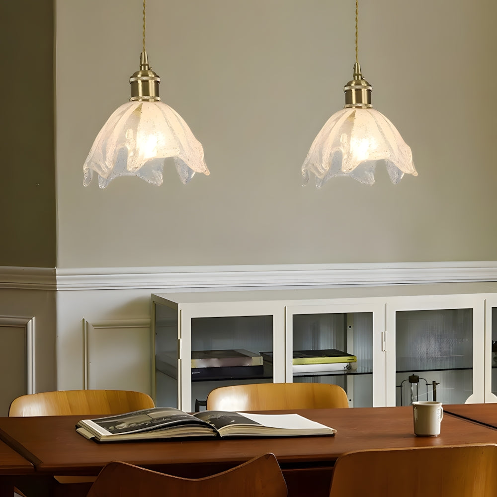 Retro Flower Petal Brass Glass Pendant Light