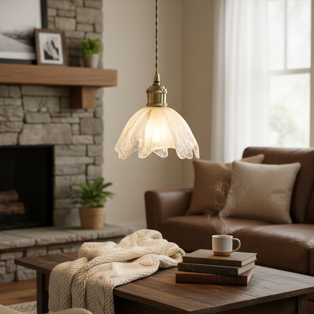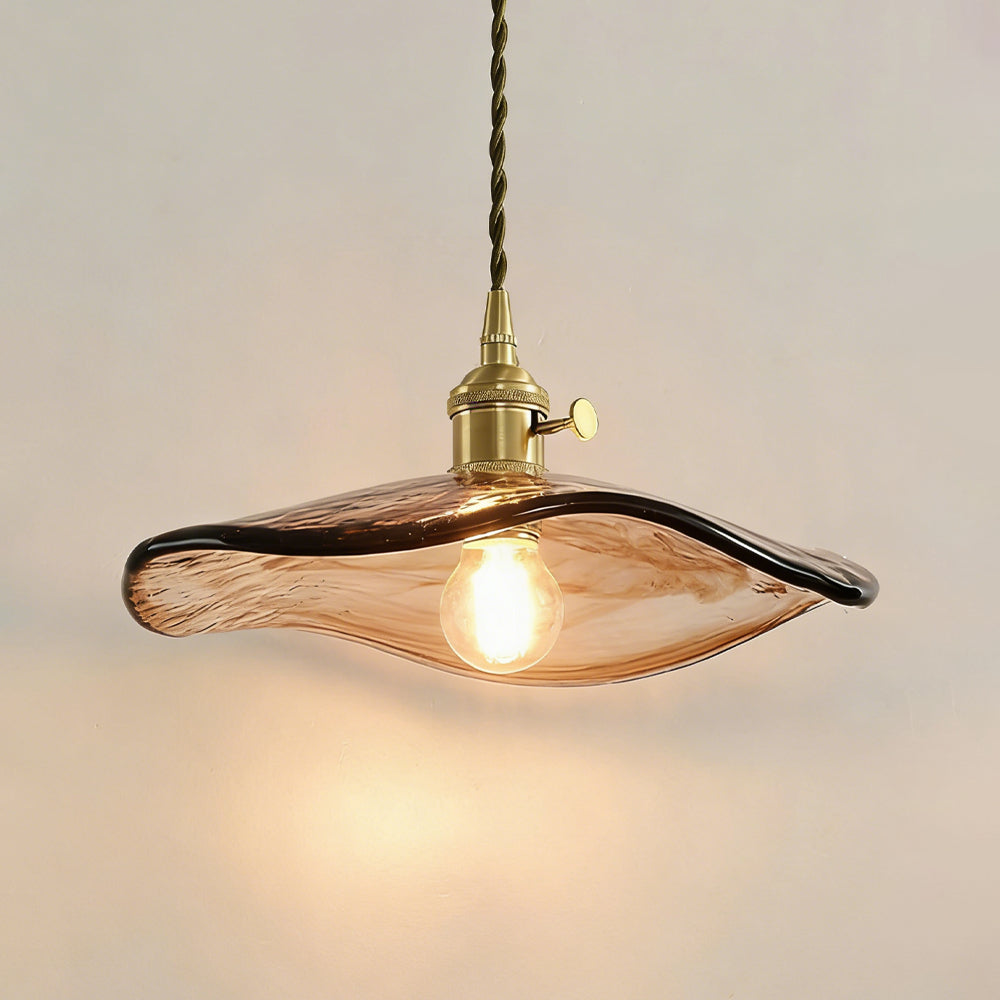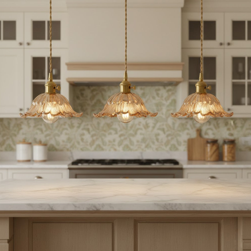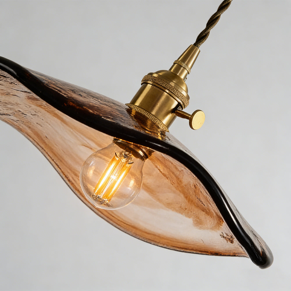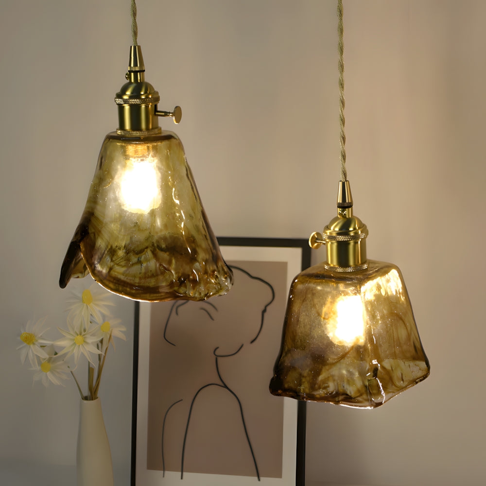 Retro Flower Petal Brass Glass Pendant Light