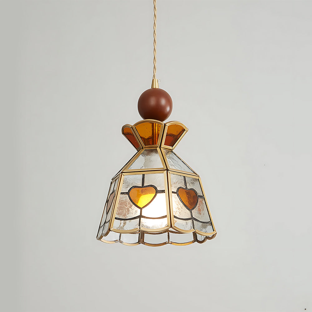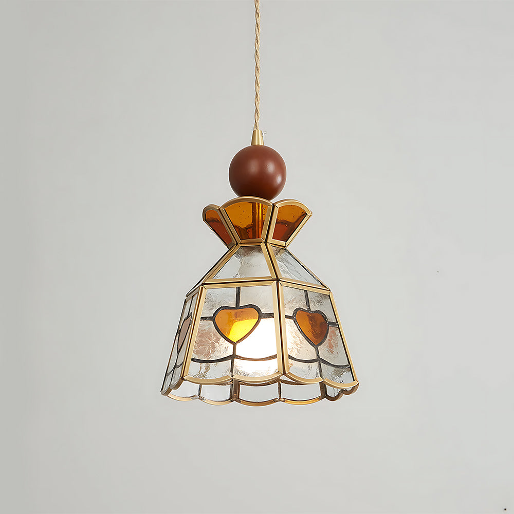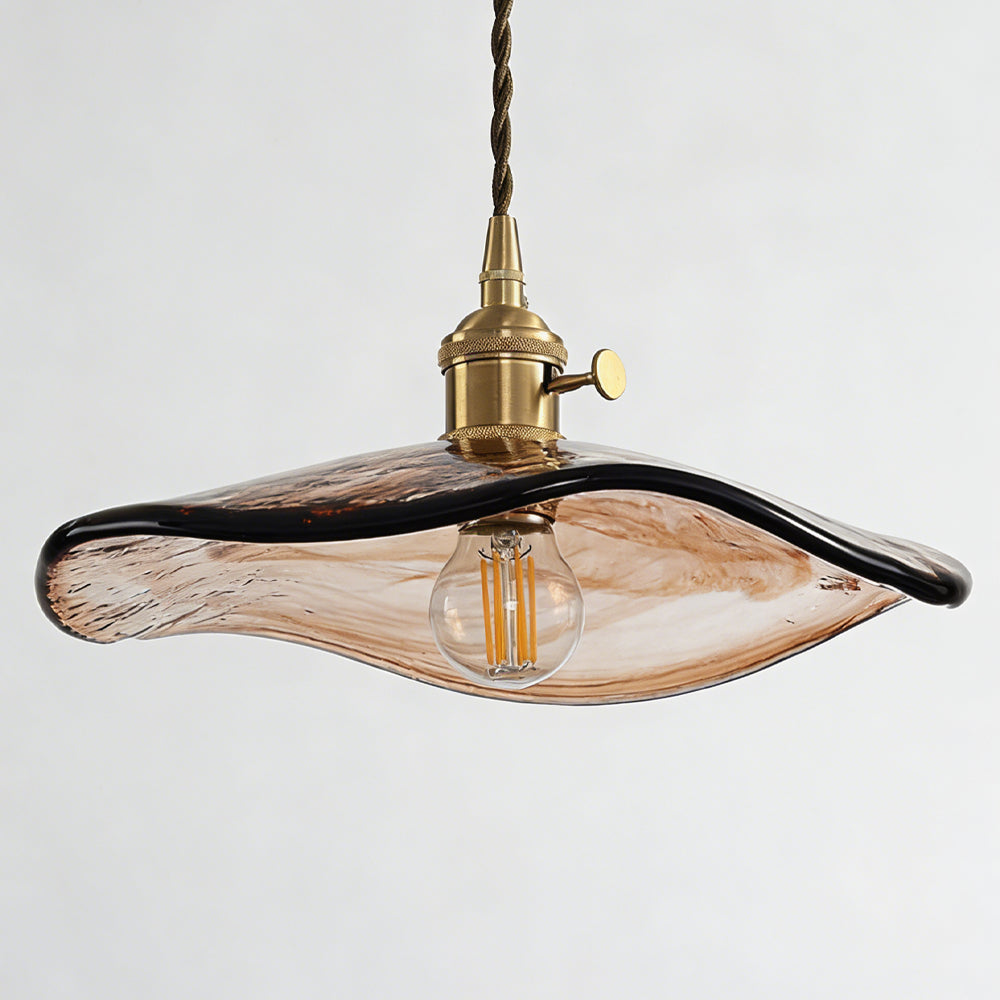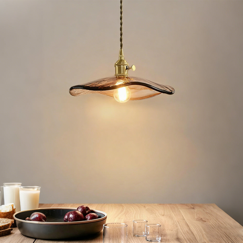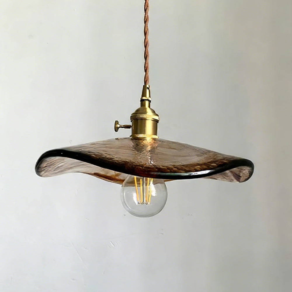 Retro Flower Petal Brass Glass Pendant Light