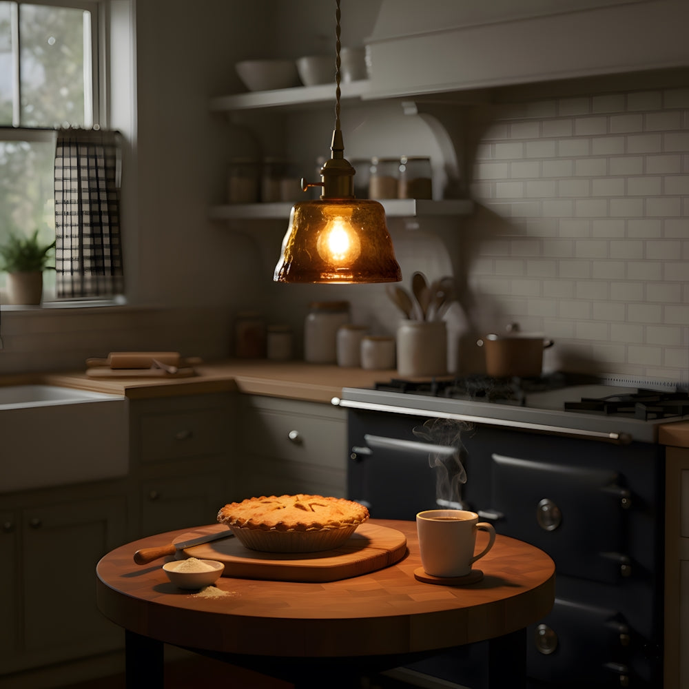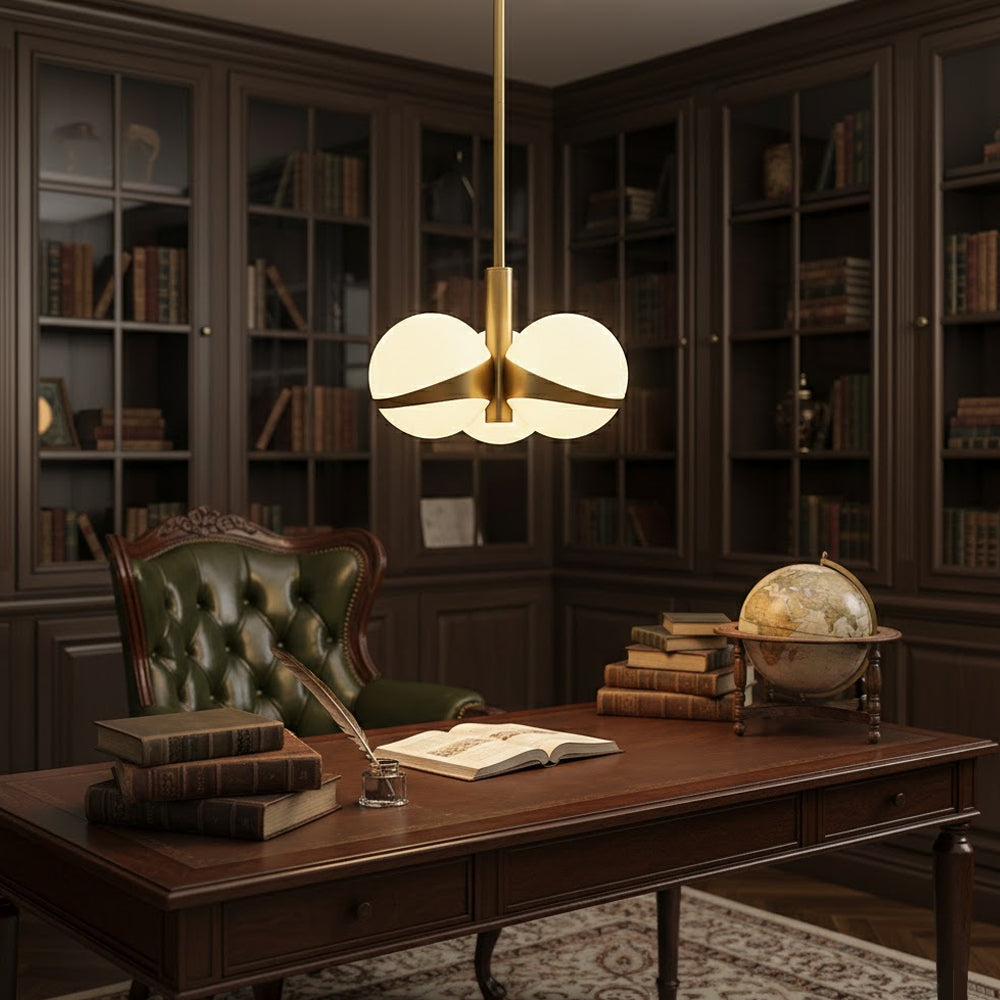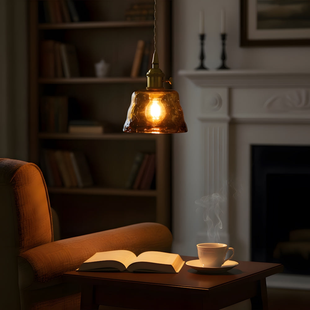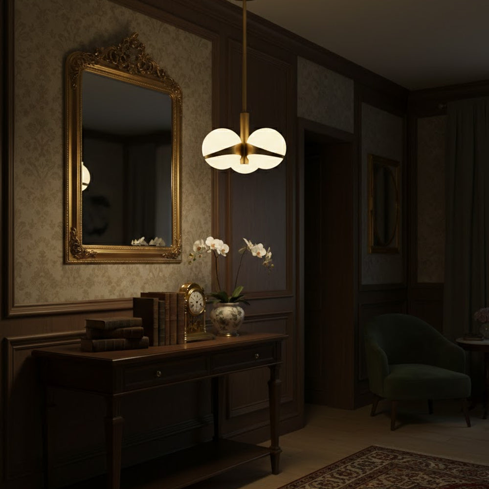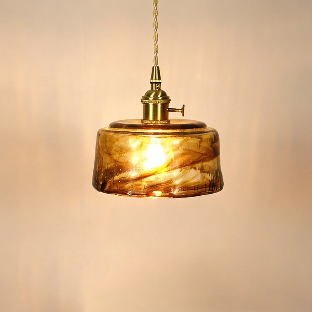 American Retro Light Luxury Round Glass Pendant Light