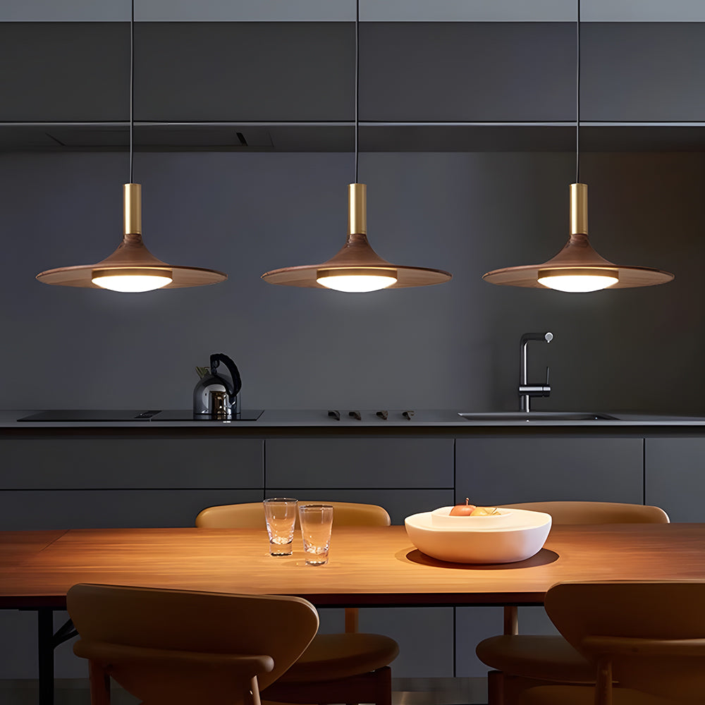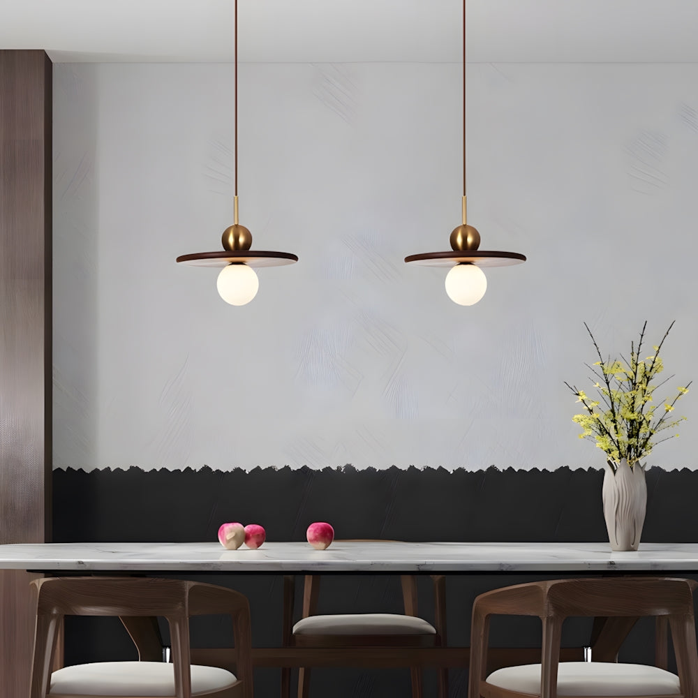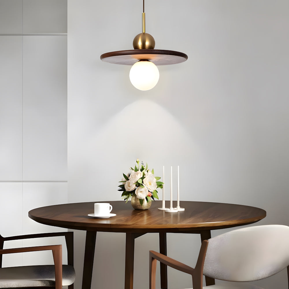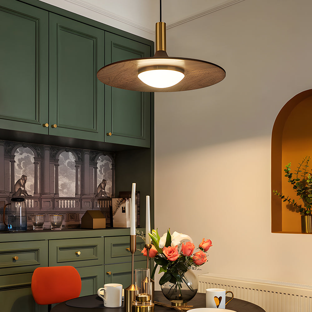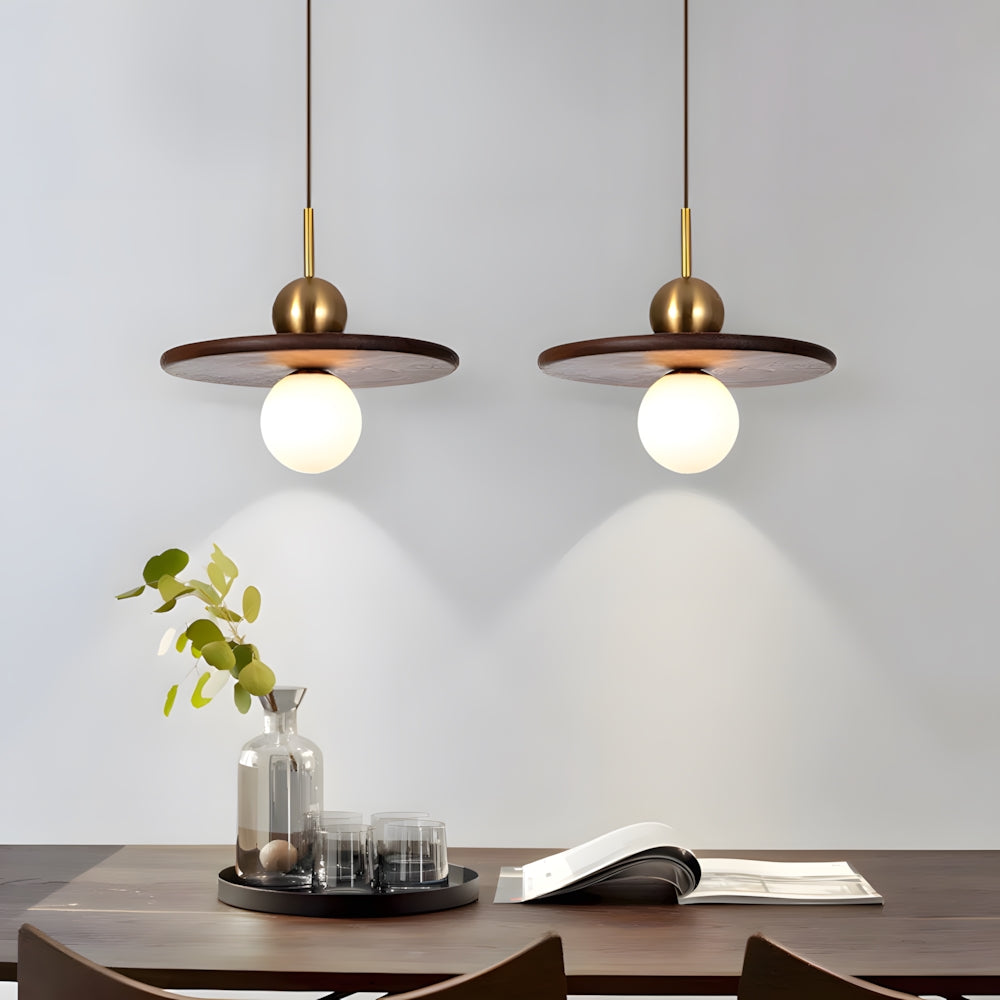 Modern Classic Disc Walnut Pendant Light