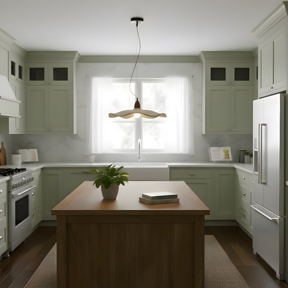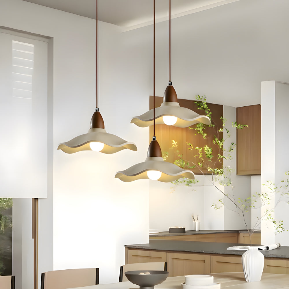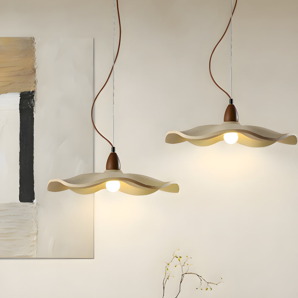 Japanese Wabi Sabi Wooden Leaf Shaped Pendant Light