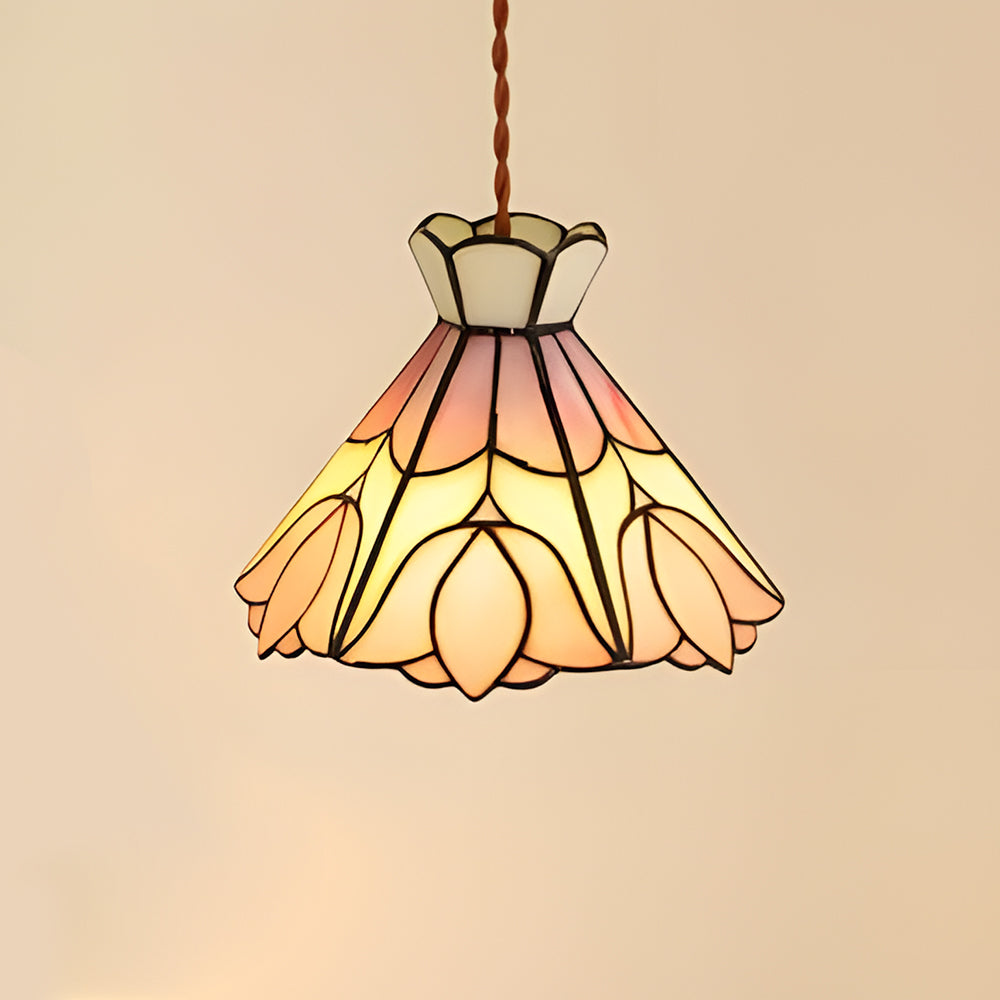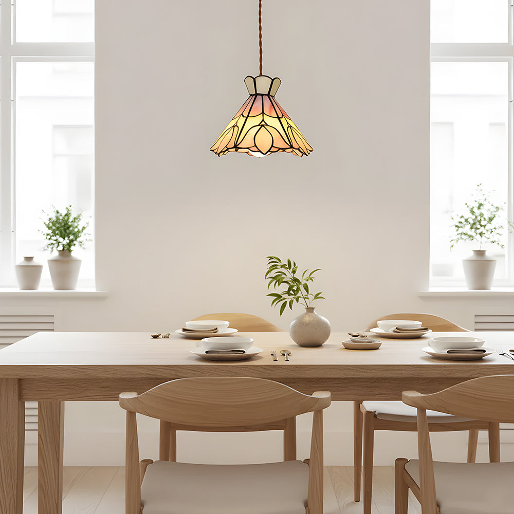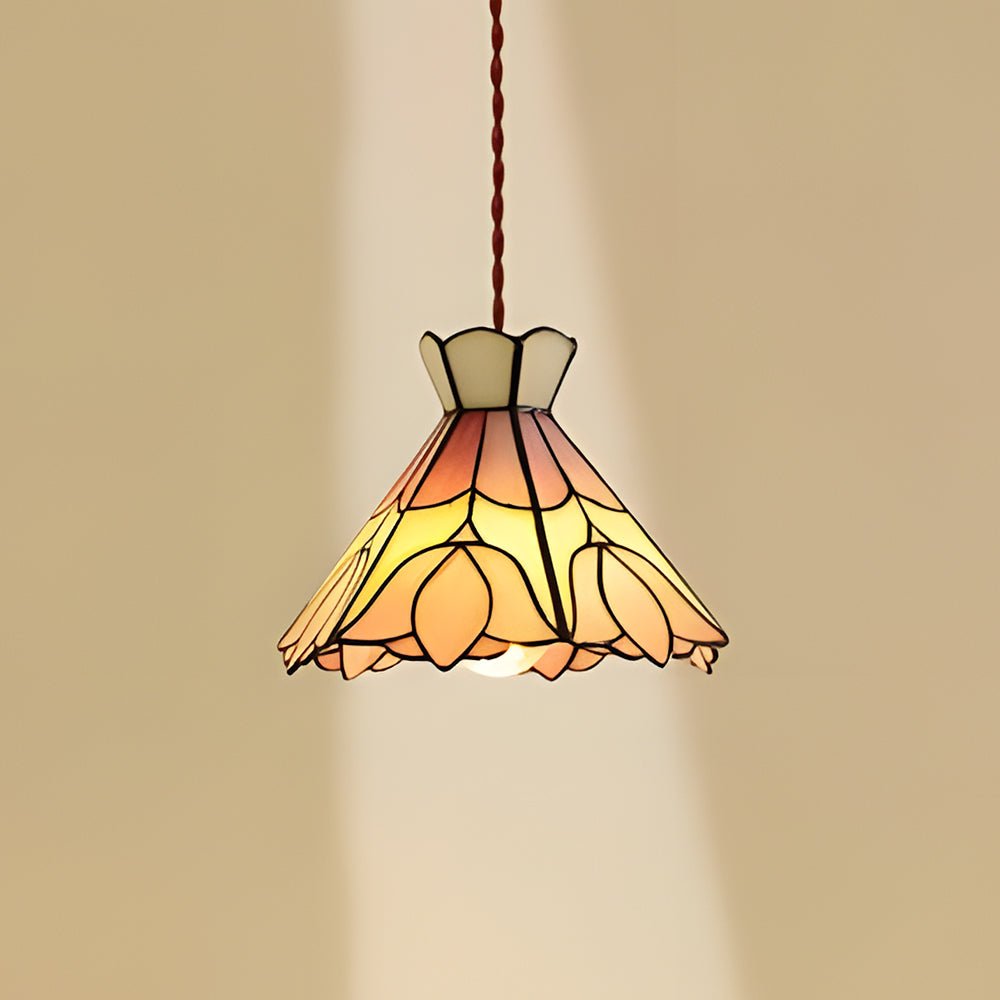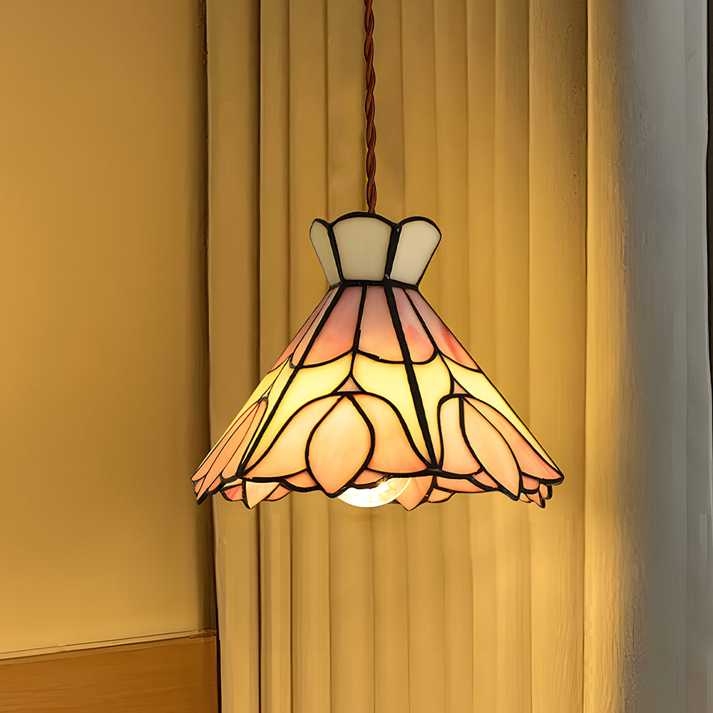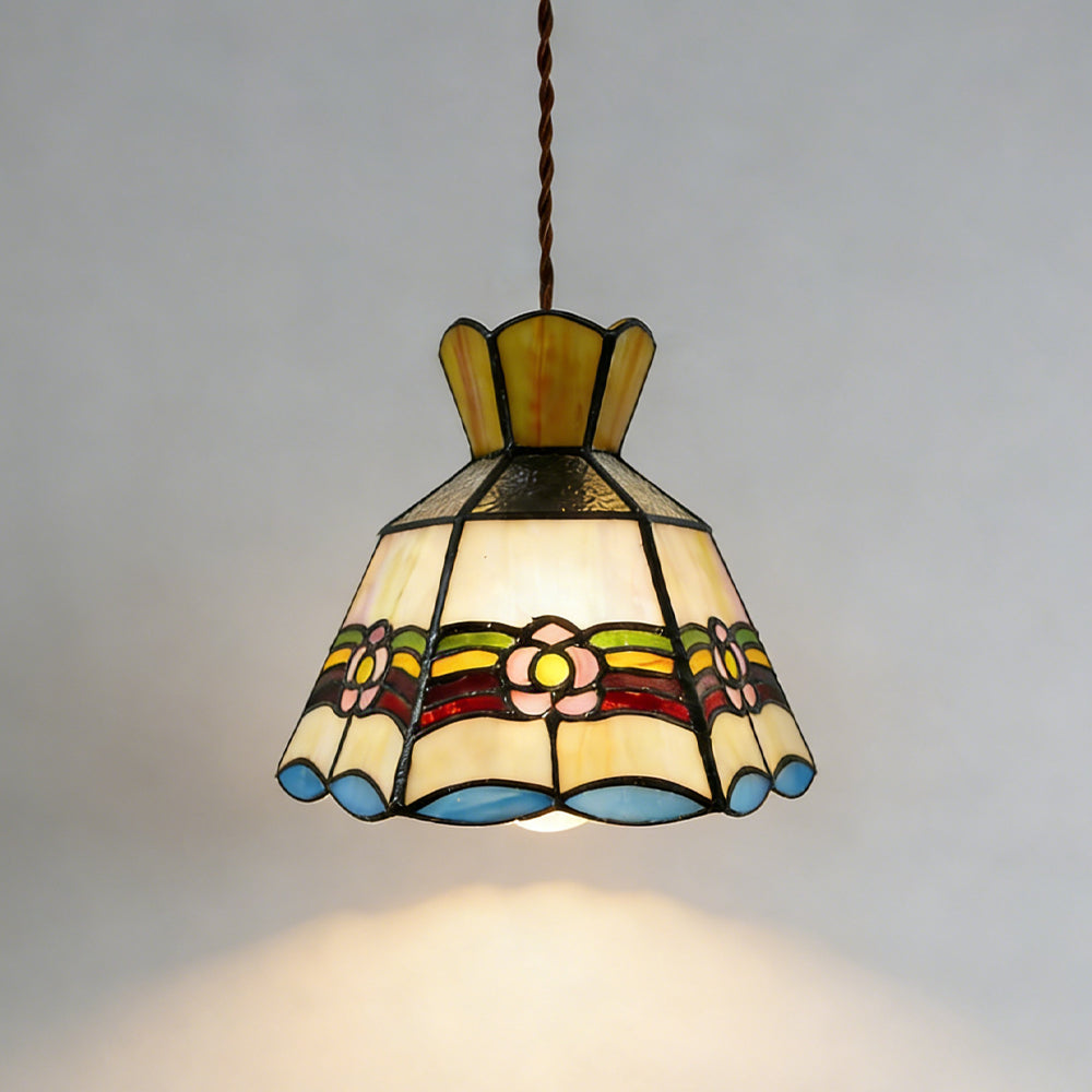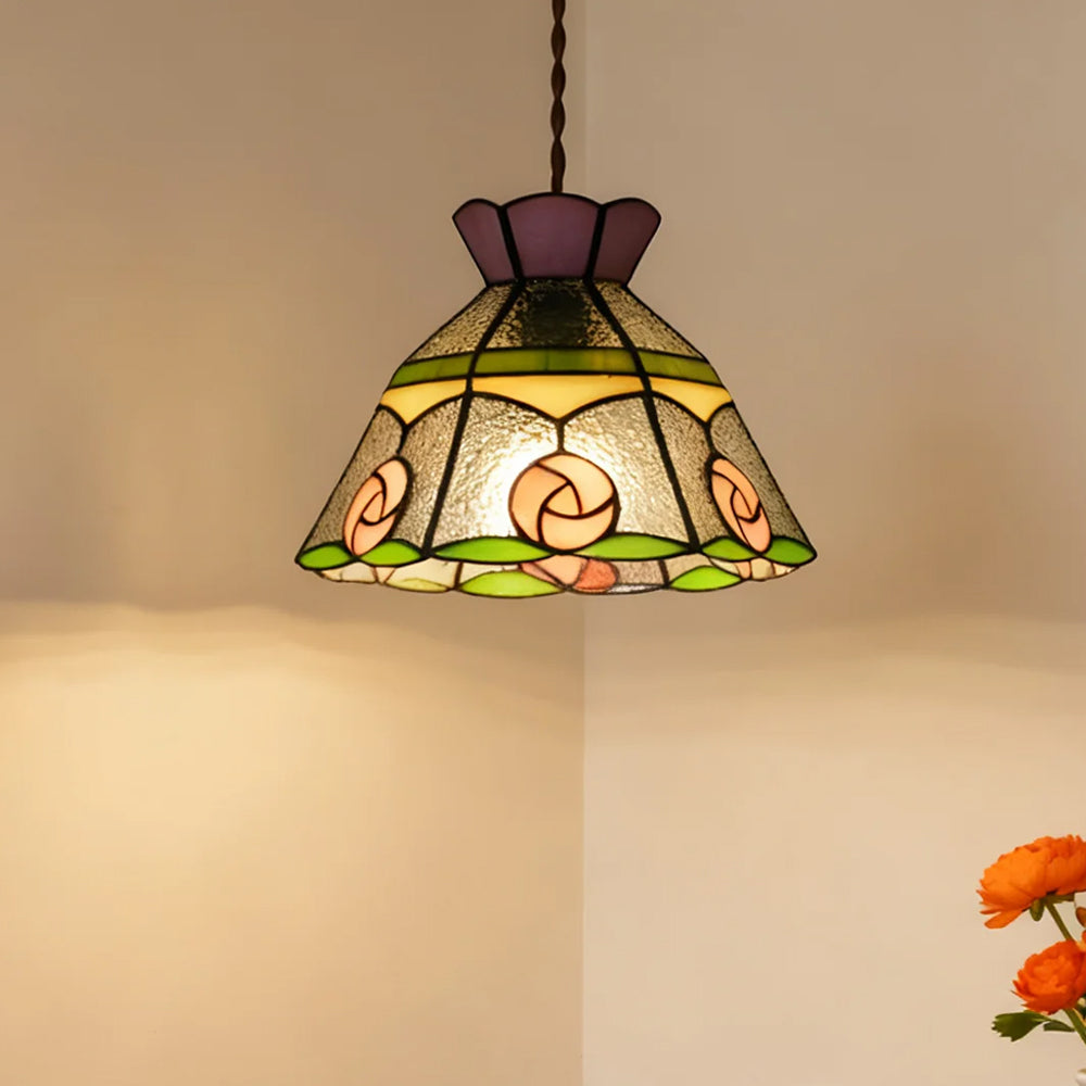French Retro Handmade Tiffany Stained Glass Pendant Light