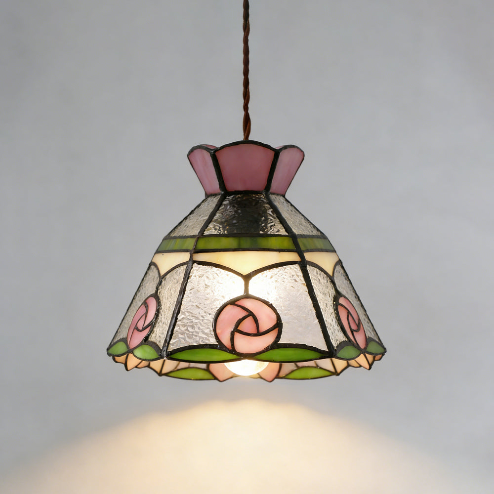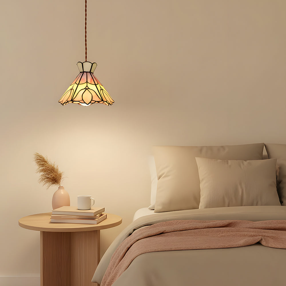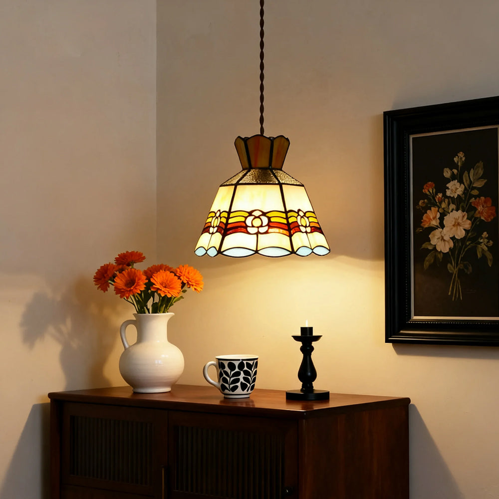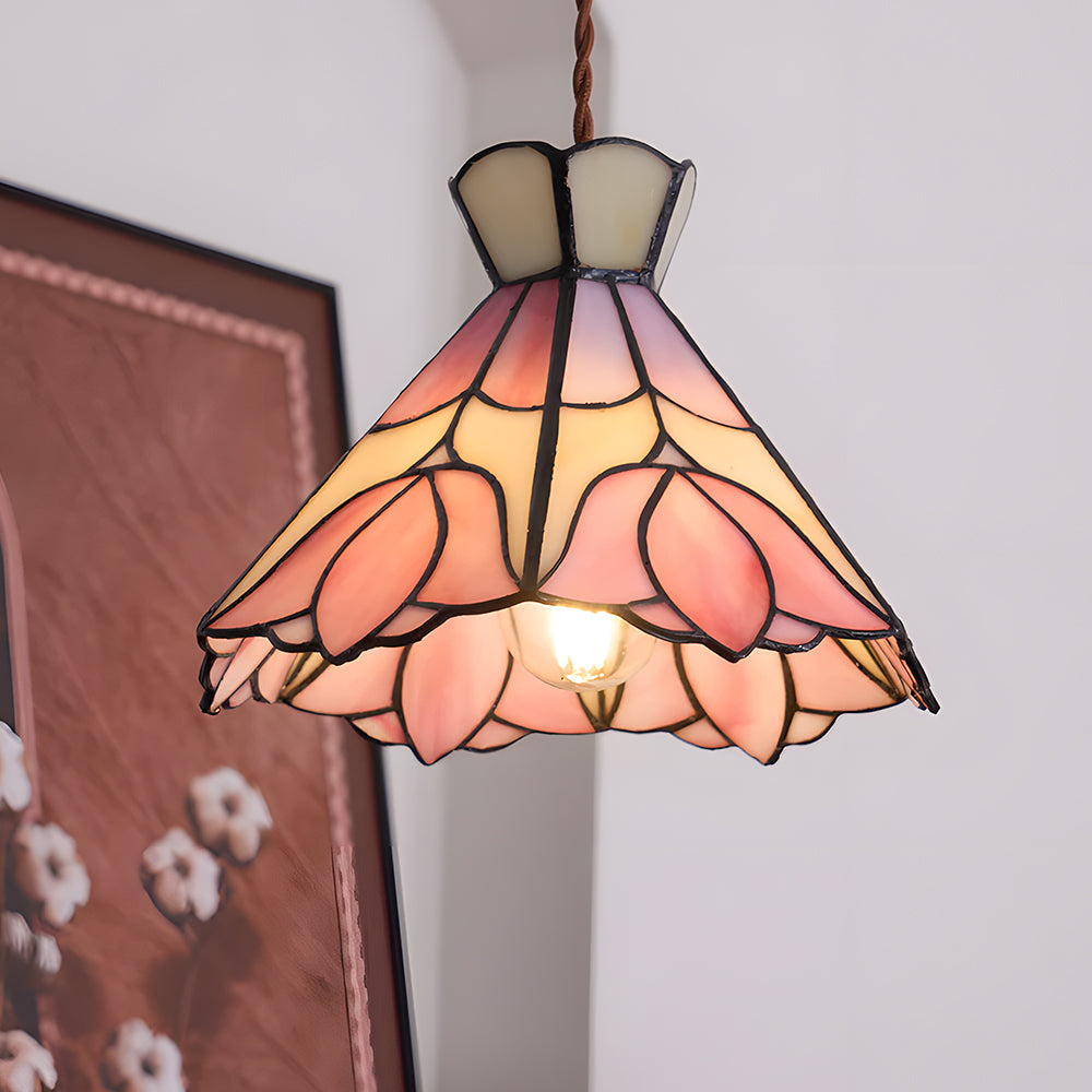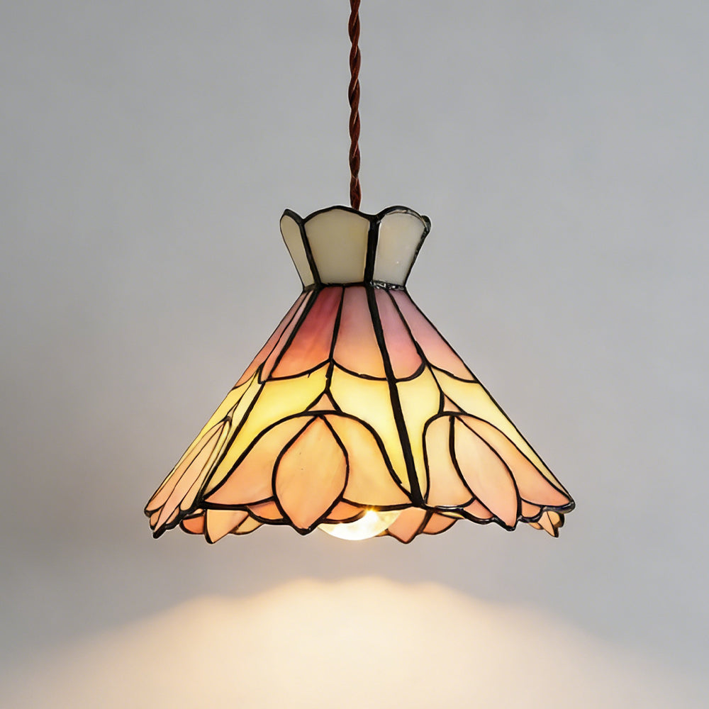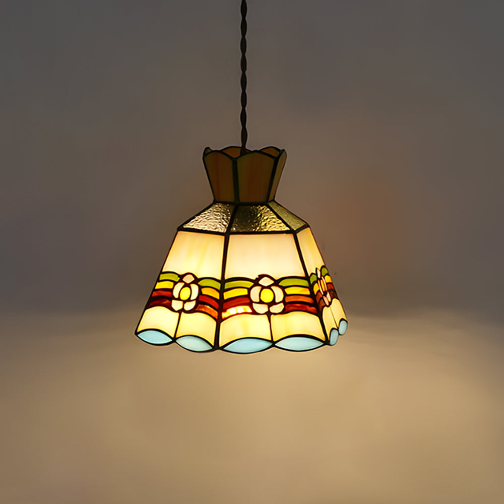 French Retro Handmade Tiffany Stained Glass Pendant Light