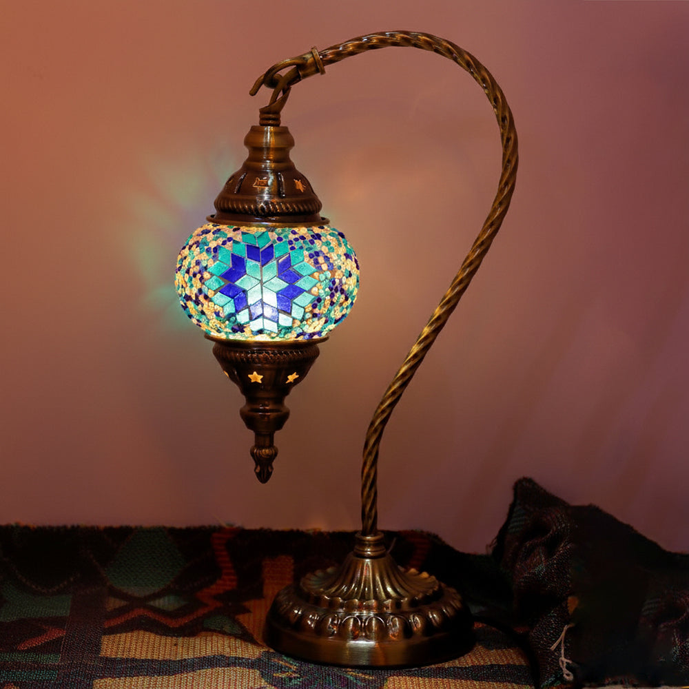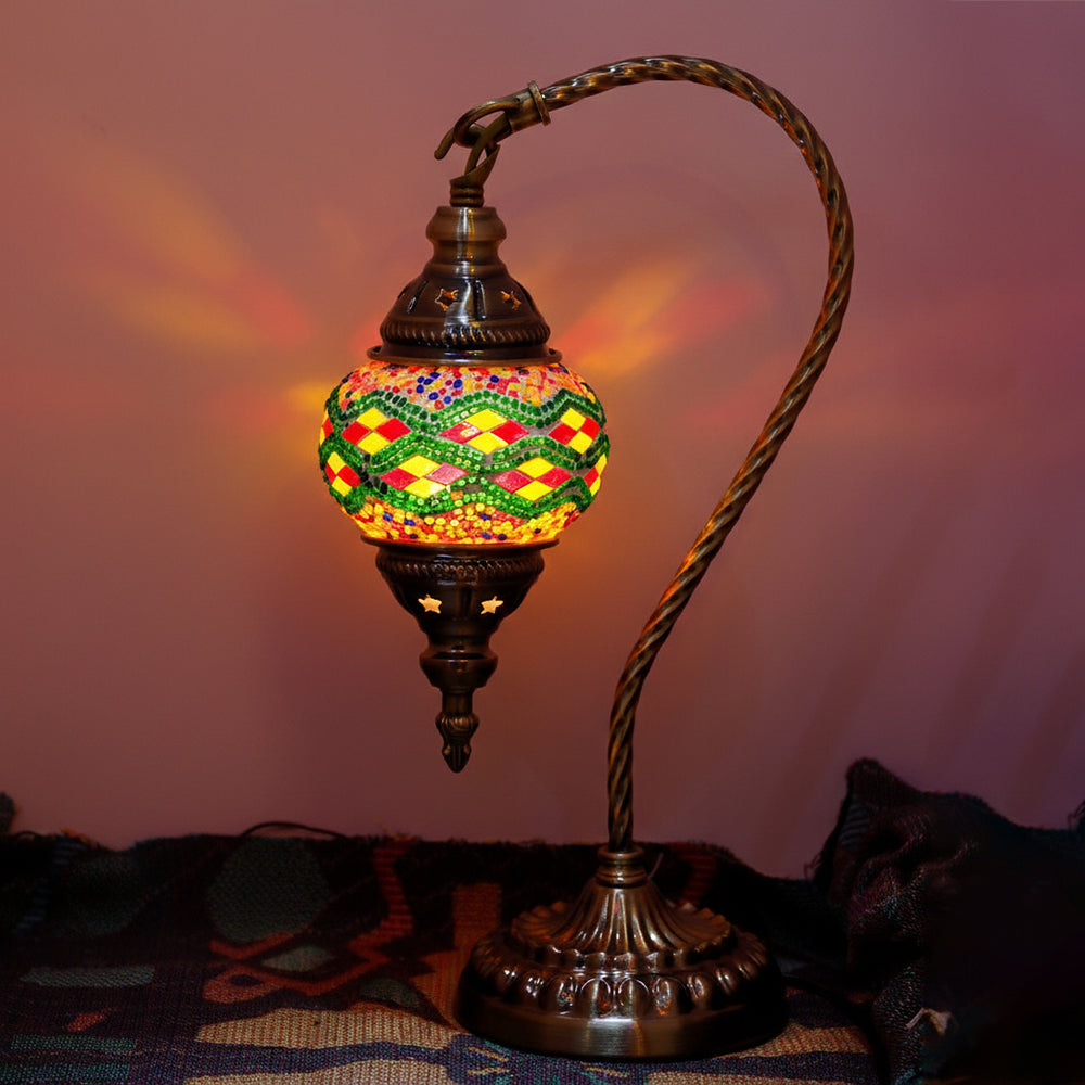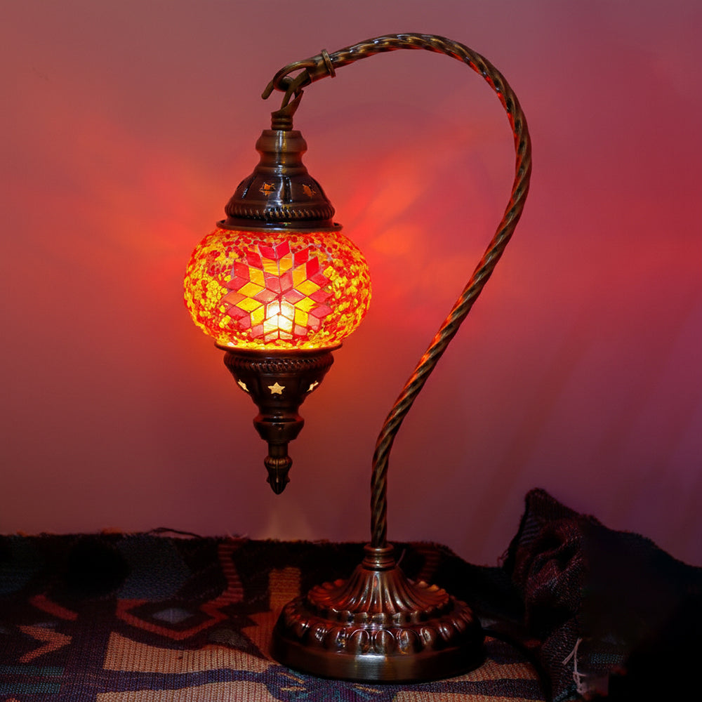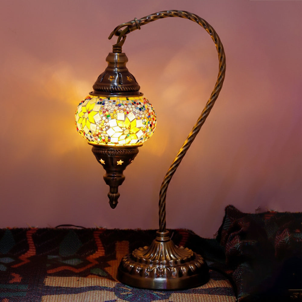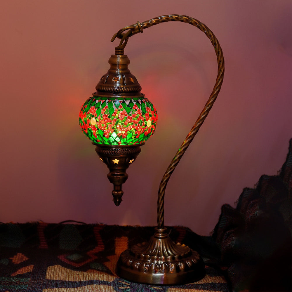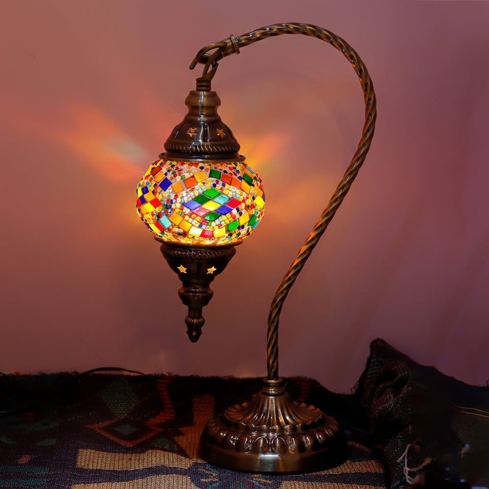 Elevate your decor with this handmade Retro Tiffany Swan Lamp. Crafted with thick inlaid glass, vibrant beads, and ornate iron filigree, this mosaic masterpiece surpasses its photos in beauty. A stunning blend of vintage artistry and quality materials, perfect for adding a timeless, warm glow to any room.