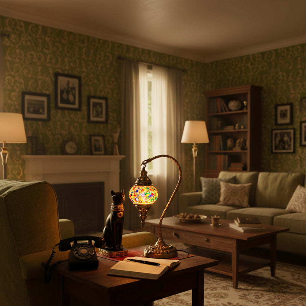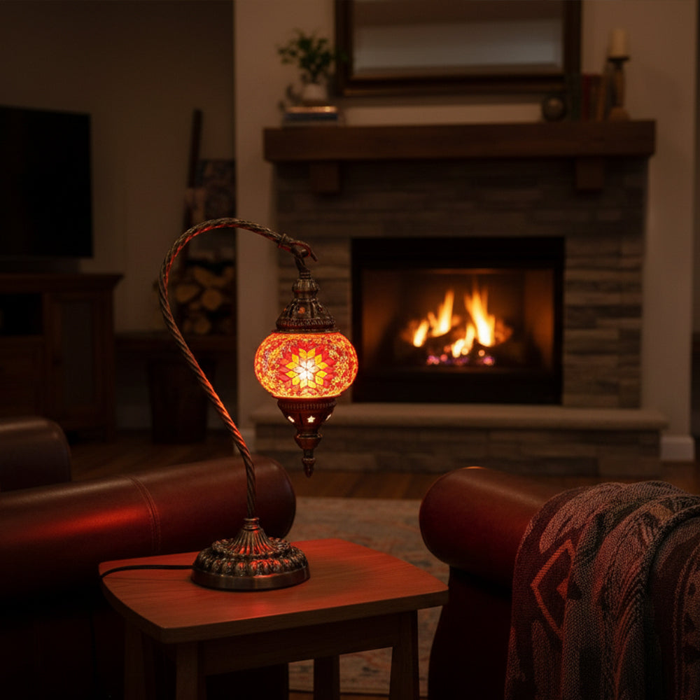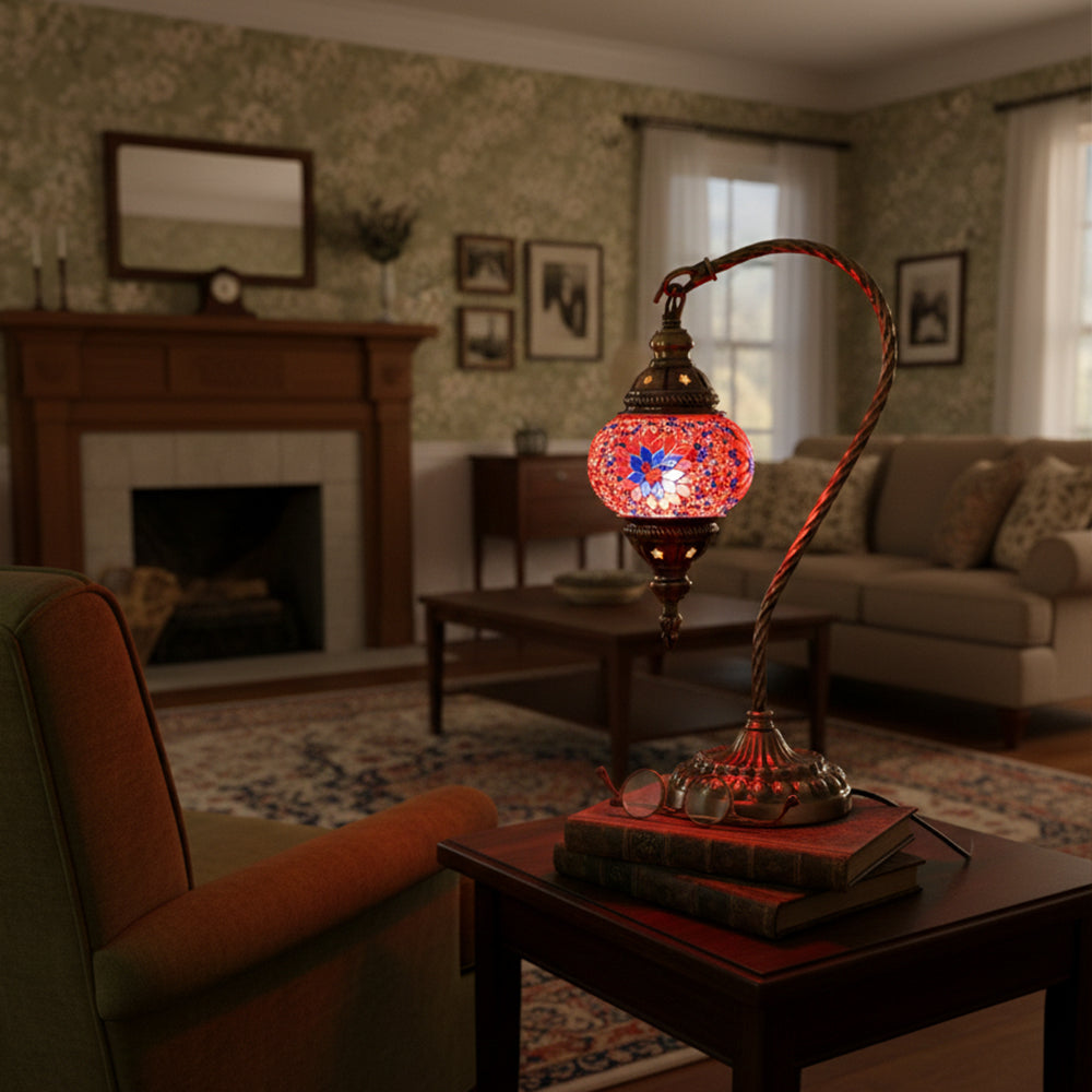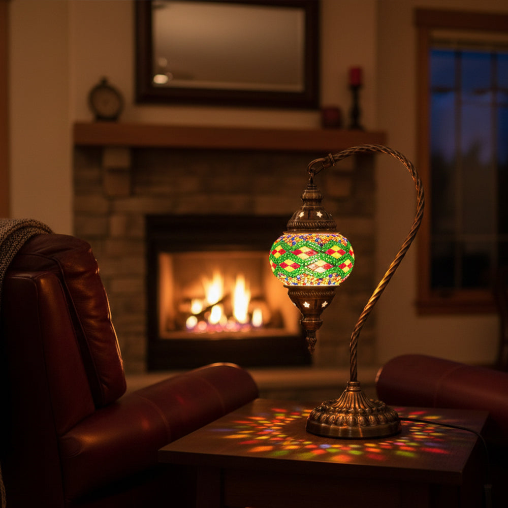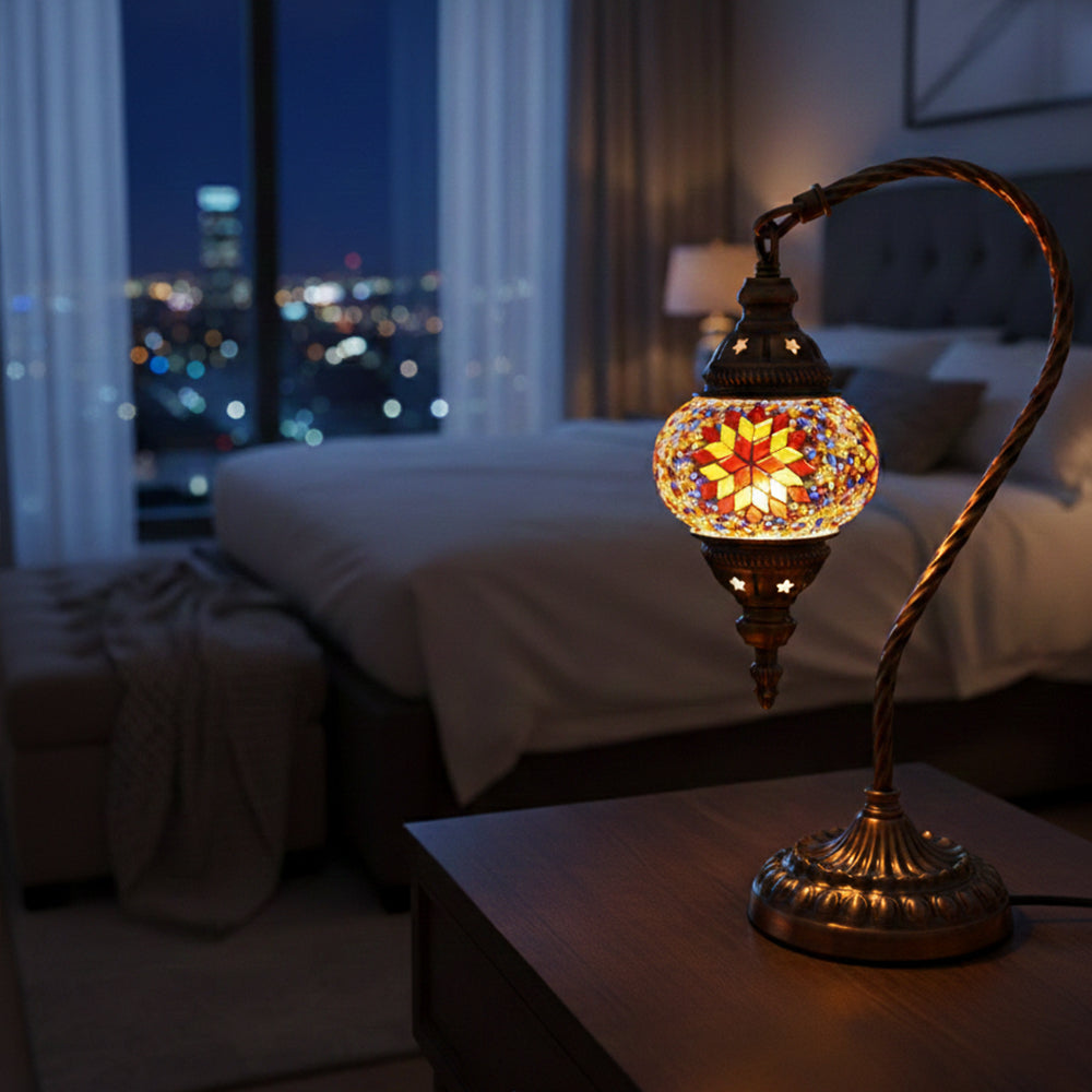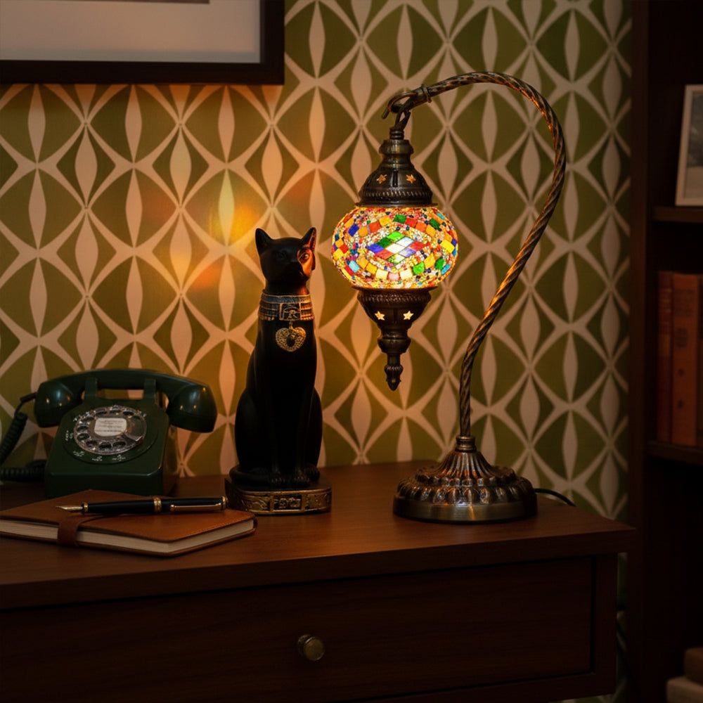 Elevate your decor with this handmade Retro Tiffany Swan Lamp. Crafted with thick inlaid glass, vibrant beads, and ornate iron filigree, this mosaic masterpiece surpasses its photos in beauty. A stunning blend of vintage artistry and quality materials, perfect for adding a timeless, warm glow to any room.