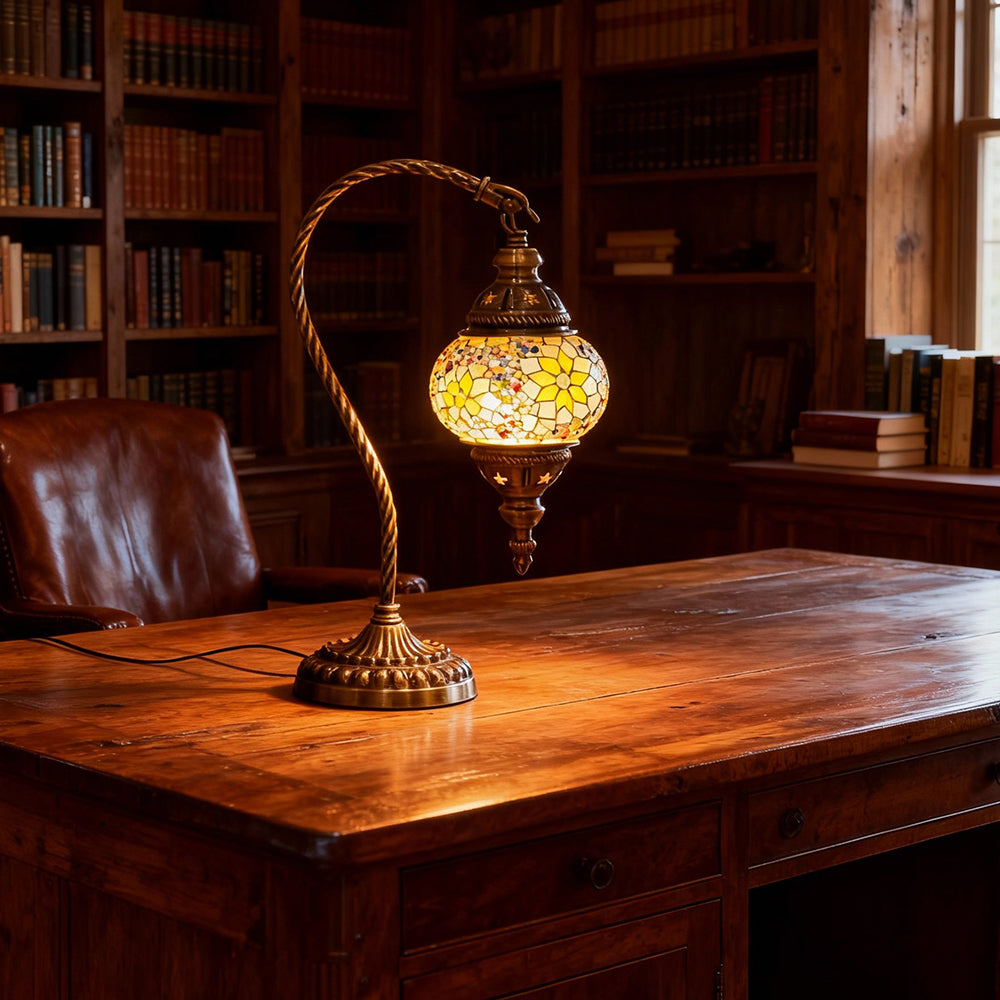 Retro Tiffany Mosaic Swan Glass Table Lamp