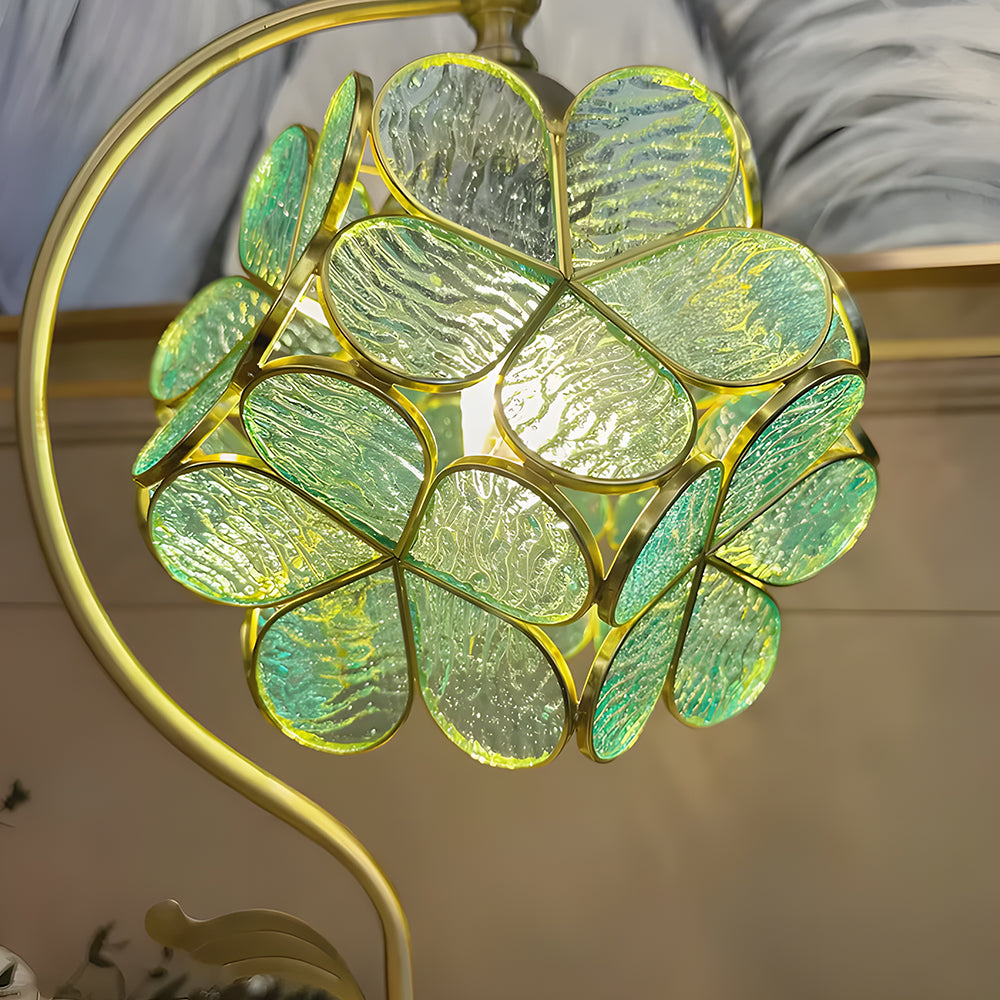 Romantic European Tiffany Petal Glass & Copper Table Lamp