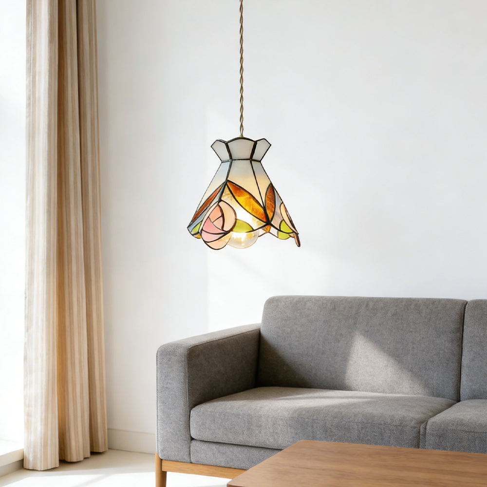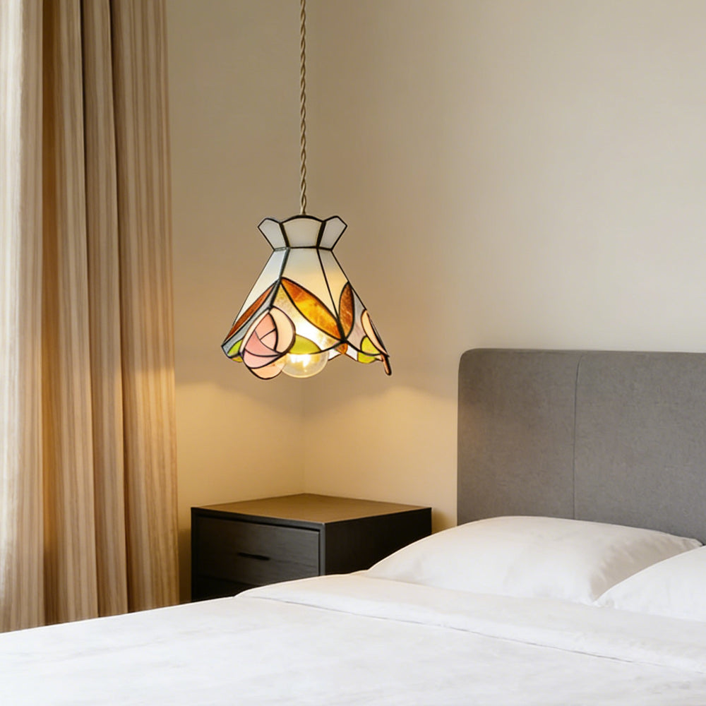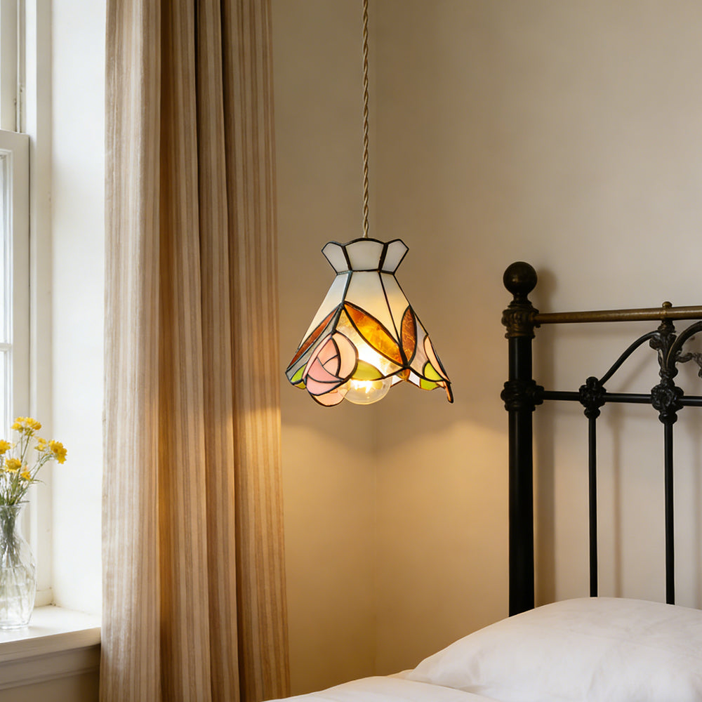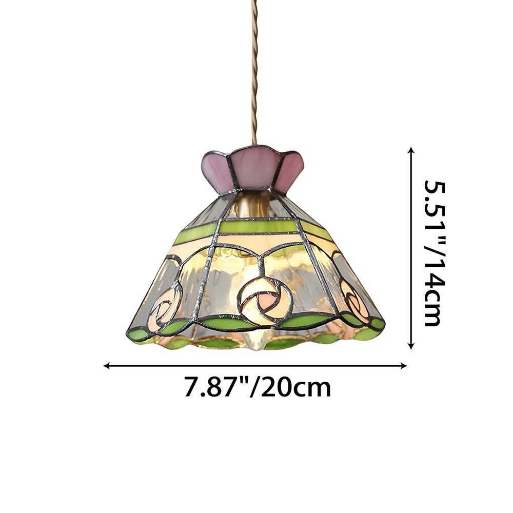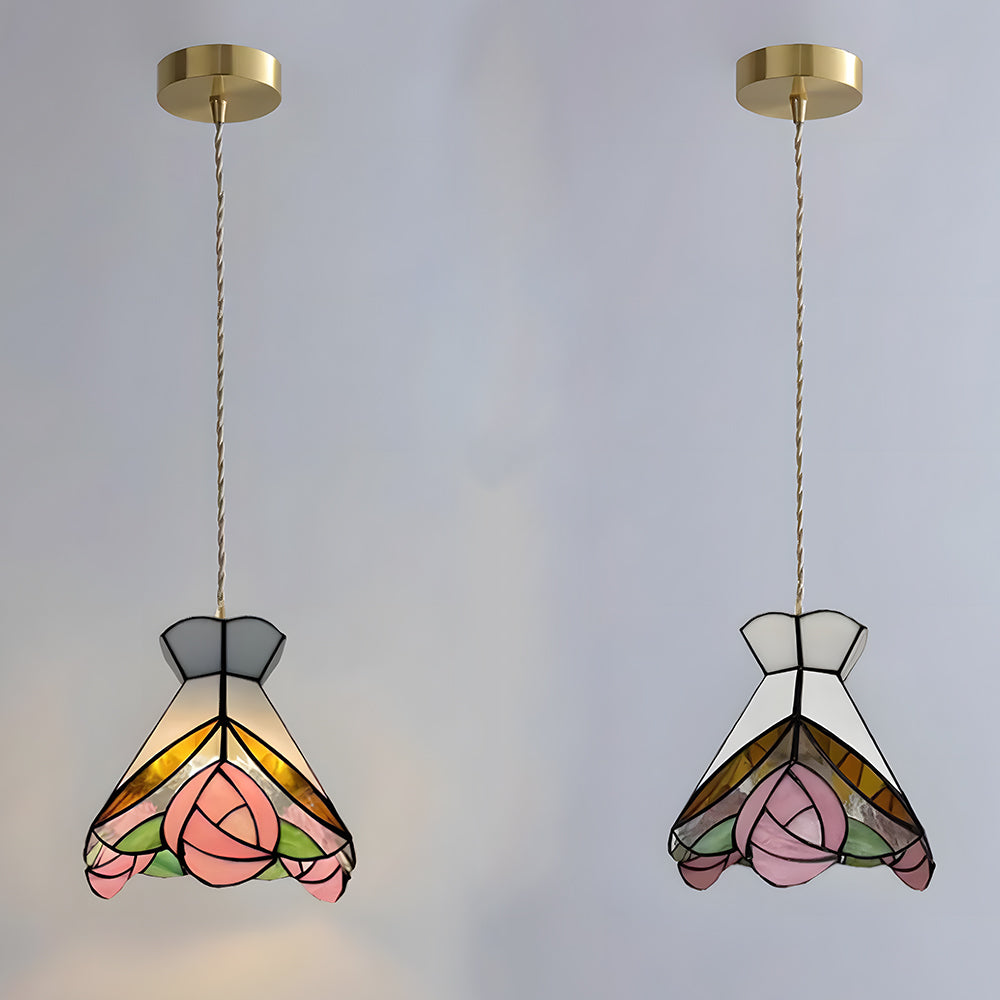 Vintage American Rose Tiffany Glass & Solid Copper Pendant Light