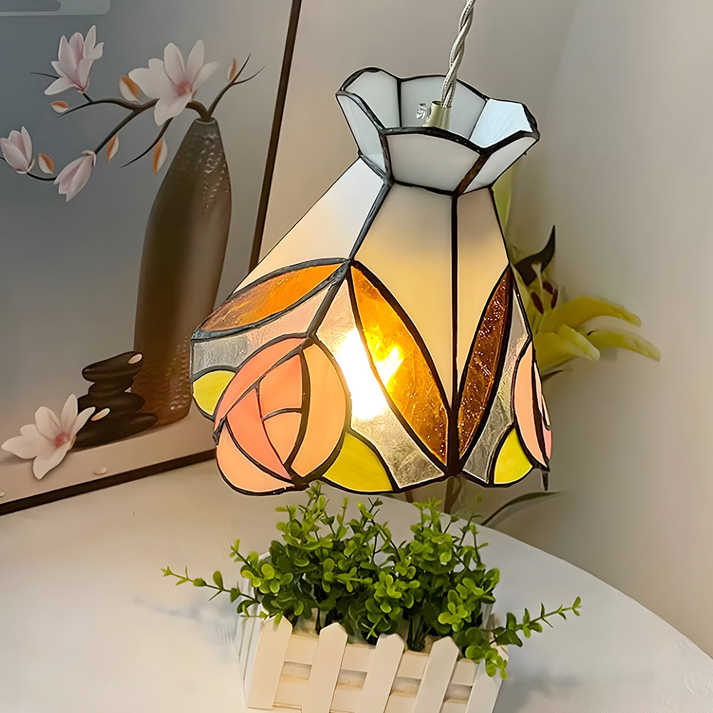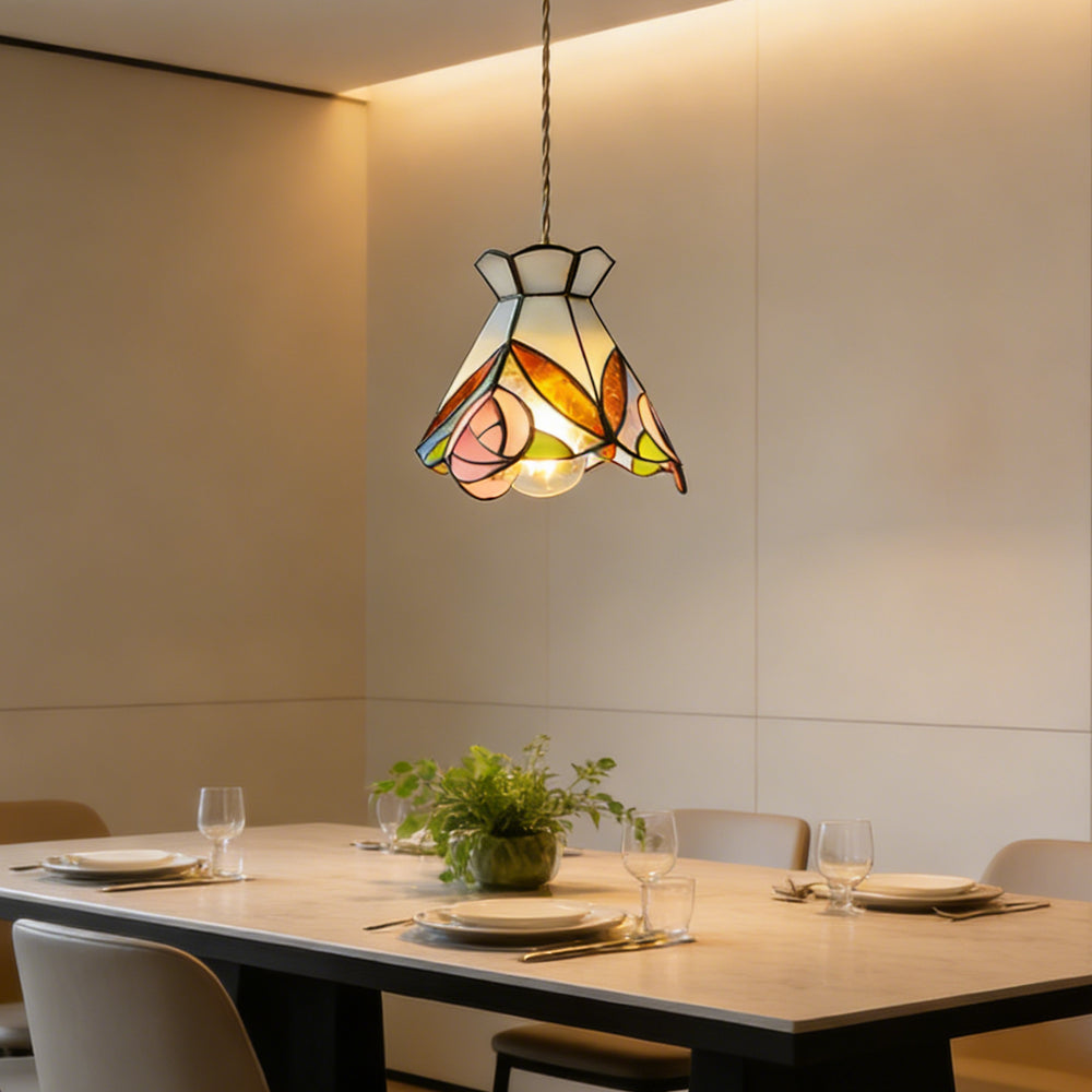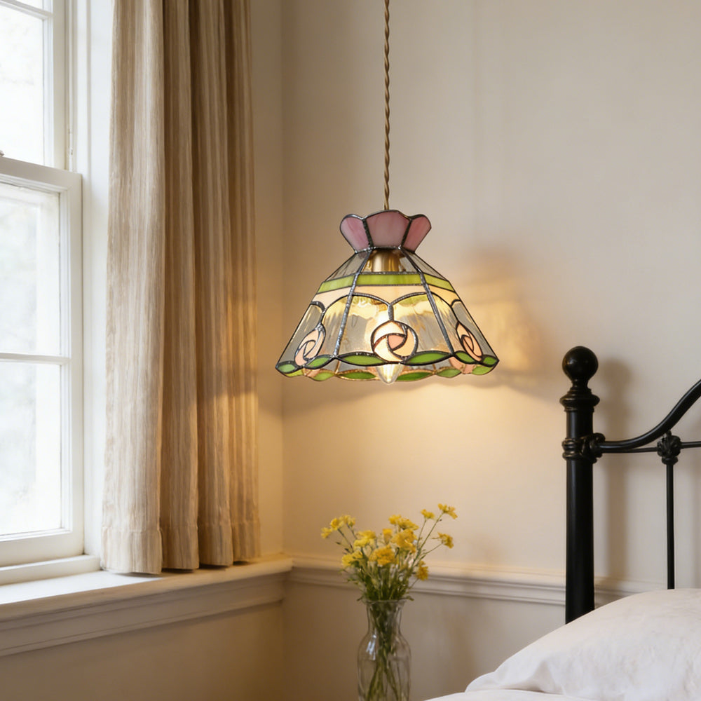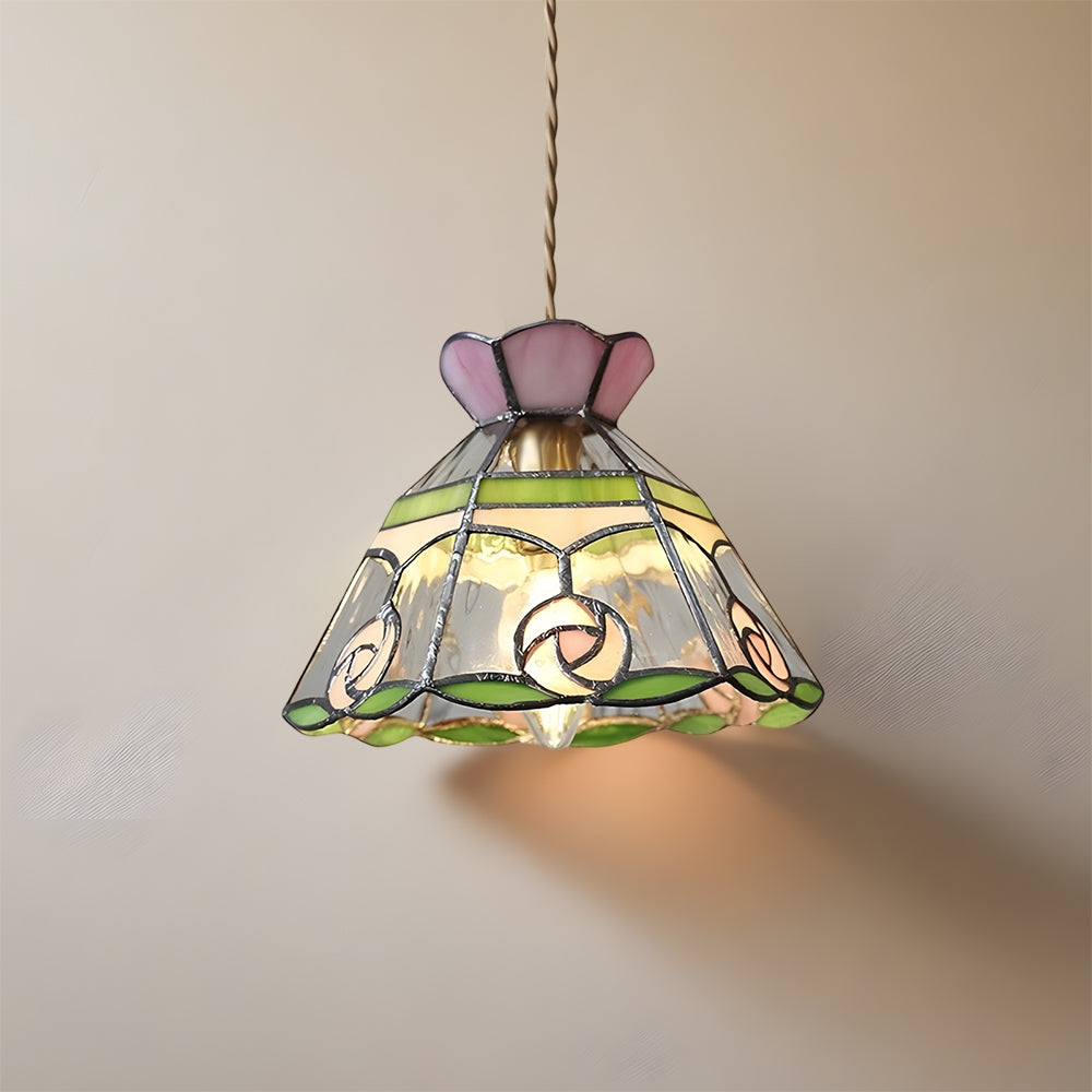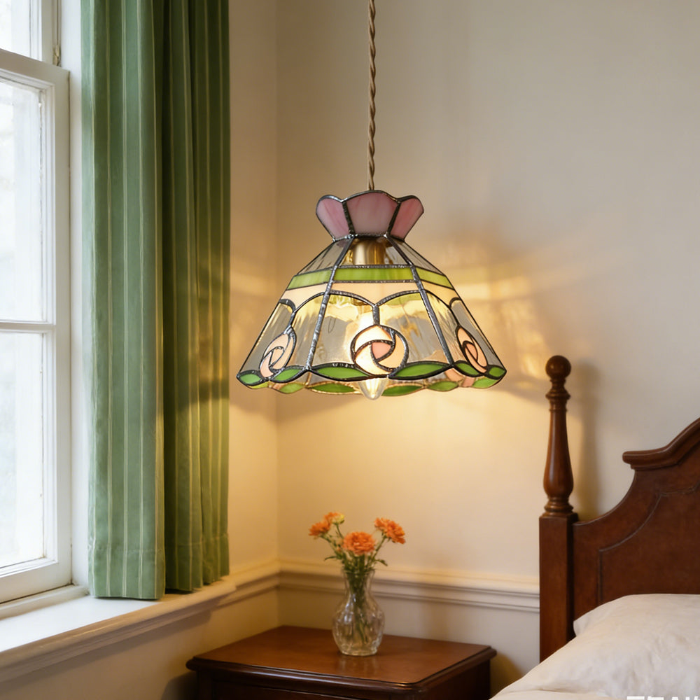 Vintage American Rose Tiffany Glass & Solid Copper Pendant Light