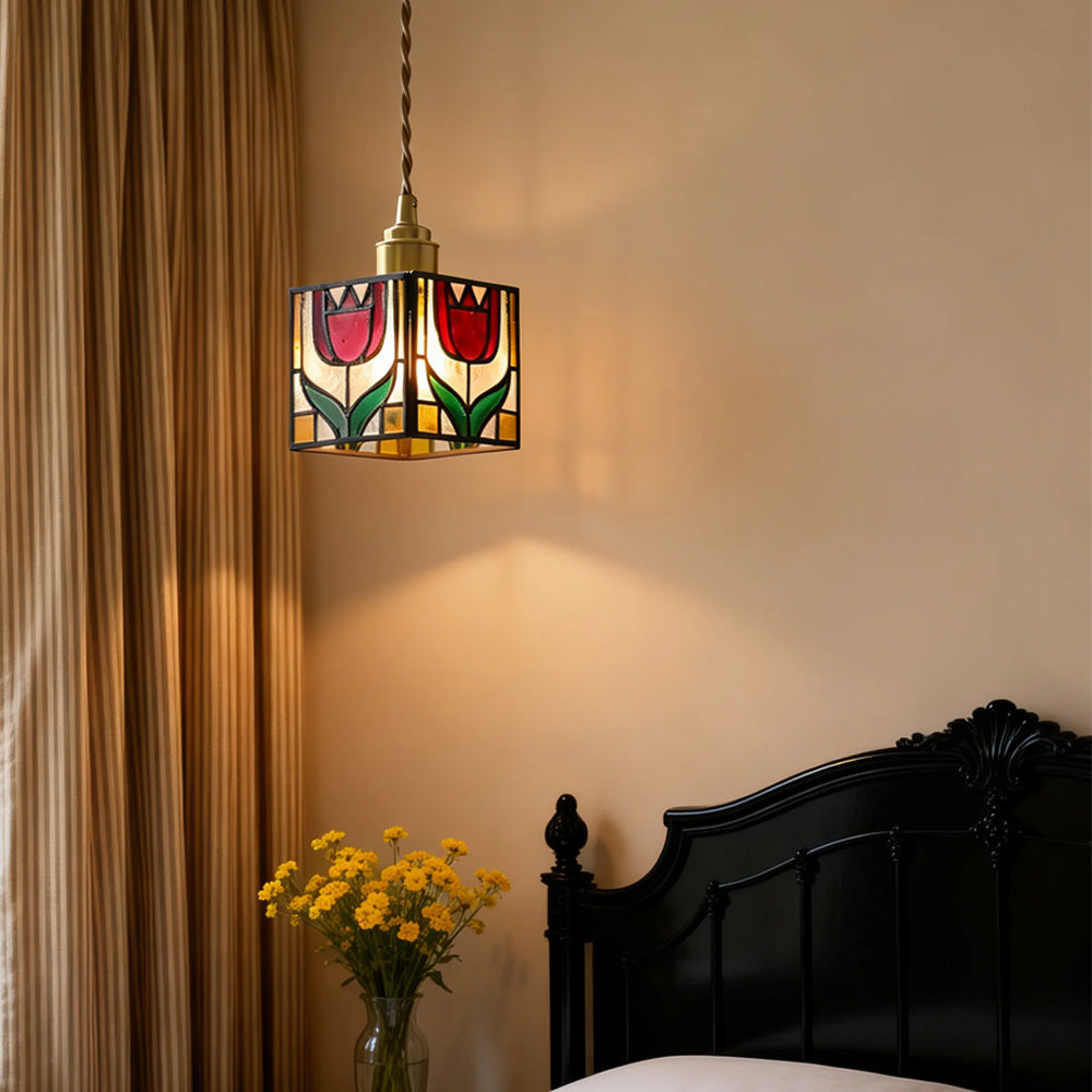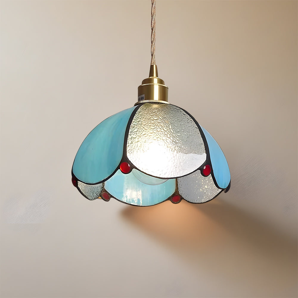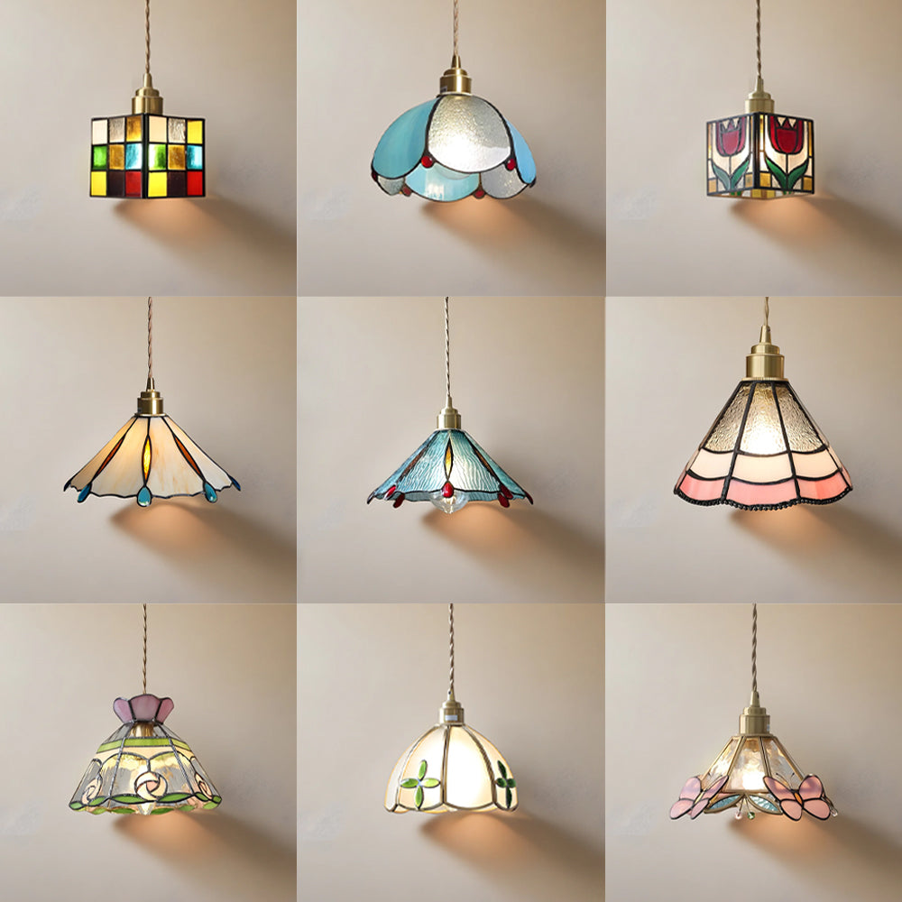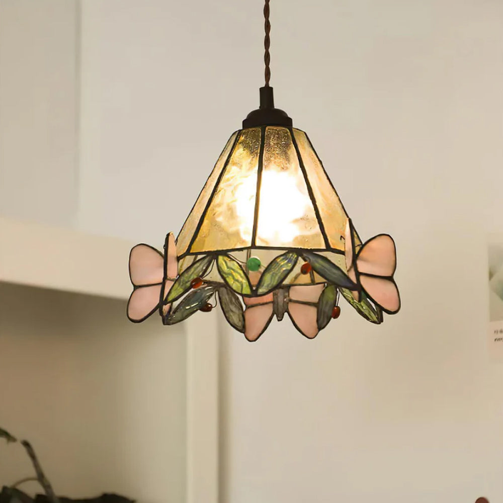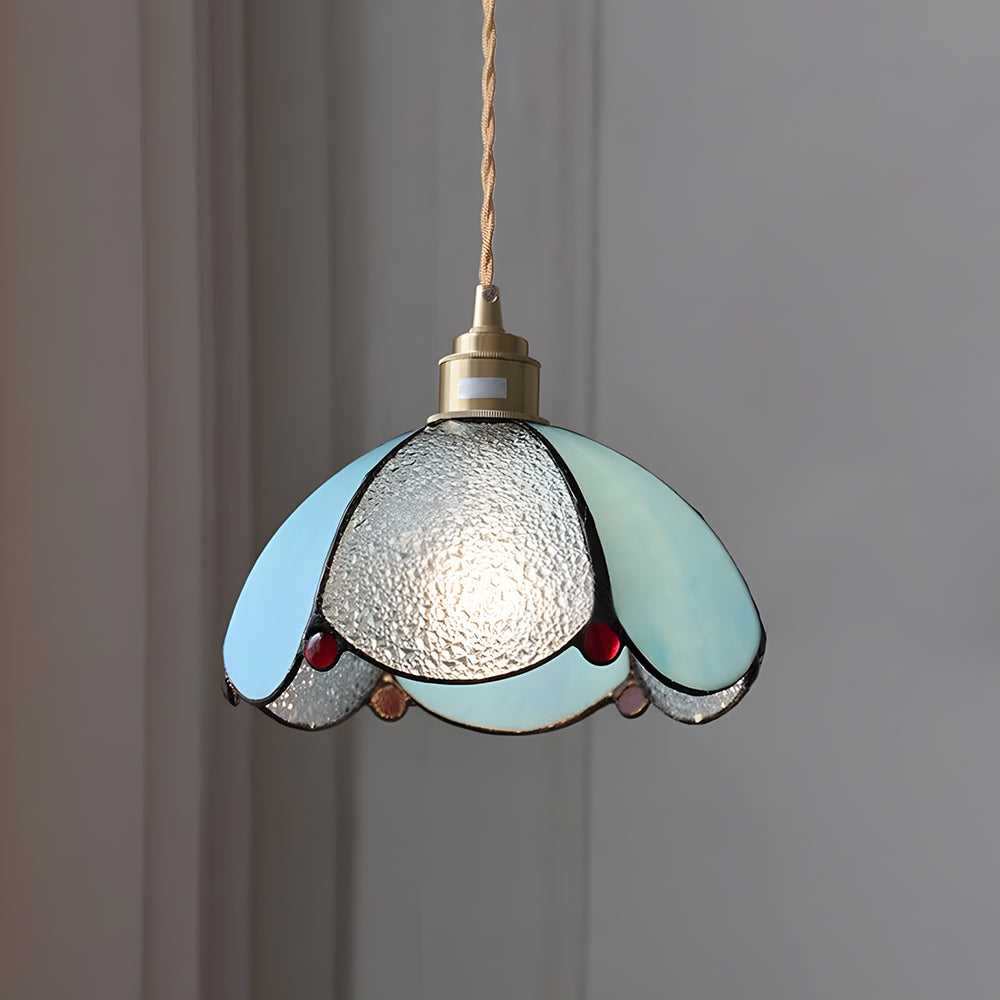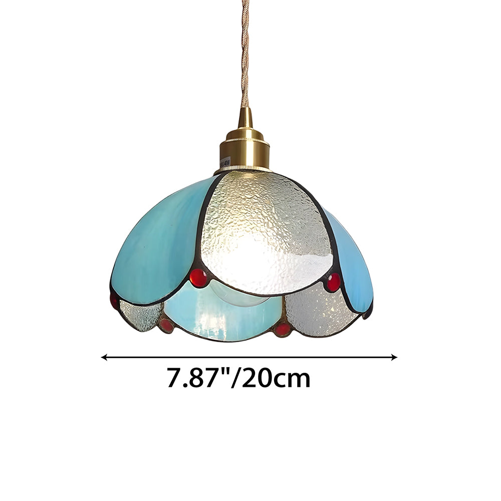 Vintage American Rose Tiffany Glass & Solid Copper Pendant Light