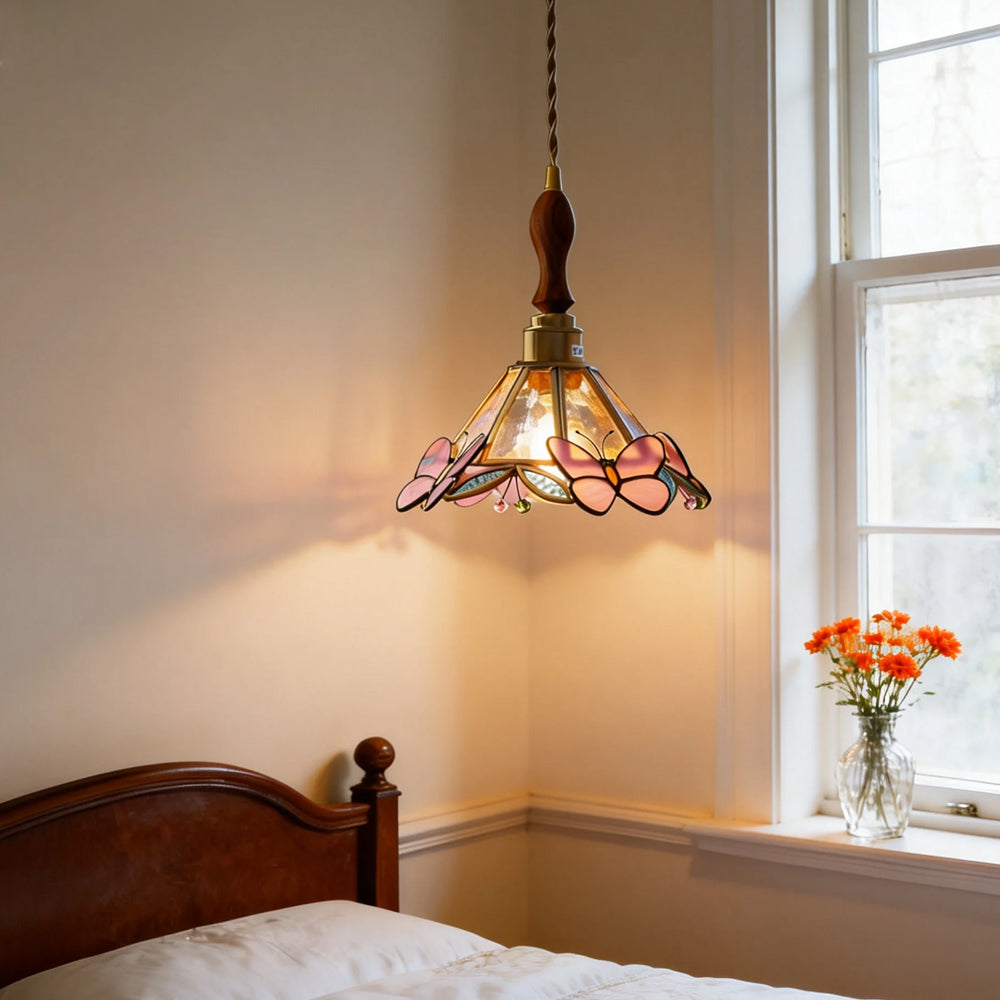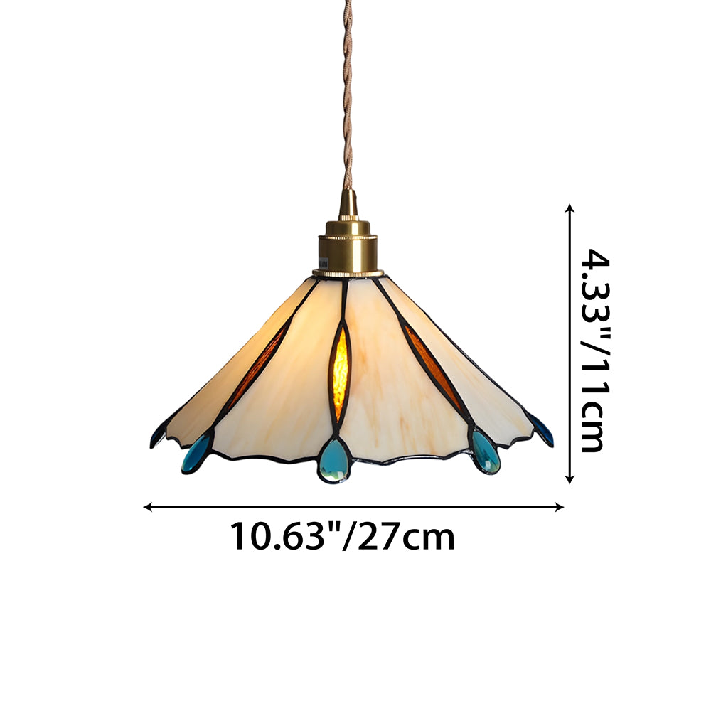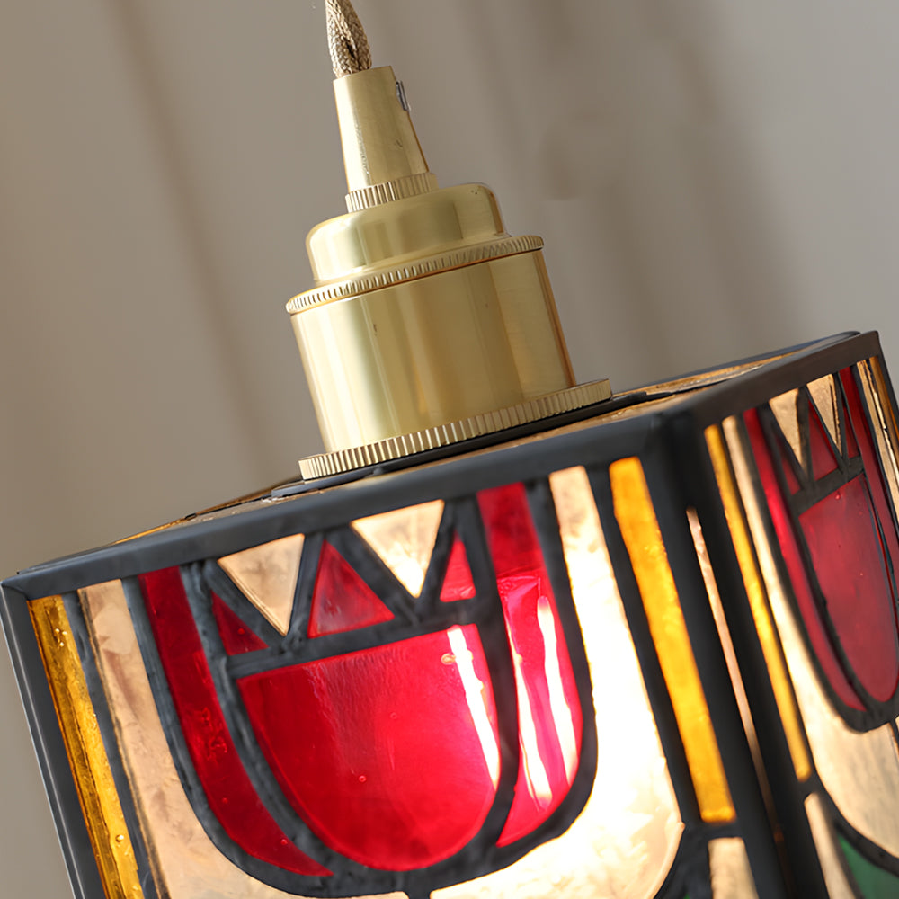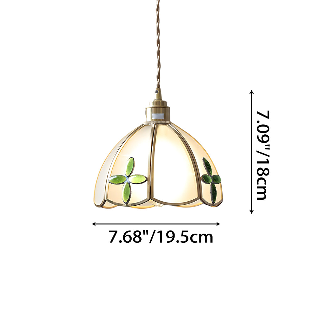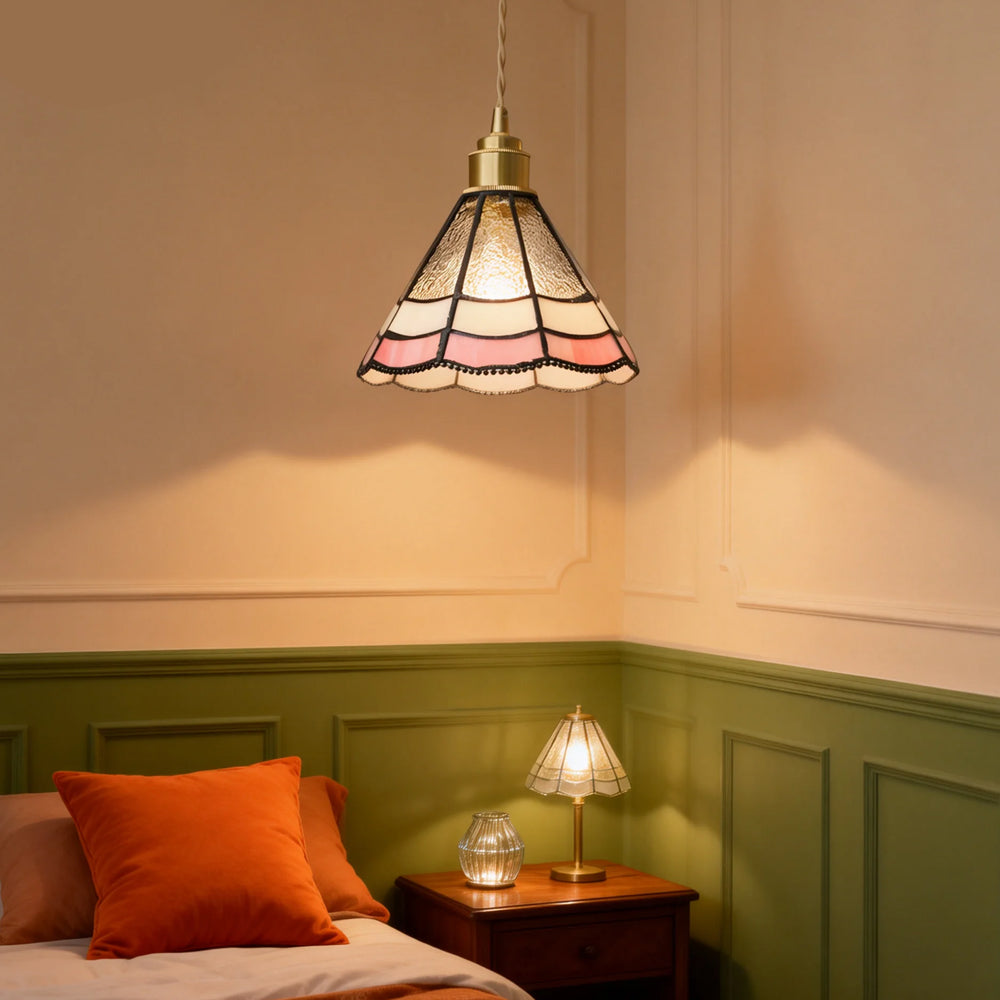 Vintage American Rose Tiffany Glass & Solid Copper Pendant Light