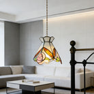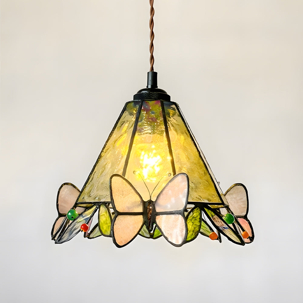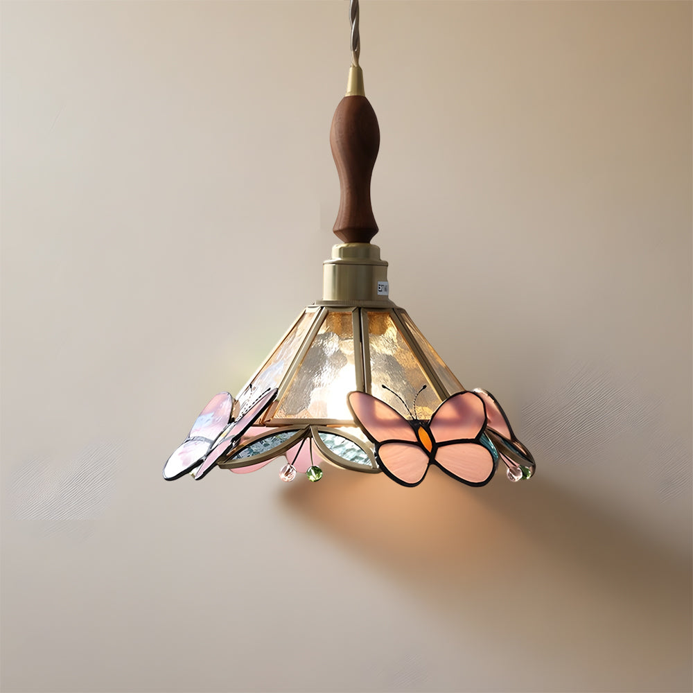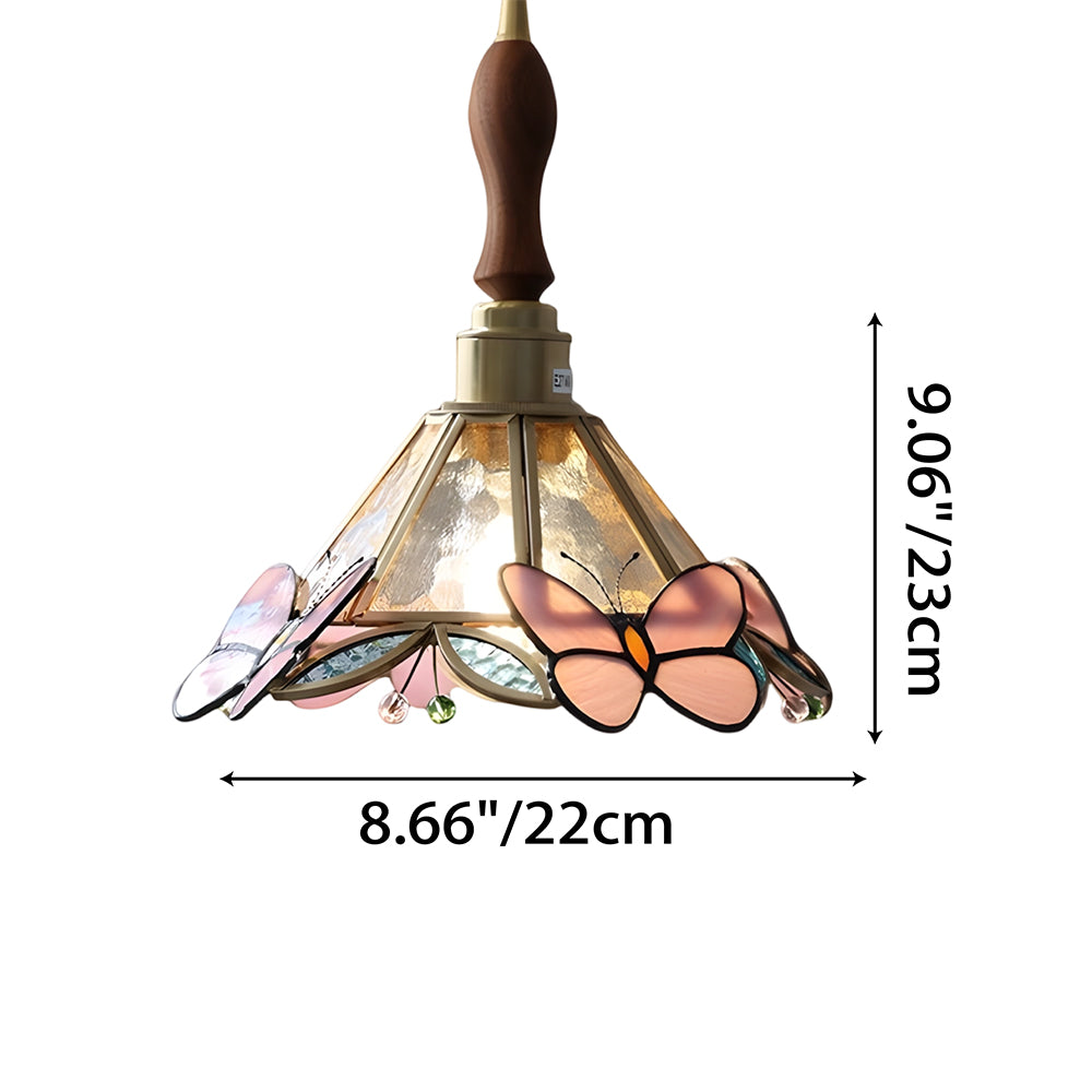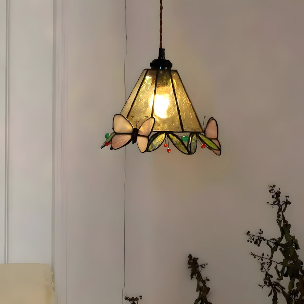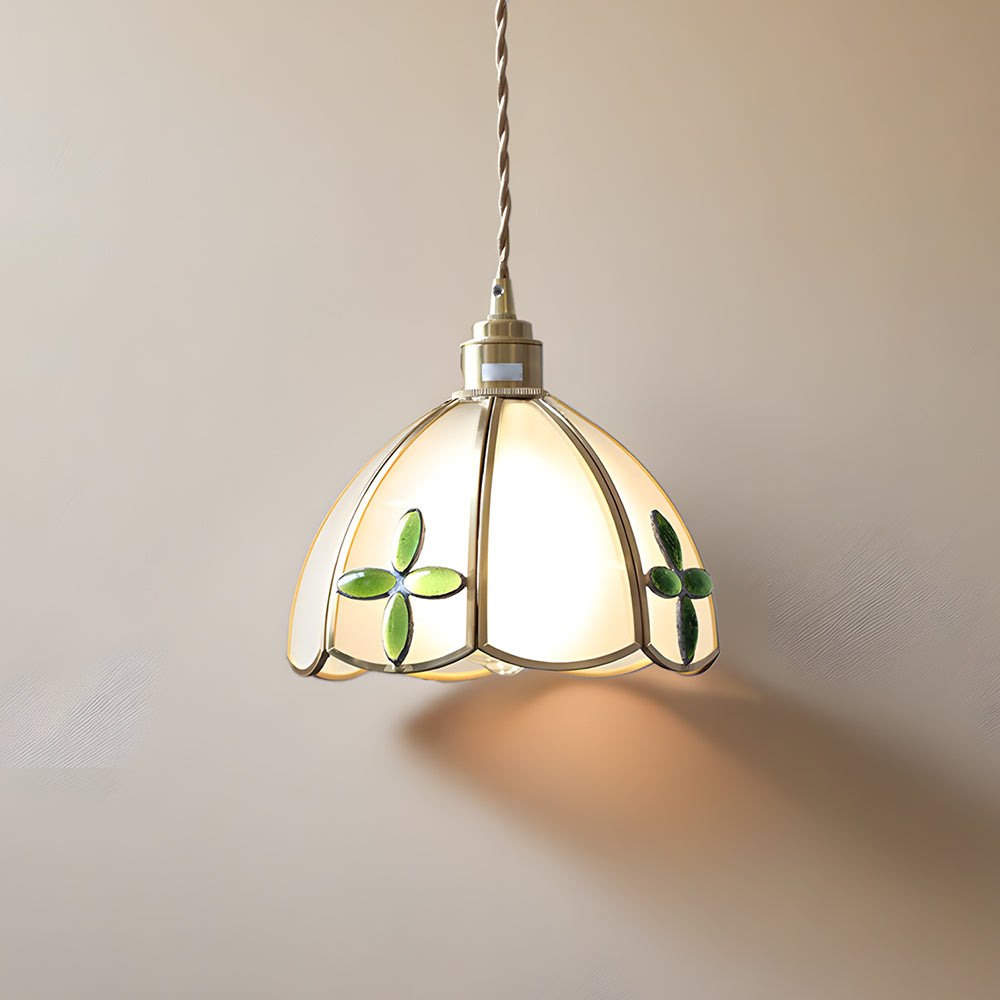 Vintage American Rose Tiffany Glass & Solid Copper Pendant Light