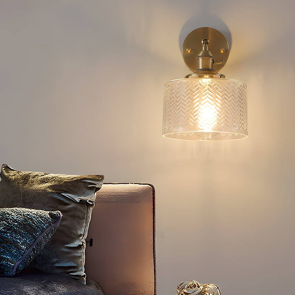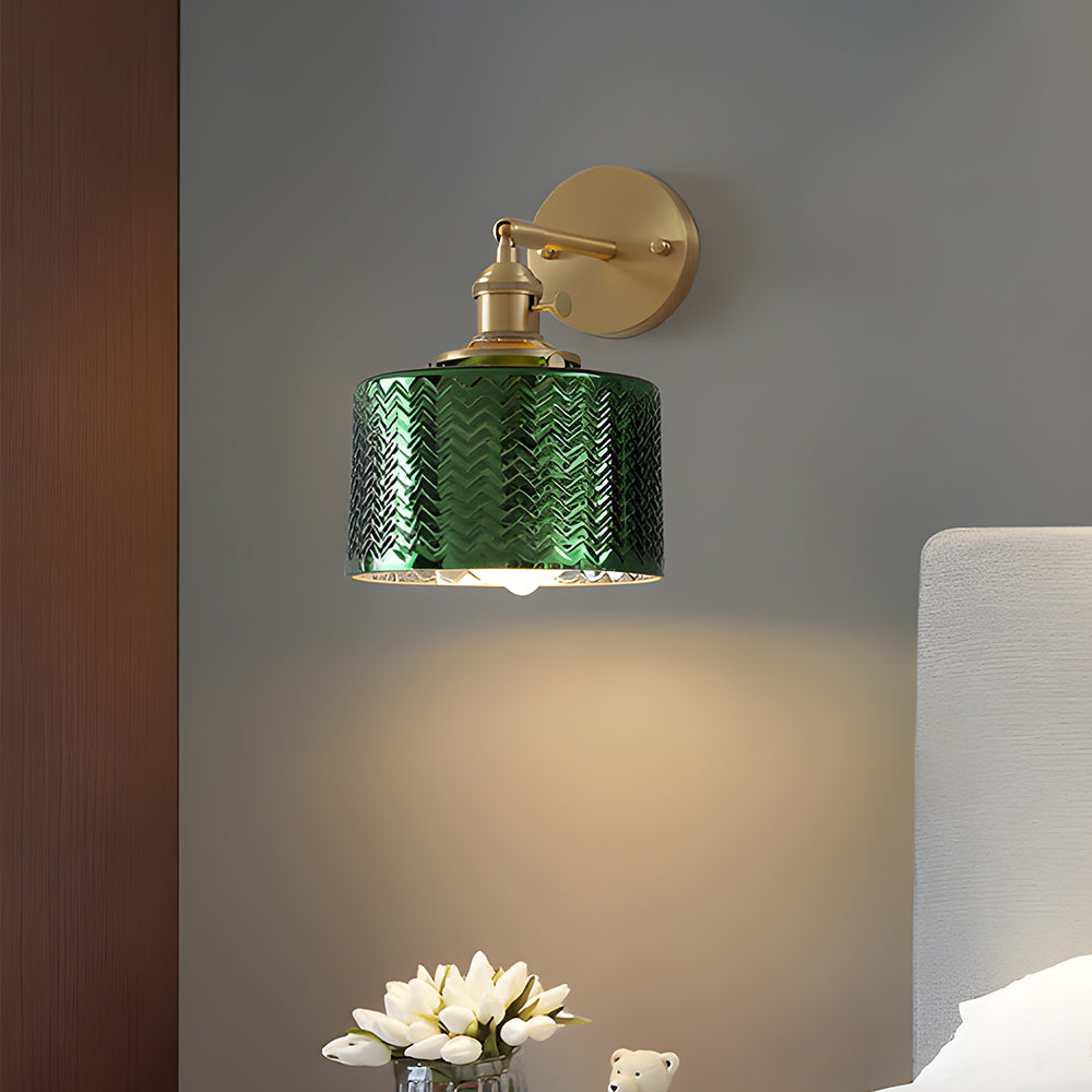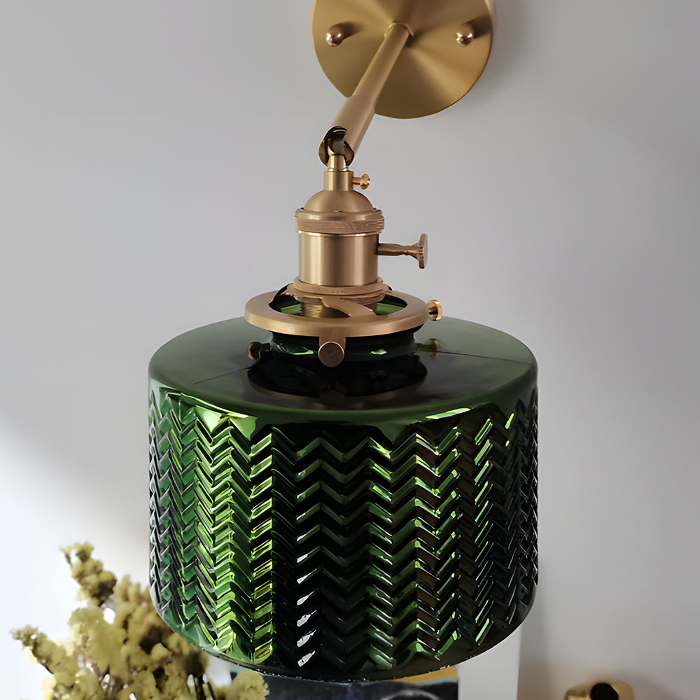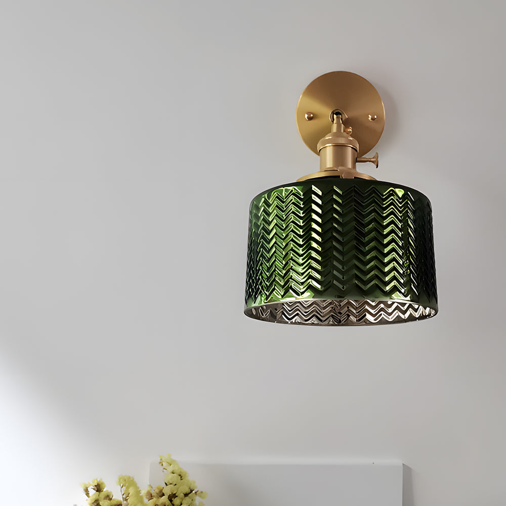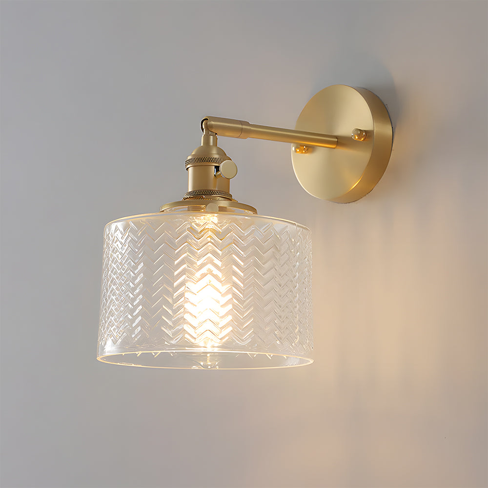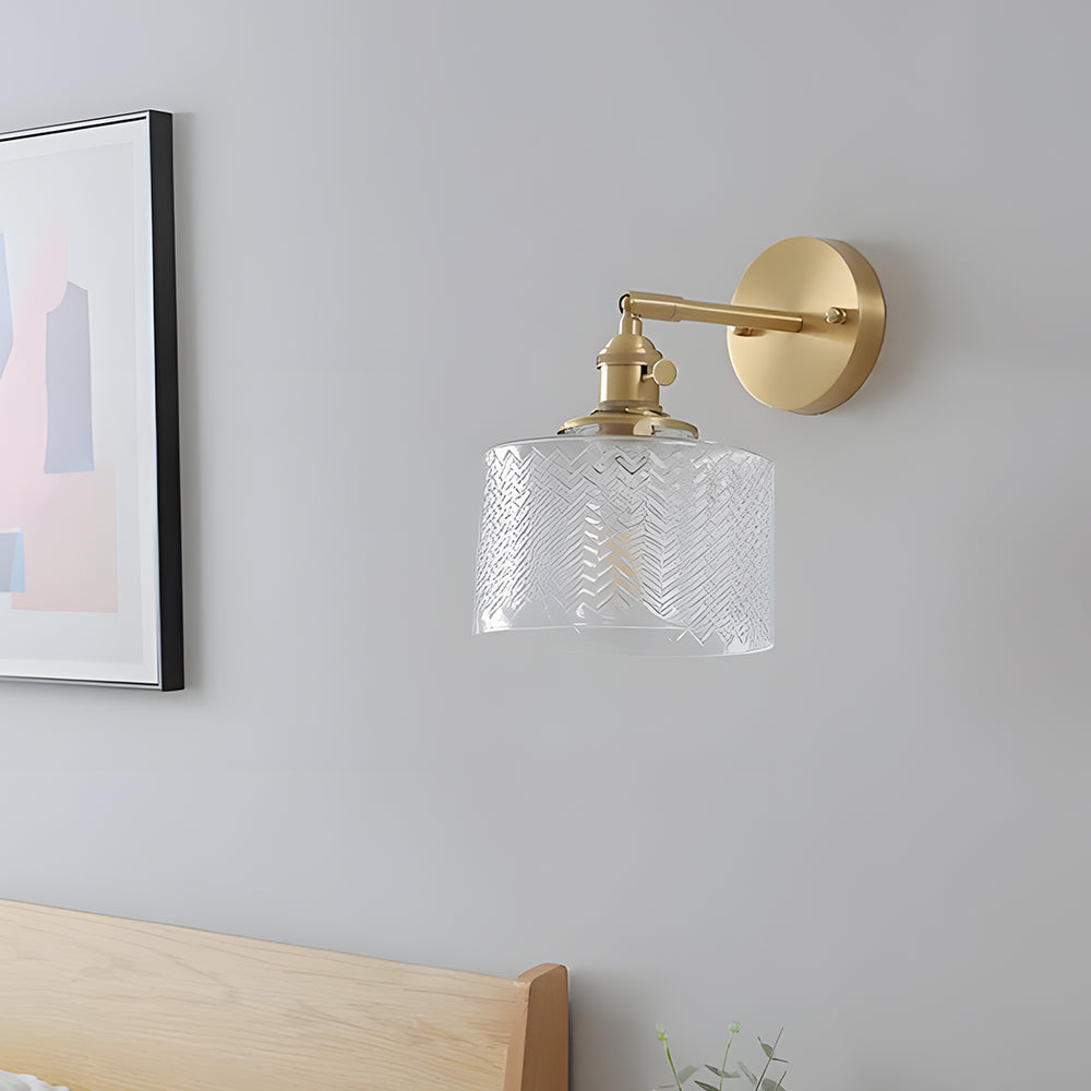 Literary Elegant Cylindrical Brass & Glass Wall Lamp