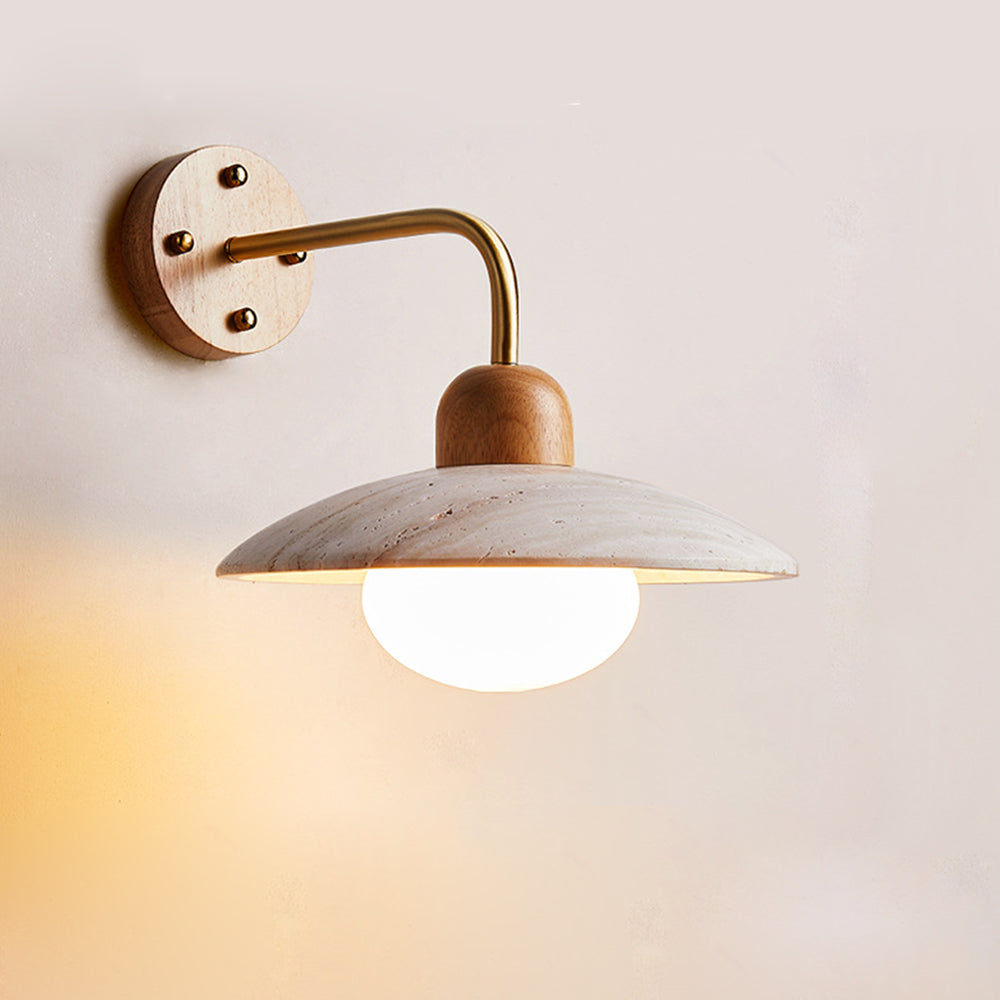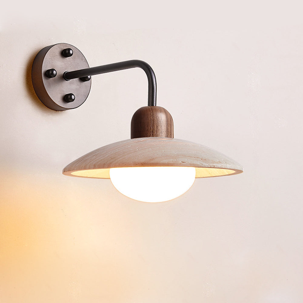 Textured Travertine Bronze Solid Wood Wall Light
