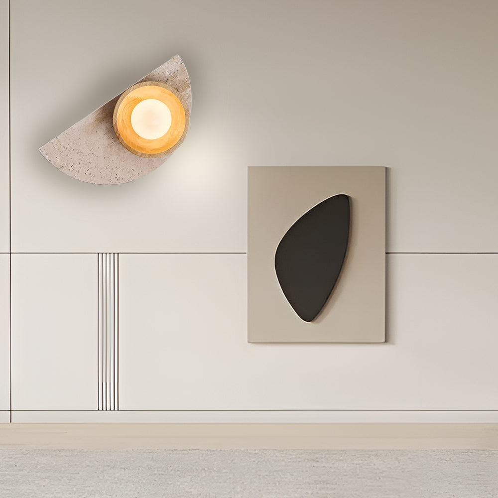 Design Style: The design style of this wall lamp is full of retro and artistic sense. The unique texture and texture of travertine, the warmth and texture of solid wood, and the interweaving of light and shadow of glass art lamps are all perfectly reflected in the design. The design of the entire background wall is simple and elegant, which not only retains the original beauty of the materials, but also through the designer's ingenious conception, makes the three materials complement each other, creating a retro and fashionable space atmosphere.