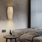 This wall lamp is made of off-white travertine, showing a natural and simple texture. The lamp has a simple shape, smooth lines, and no excessive decoration, reflecting the minimalist beauty pursued by the wabi-sabi style. The soft light can create a warm and comfortable bedroom atmosphere.
