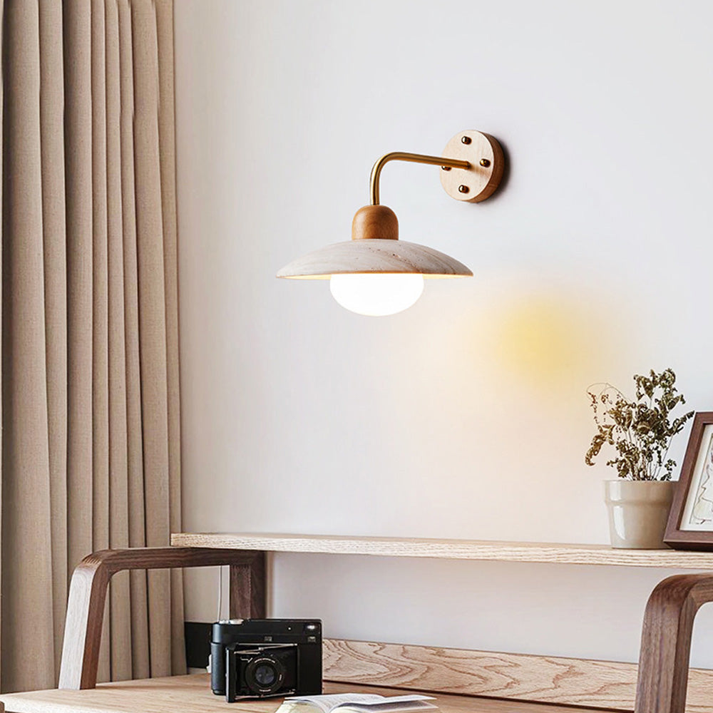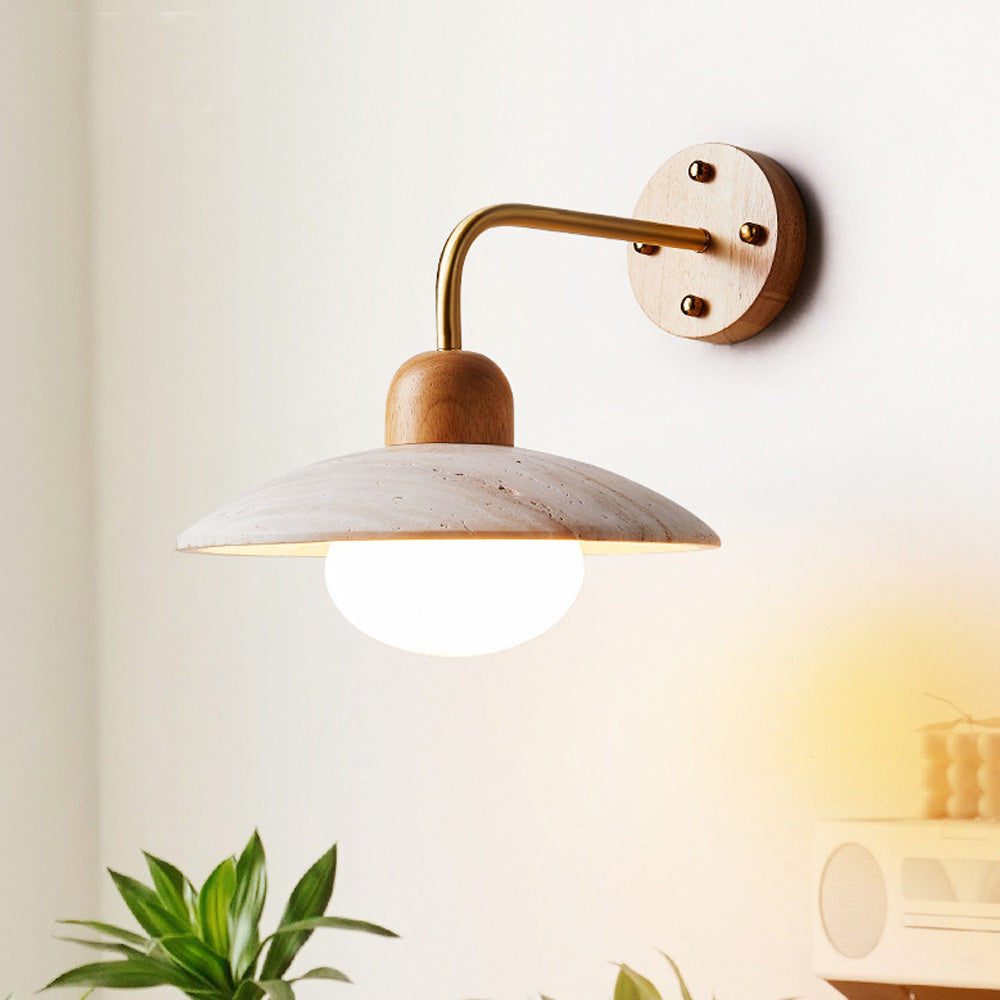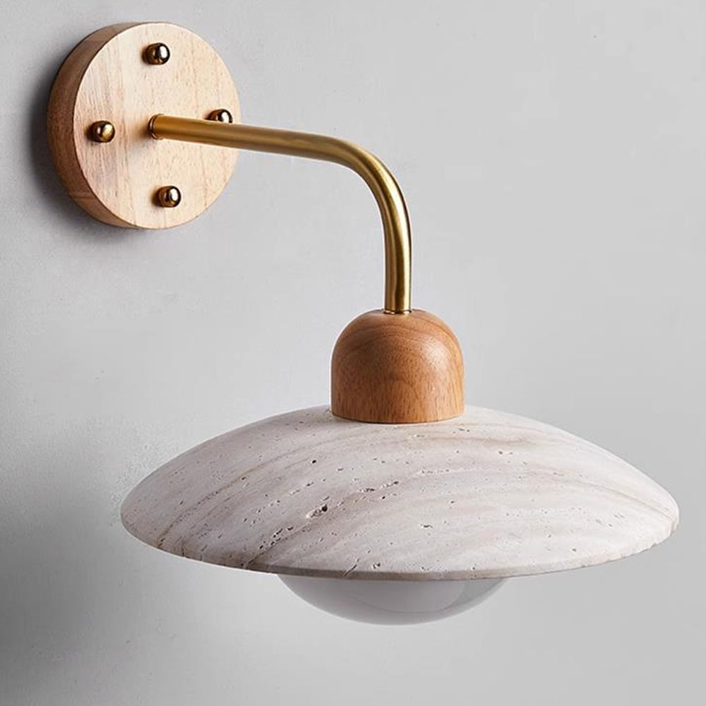 Vintage Designer Yellow travertine and Wood Wall Sconce Lamp For Living Room