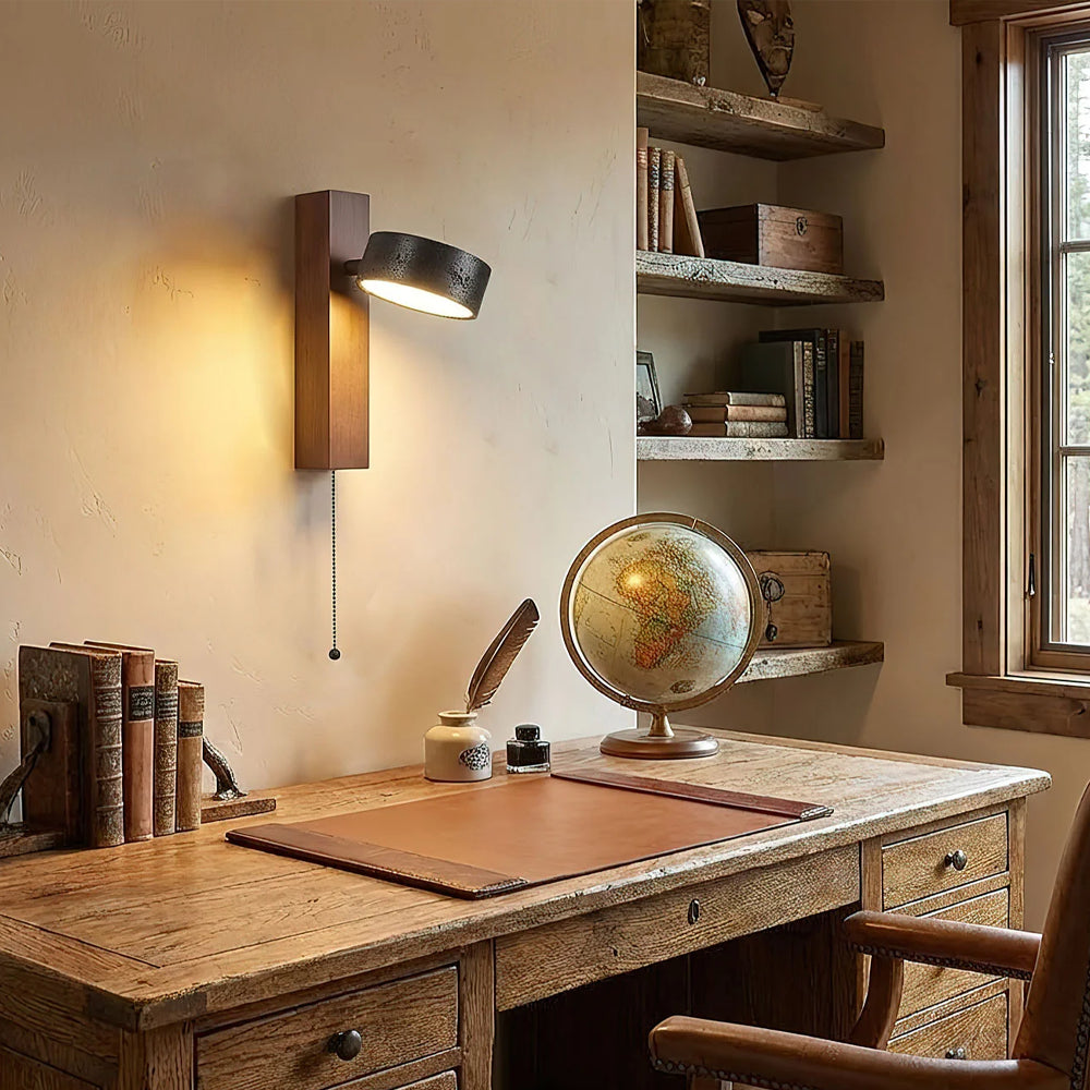 180 Degree Rotatable Wood LED Wall Light Natural Stone Reading Wall Sconce
