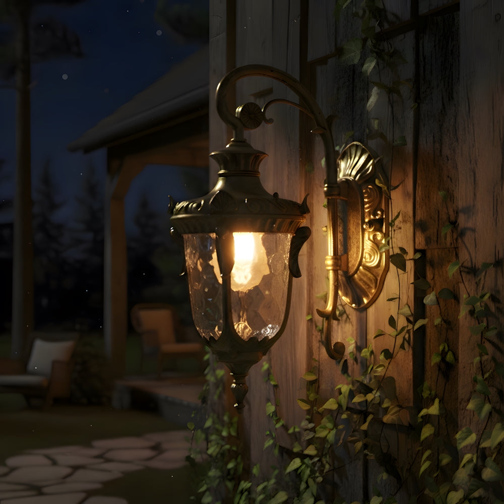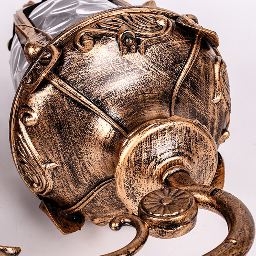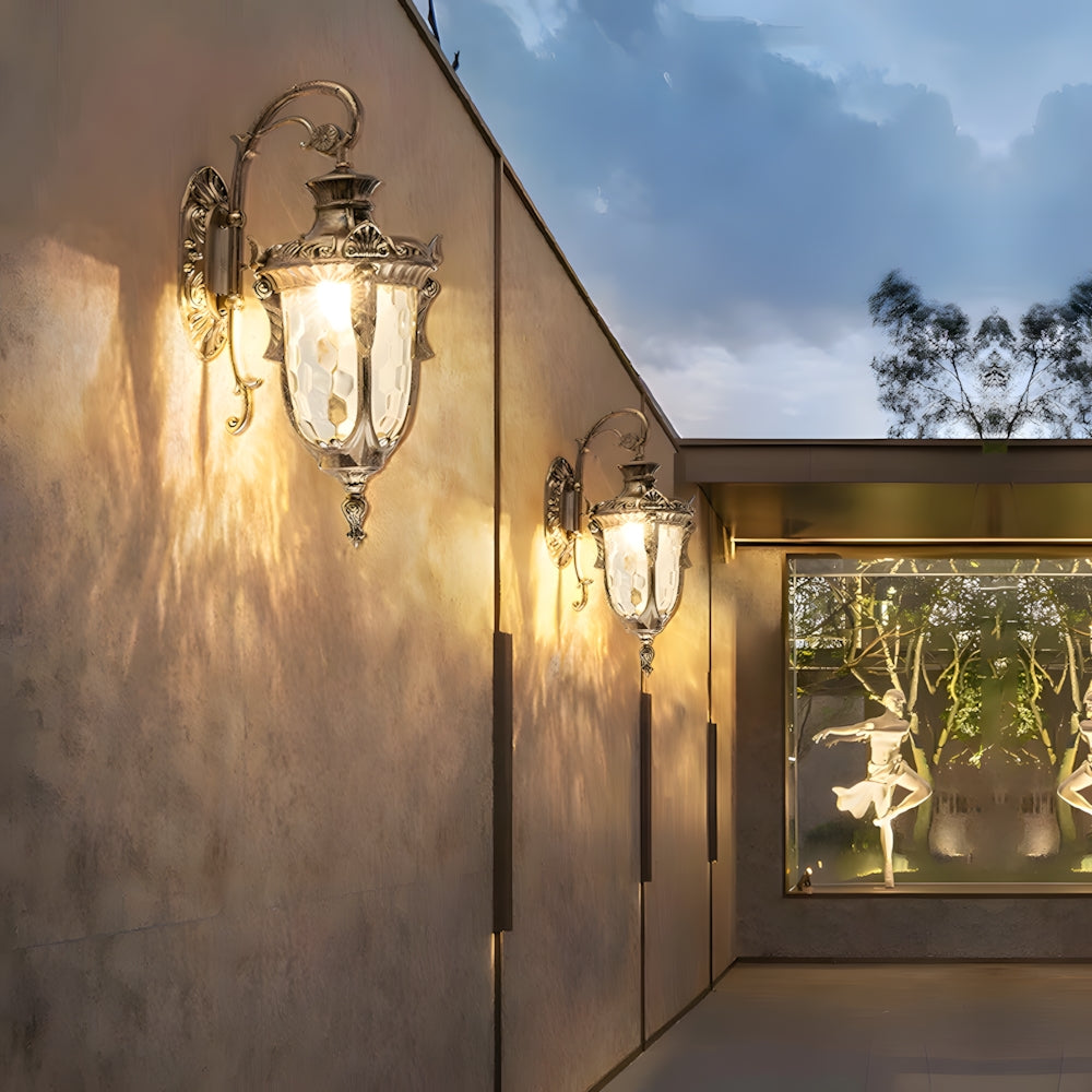 Inspired by vintage gardens, this European Wall Lamp features a carved aluminum structure and corrugated glass. It provides ample light while adding a touch of historical nobility to your porch or garden—a perfect blend of classic charm and durability.
