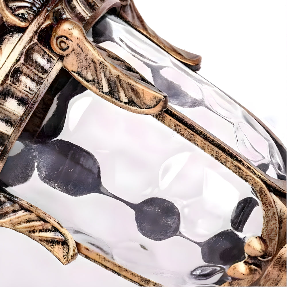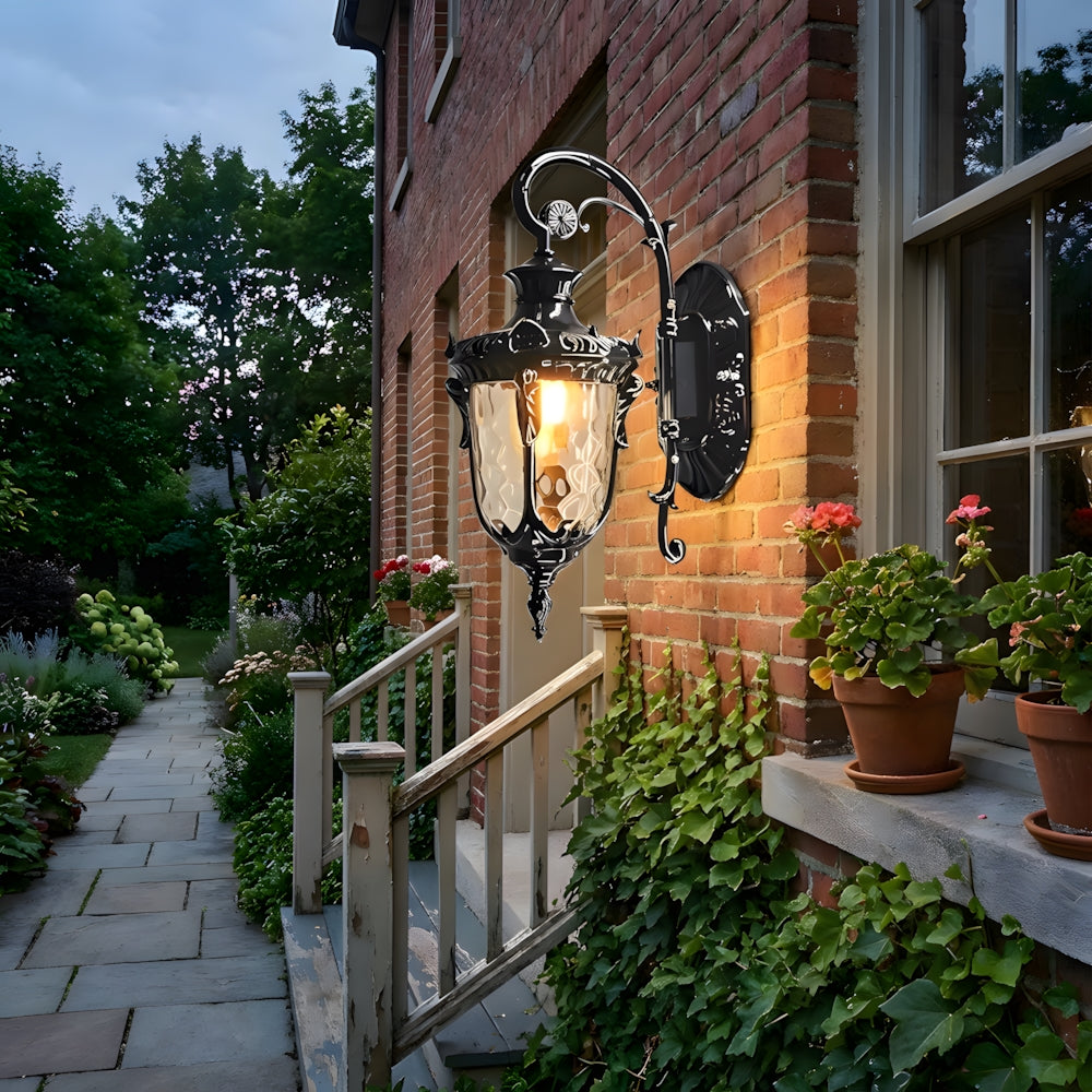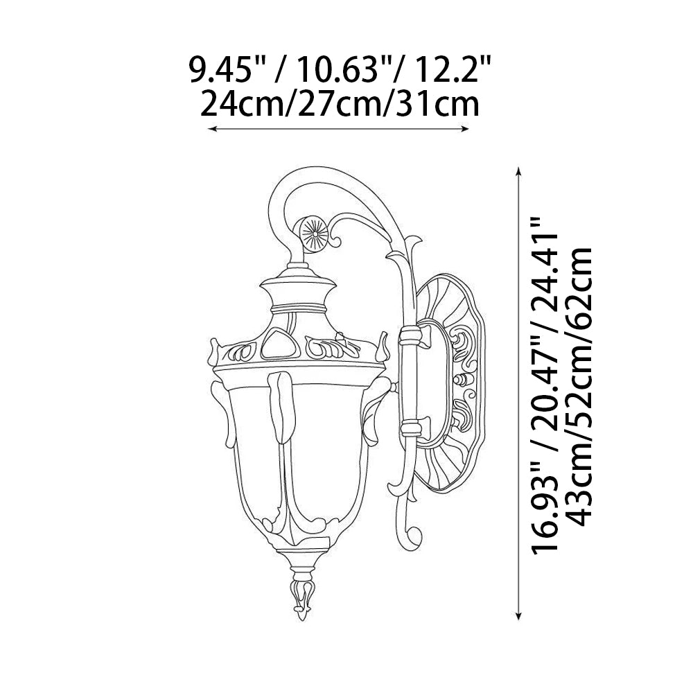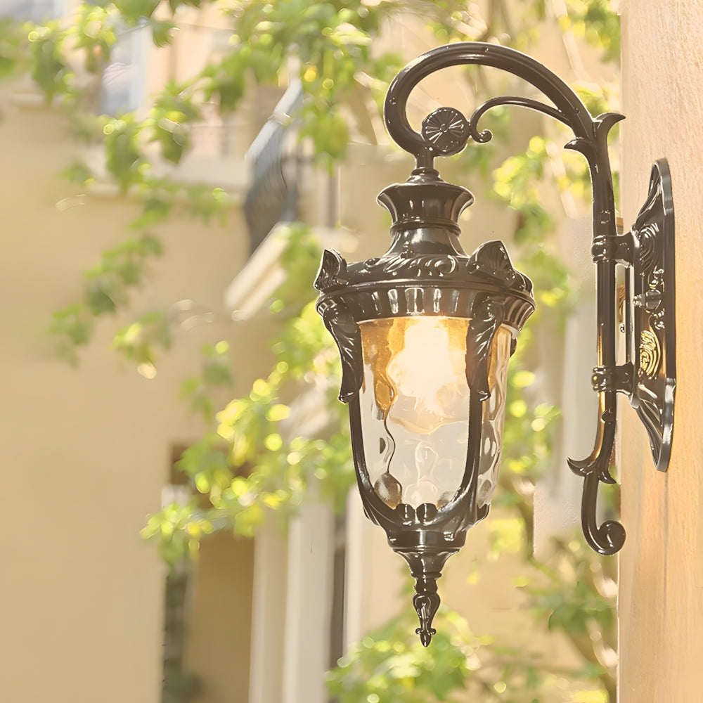 Inspired by vintage gardens, this European Wall Lamp features a carved aluminum structure and corrugated glass. It provides ample light while adding a touch of historical nobility to your porch or garden—a perfect blend of classic charm and durability.