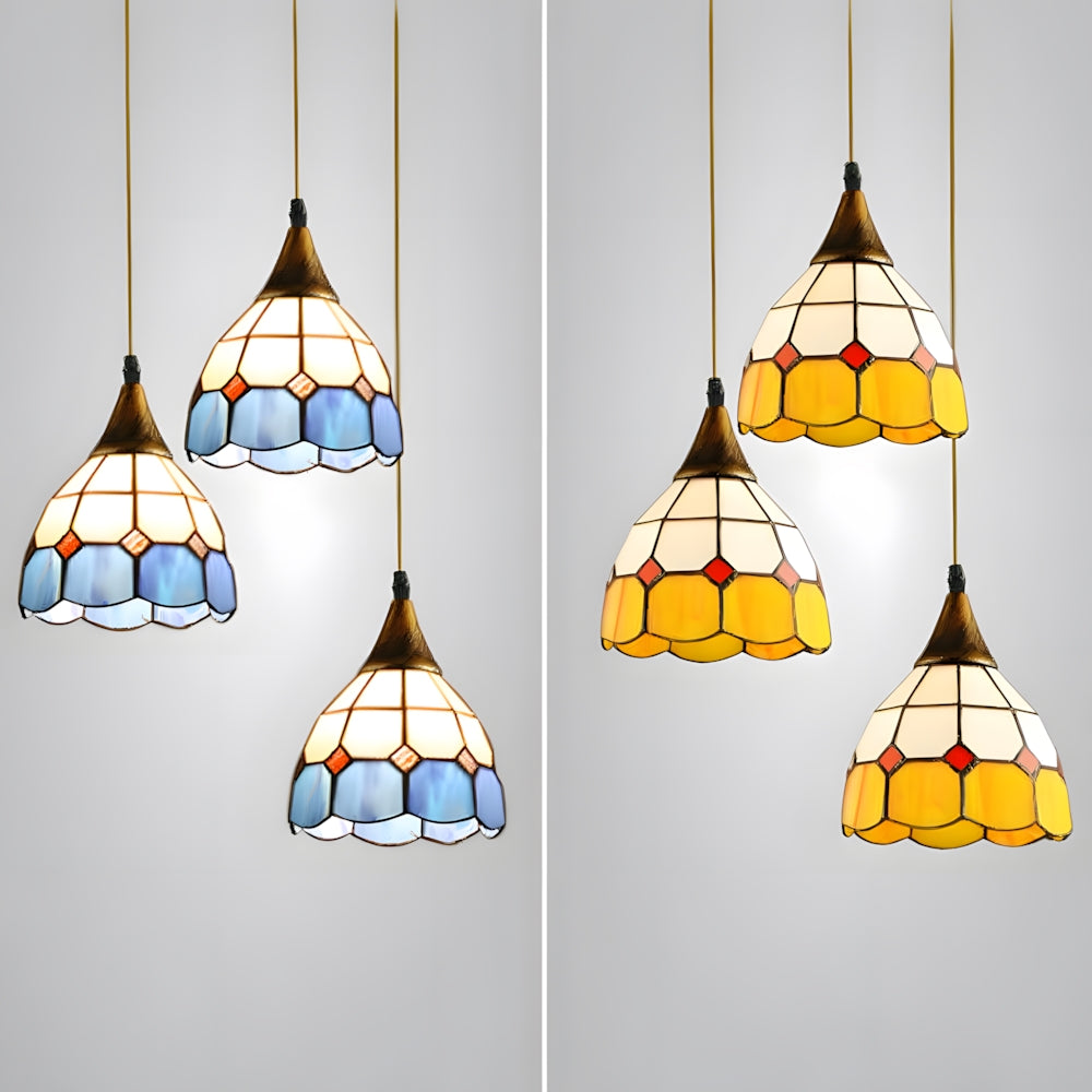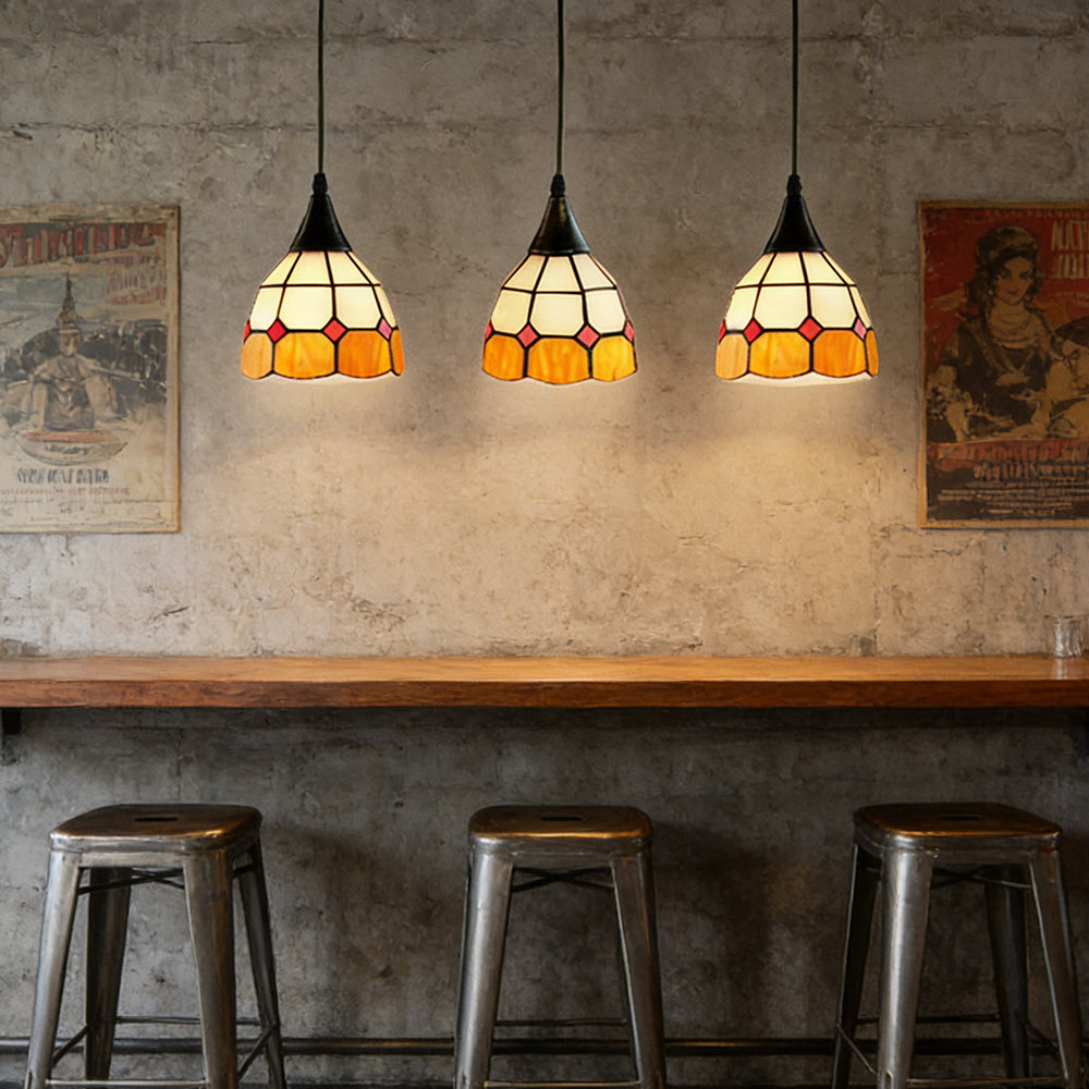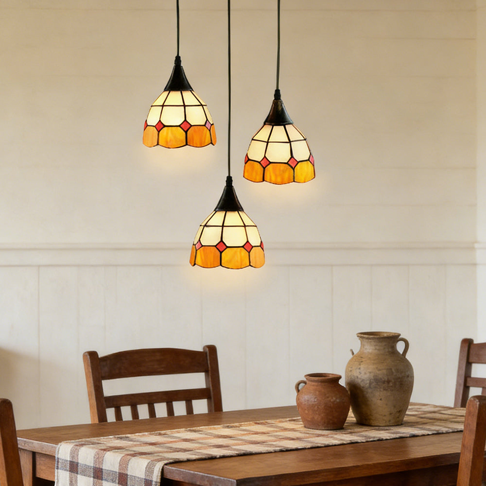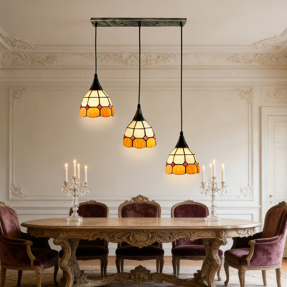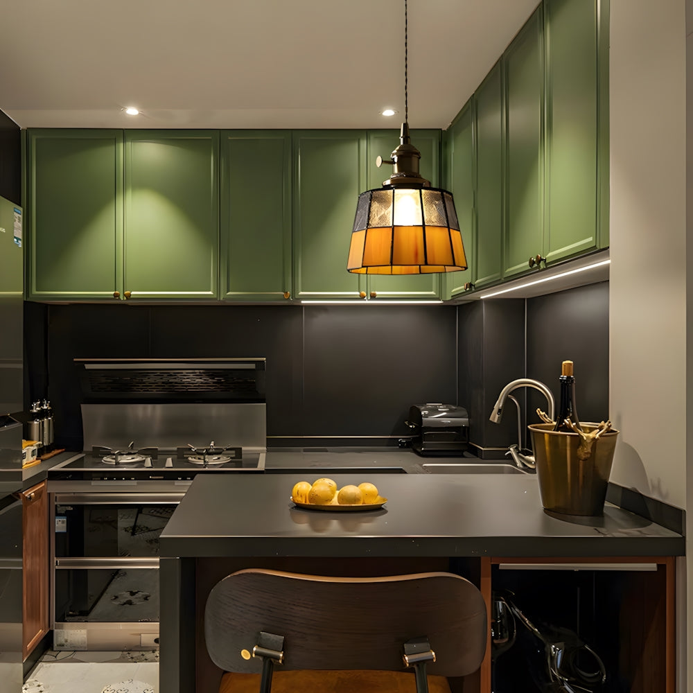 This French Creative Tiffany Stained Glass Chandelier exudes timeless charm. Its refined lattice-patterned stained glass casts a soft glow, serving as a chic focal point for kitchens, counters and work areas.