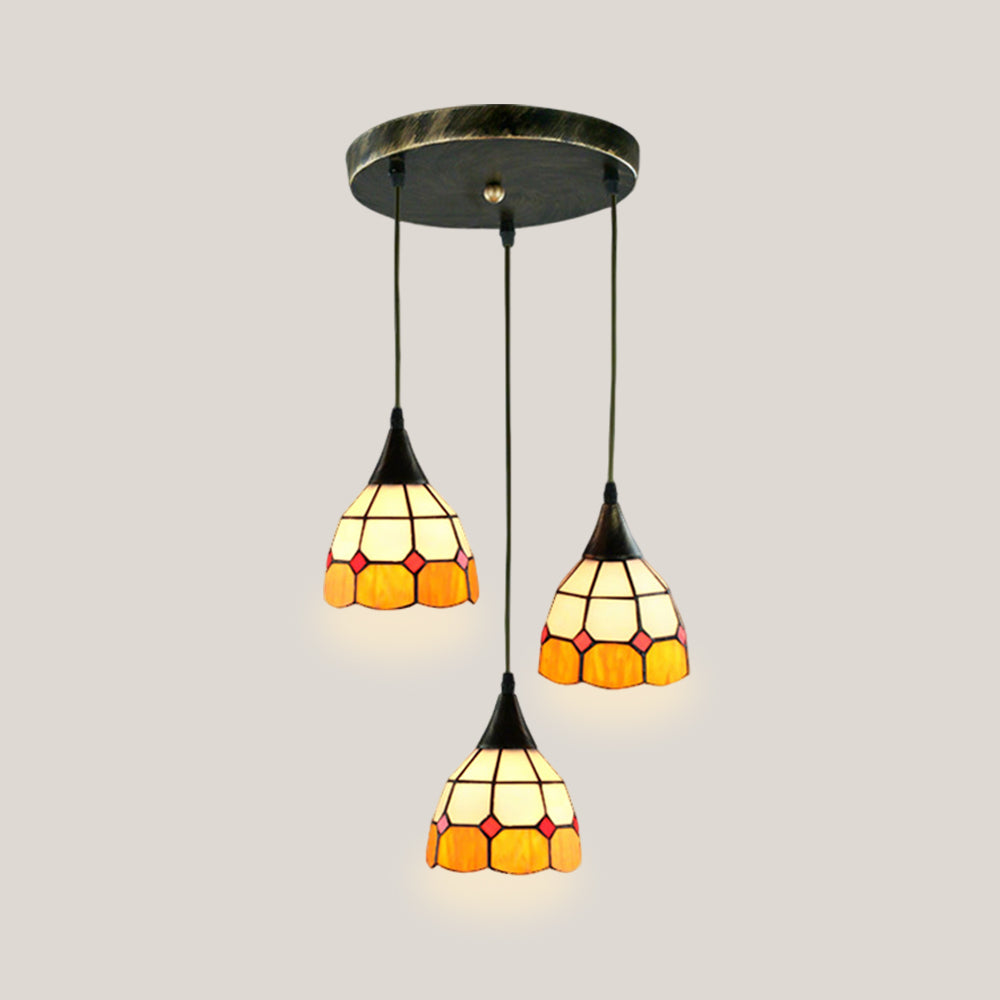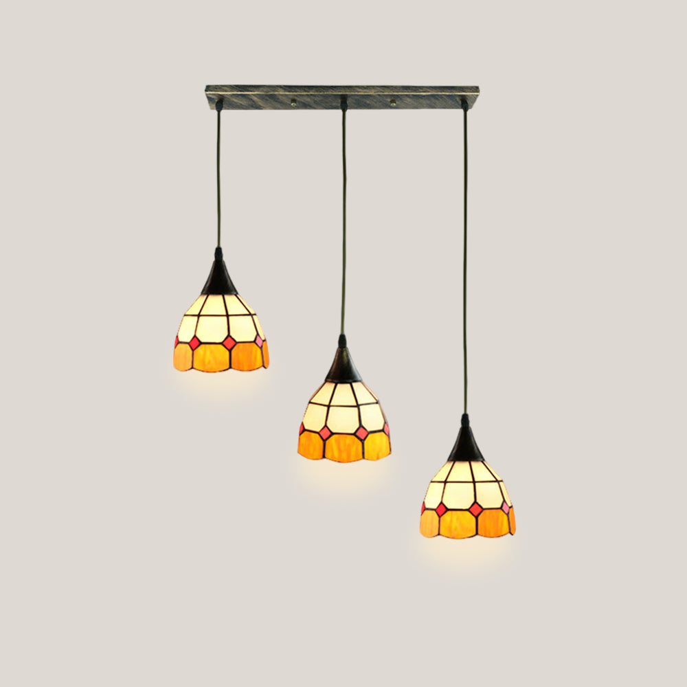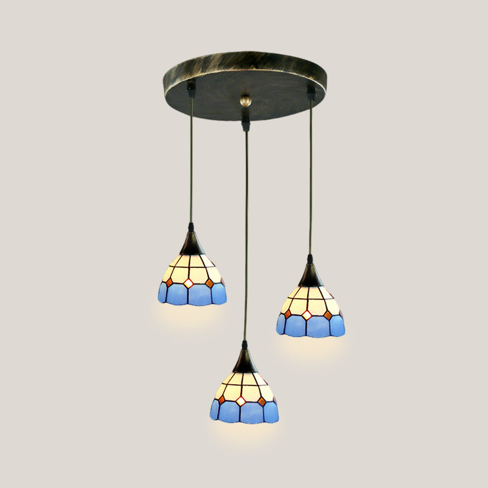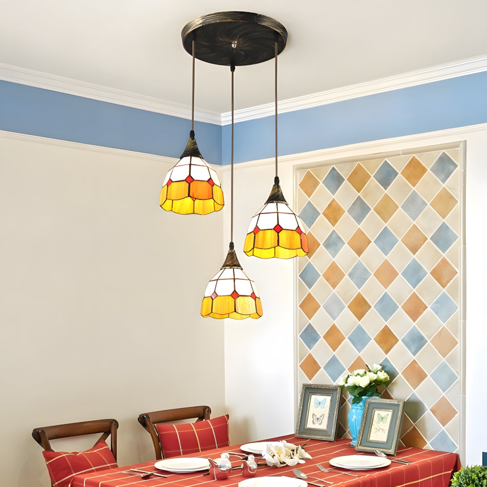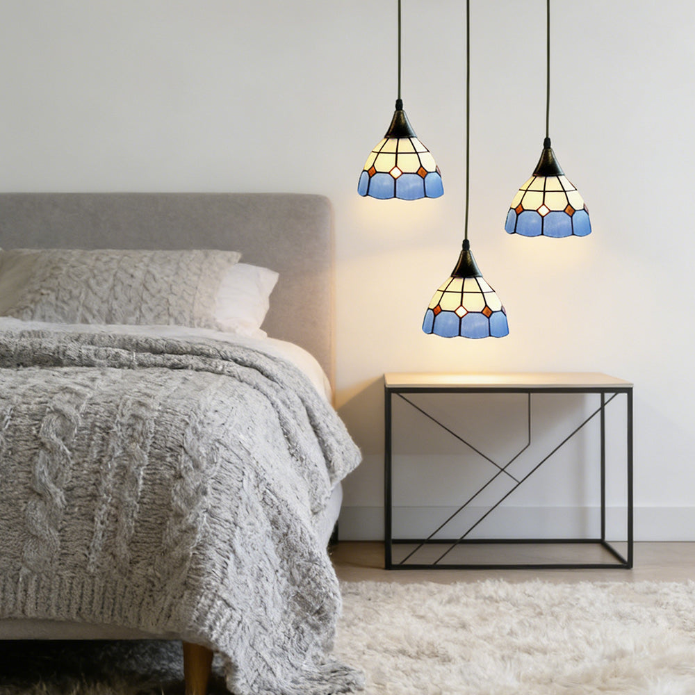 This French Creative Tiffany Stained Glass Chandelier exudes timeless charm. Its refined lattice-patterned stained glass casts a soft glow, serving as a chic focal point for kitchens, counters and work areas.